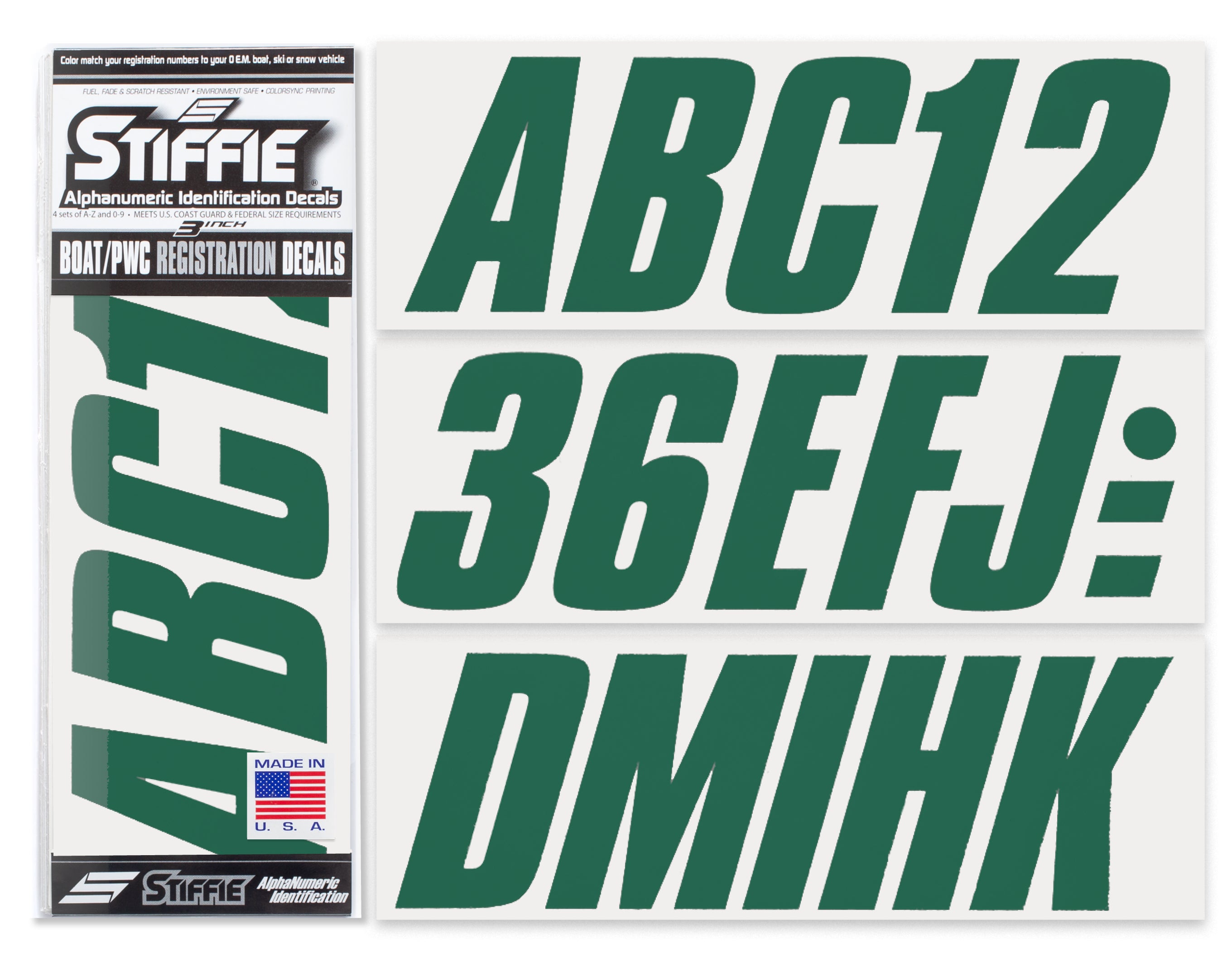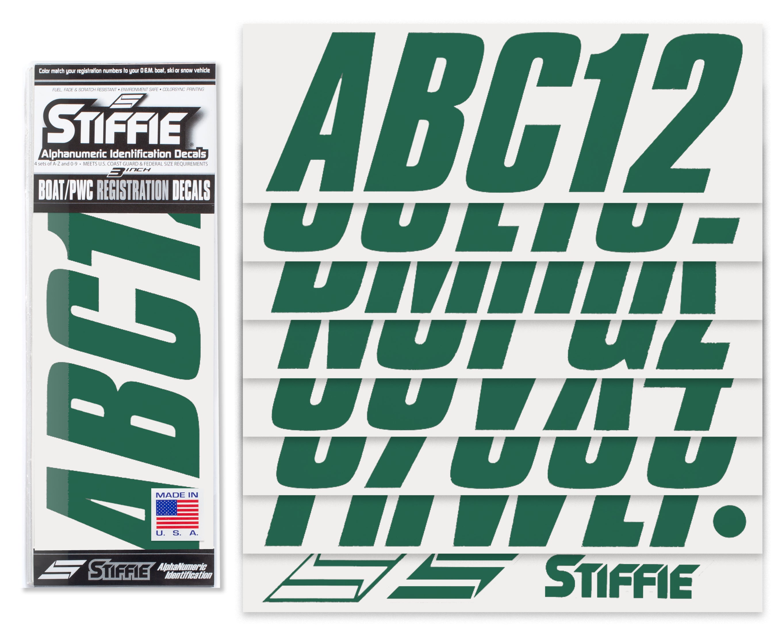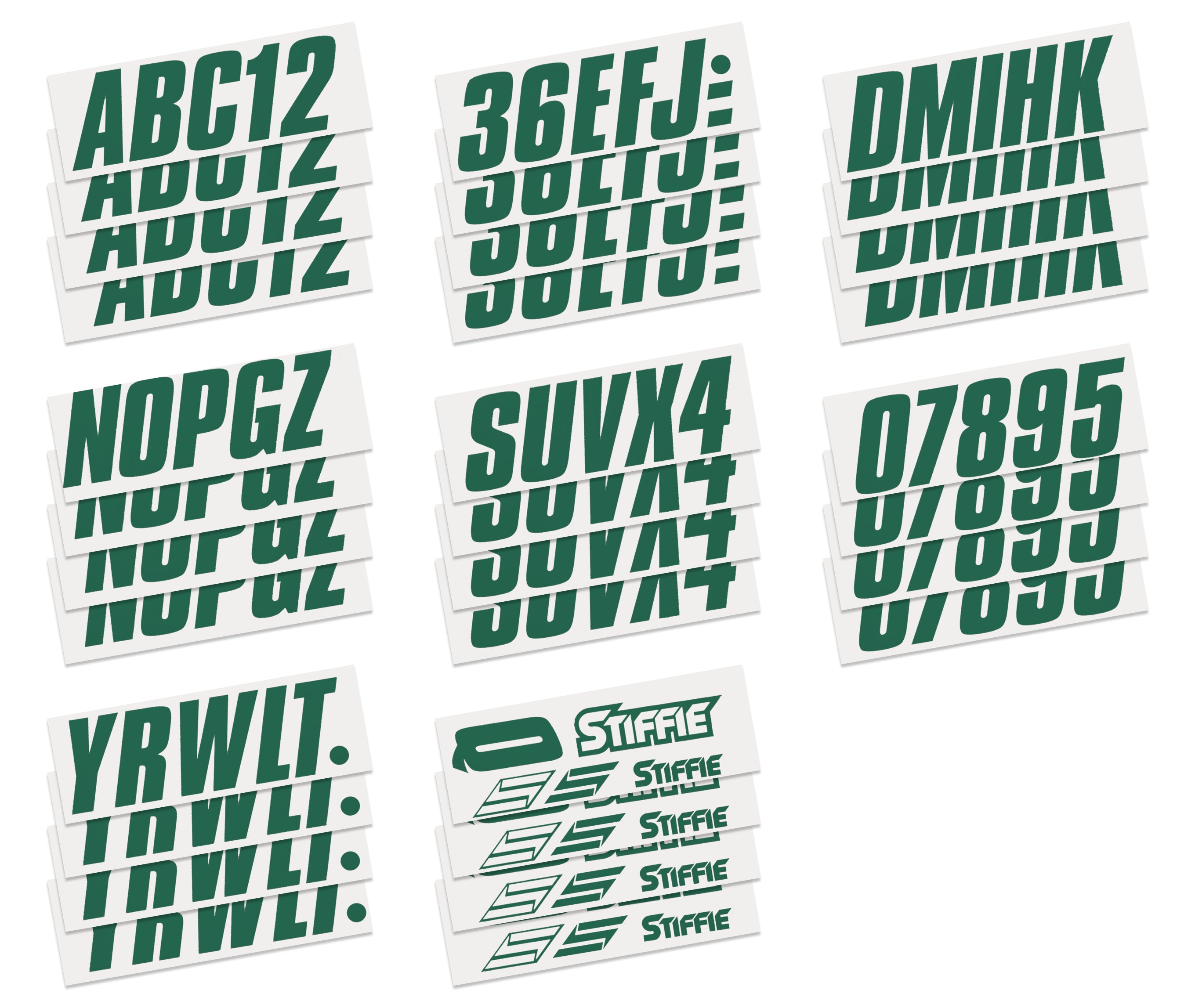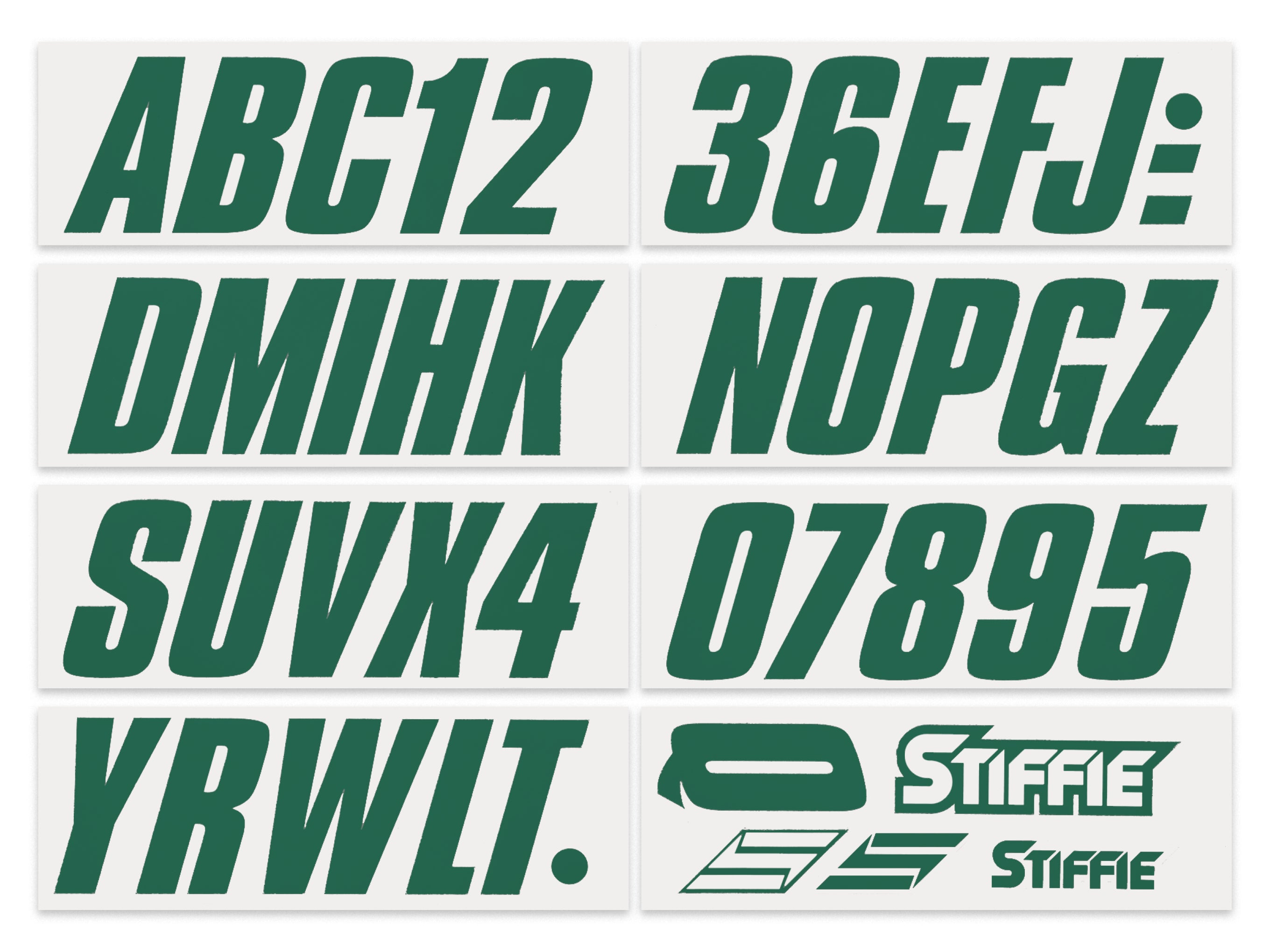 STIFFIE Shift Racing Green 3" ID Kit Alpha-Numeric Registration Identification Numbers Stickers Decals for Boats & Personal Watercraft