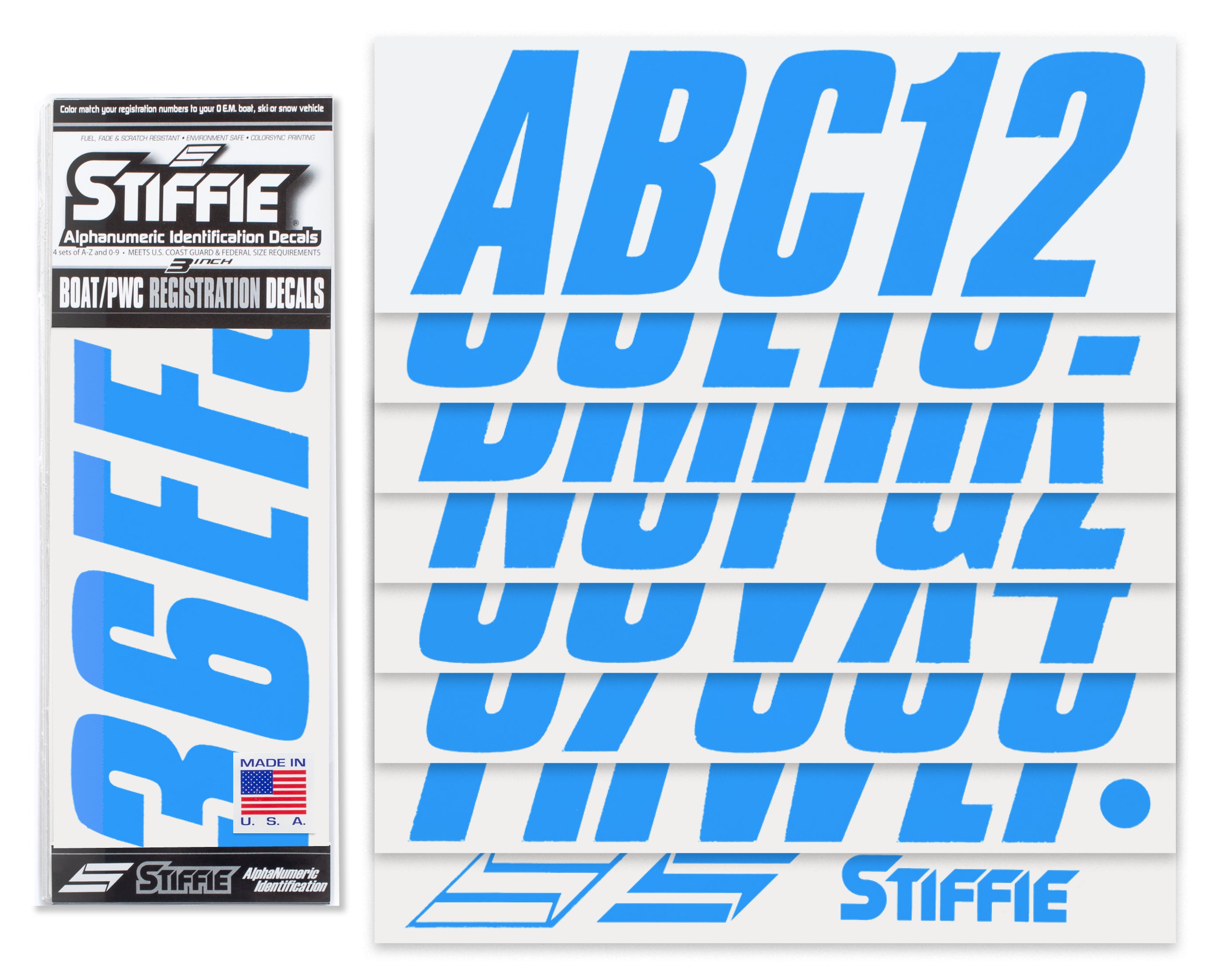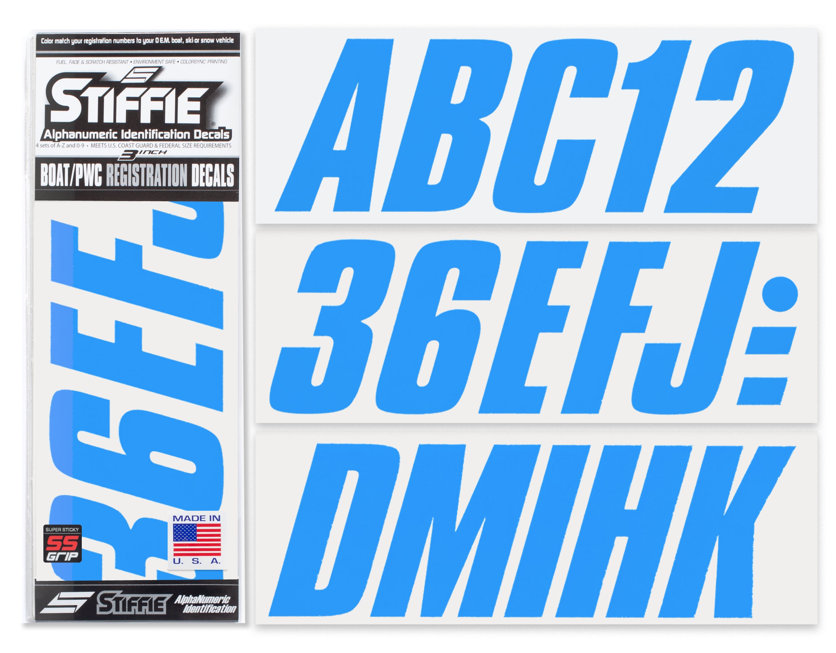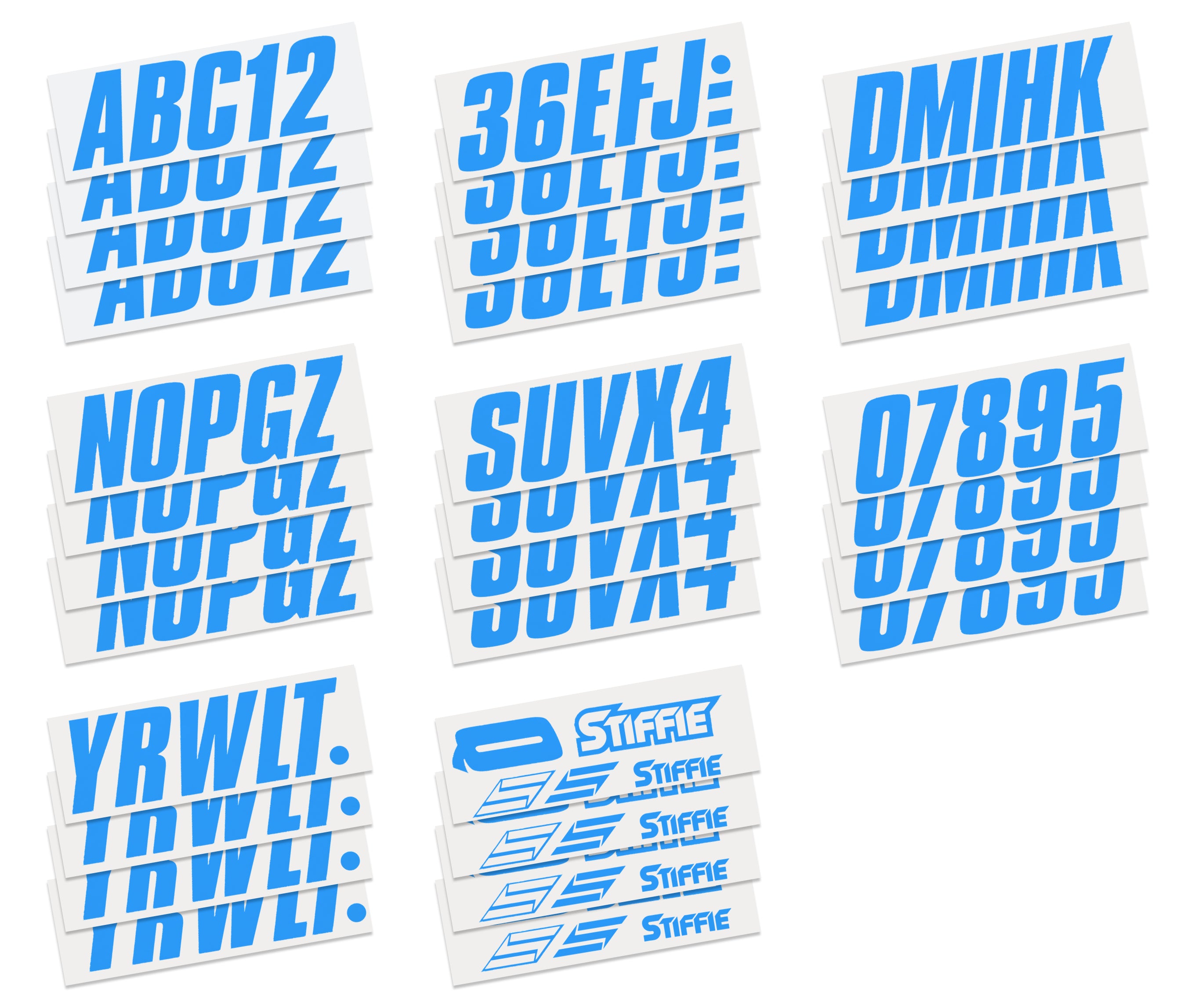 STIFFIE Shift Blueberry Super Sticky 3" Alpha Numeric Registration Identification Numbers Stickers Decals for Sea-Doo Spark, Inflatable Boats, Ribs, Hypalon/PVC, PWC and Boats.