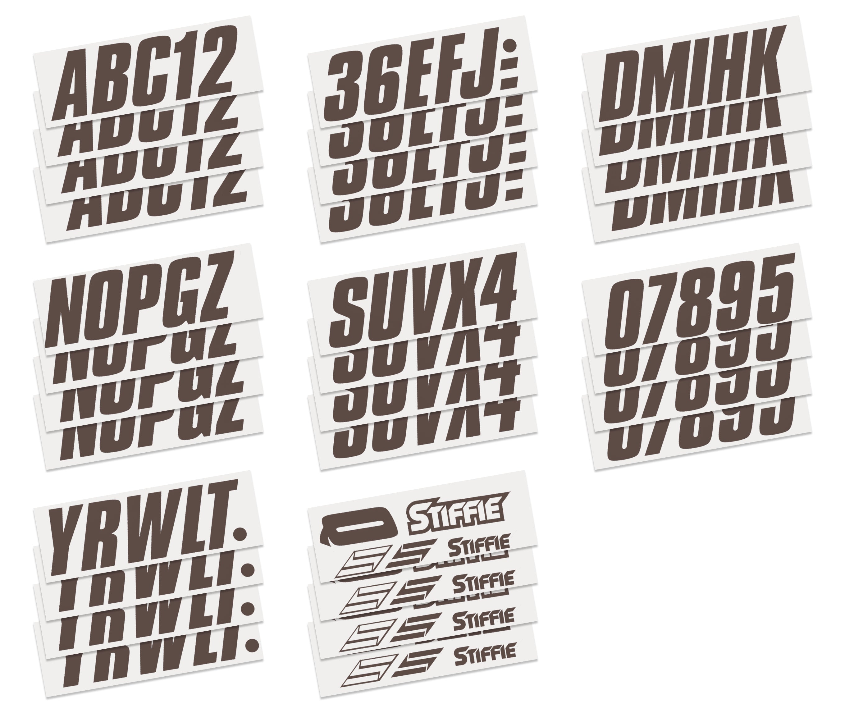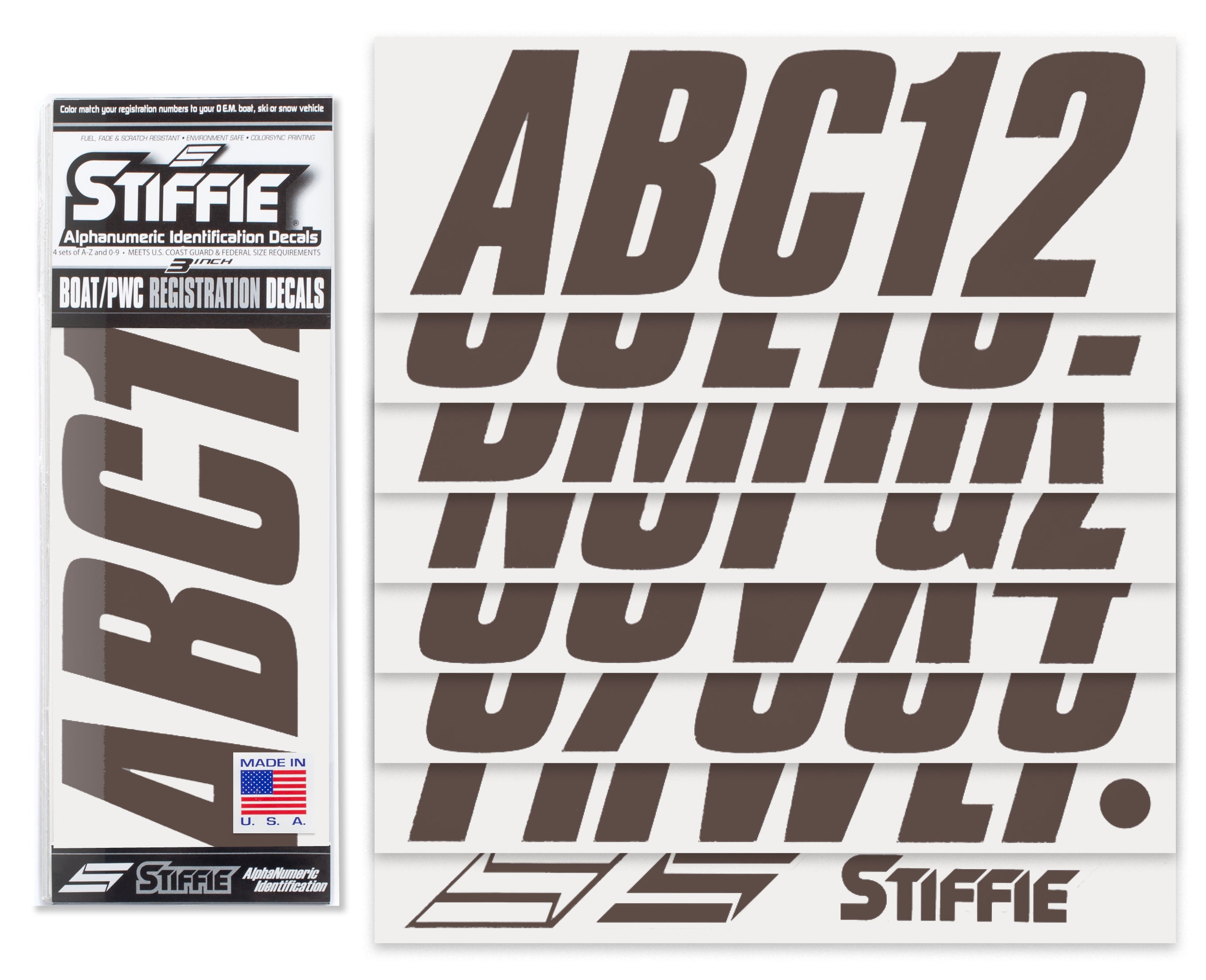 STIFFIE Shift Brown 3" ID Kit Alpha-Numeric Registration Identification Numbers Stickers Decals for Boats & Personal Watercraft