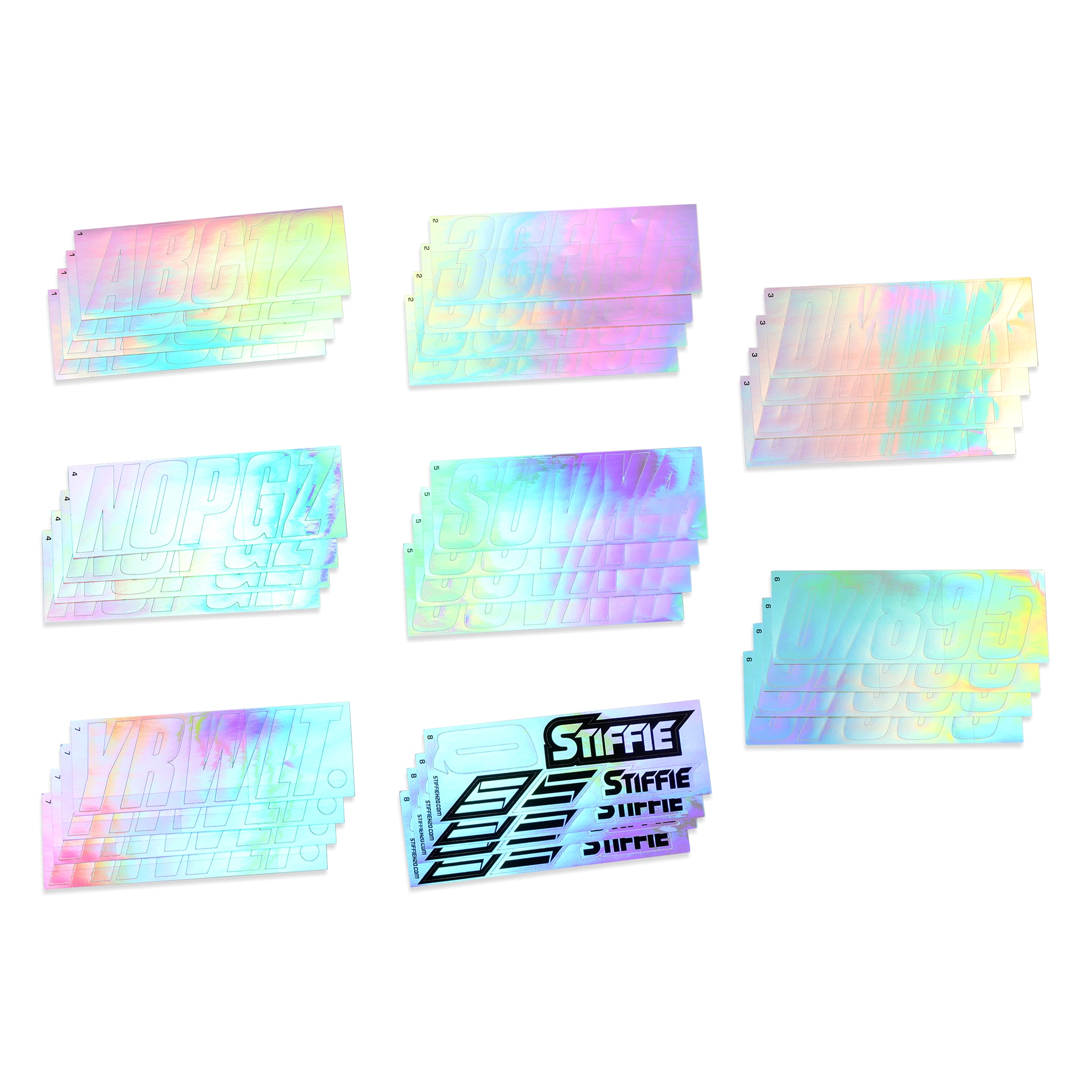 - All STIFFIE kits include 4 each of the letters A-Z and the numbers 0-9 for a total of 146 decals.