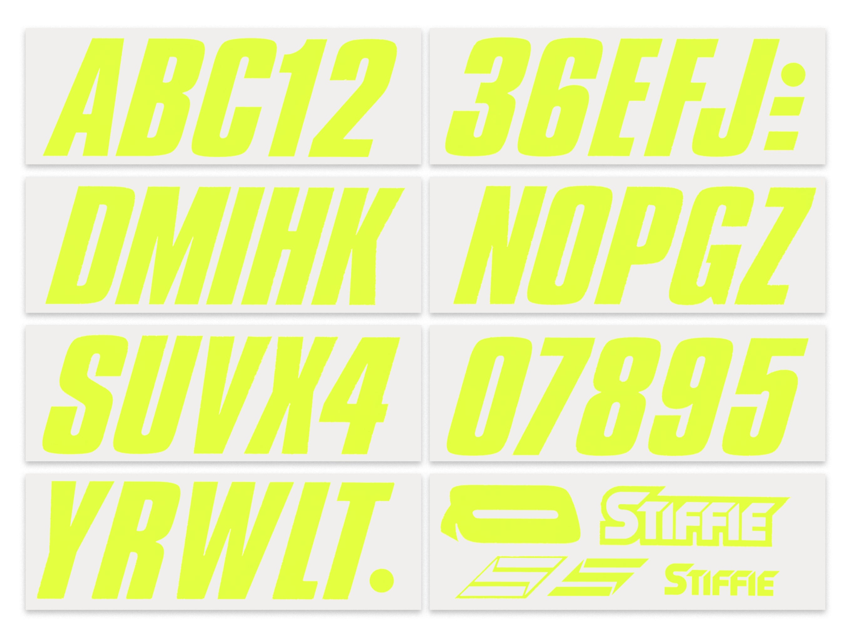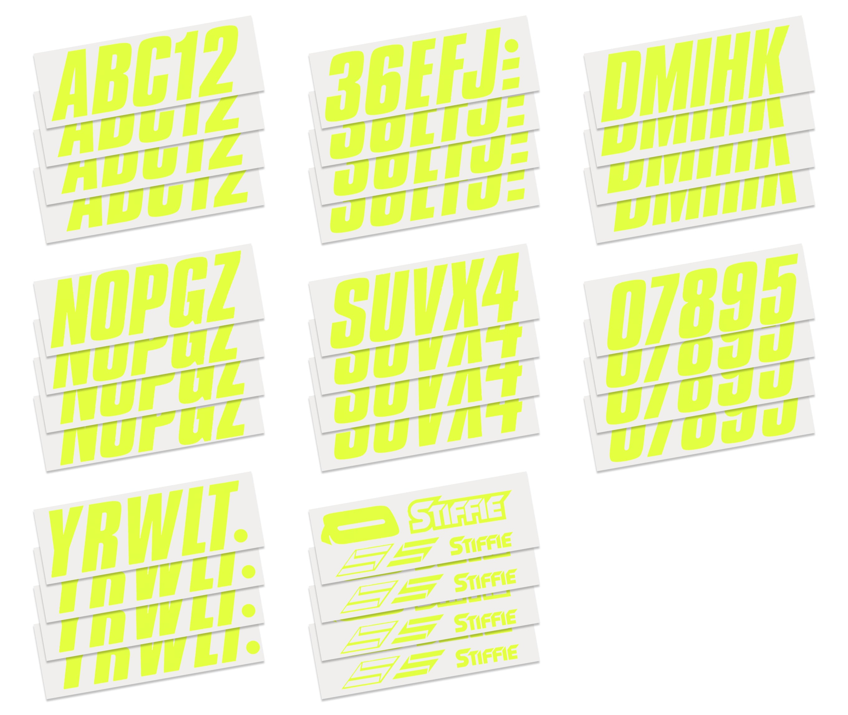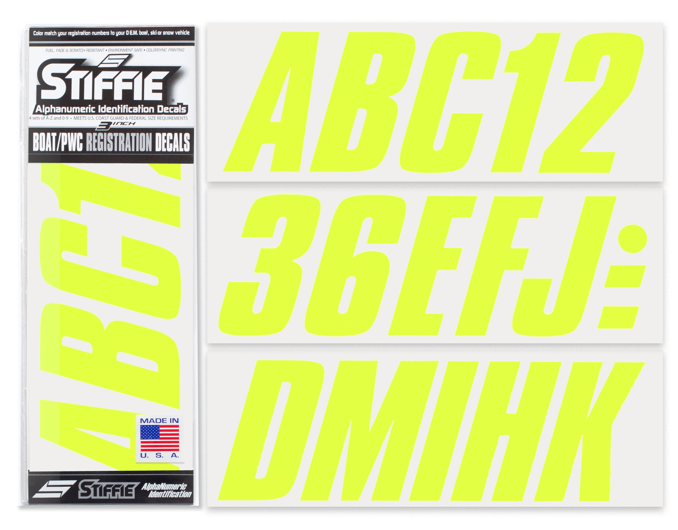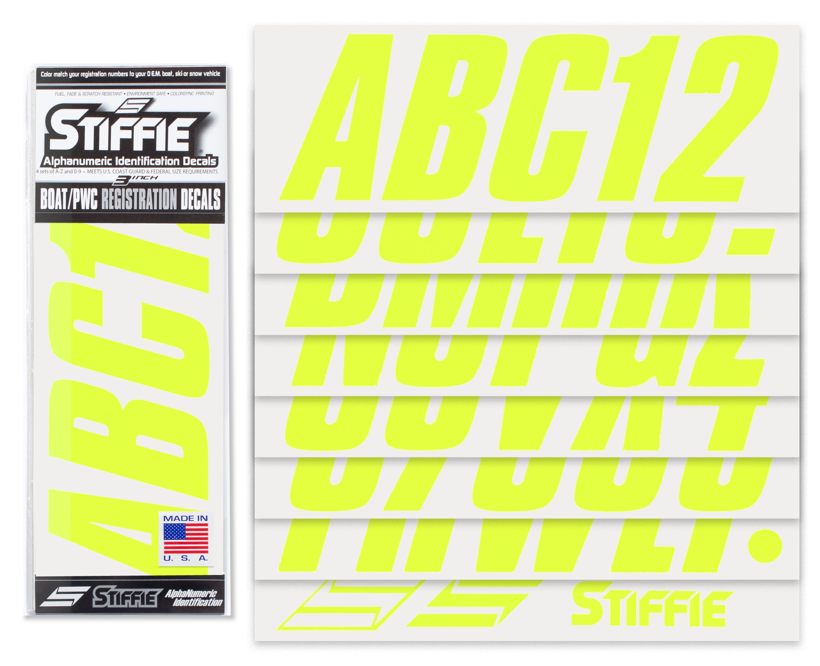 STIFFIE Shift Day Glow Yellow 3" ID Kit Alpha-Numeric Registration Identification Numbers Stickers Decals for Boats & Personal Watercraft