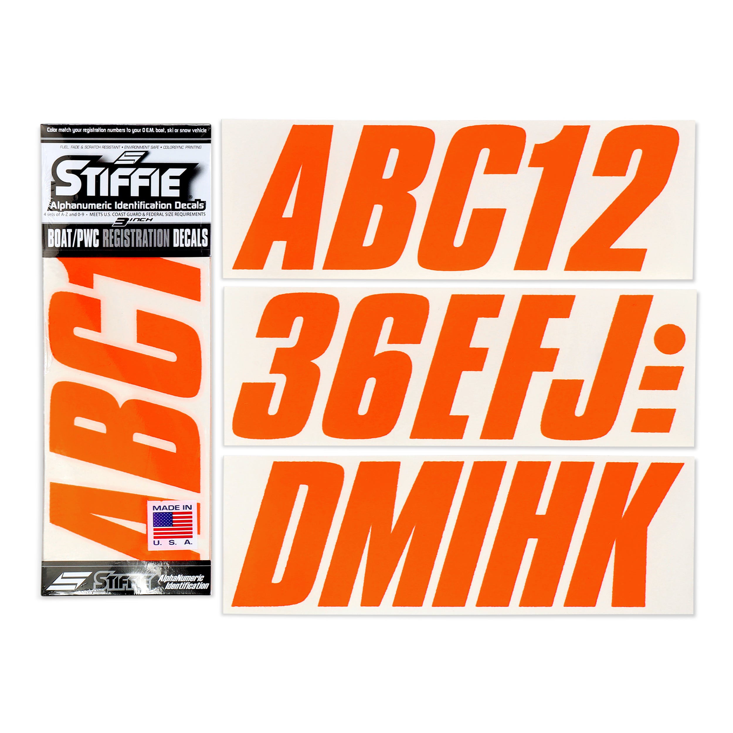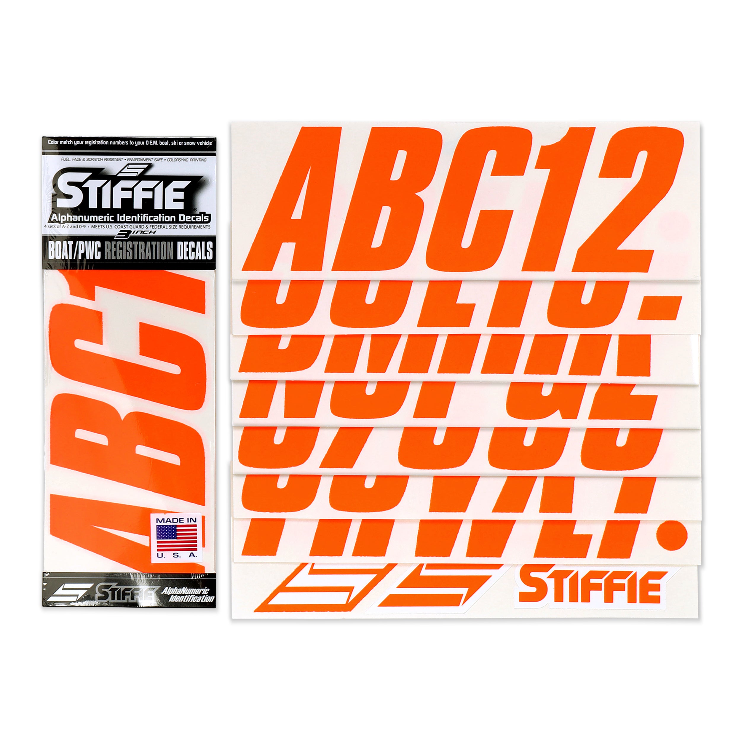 STIFFIE Shift Electric Orange 3" ID Kit Alpha-Numeric Registration Identification Numbers Stickers Decals for Boats & Personal Watercraft