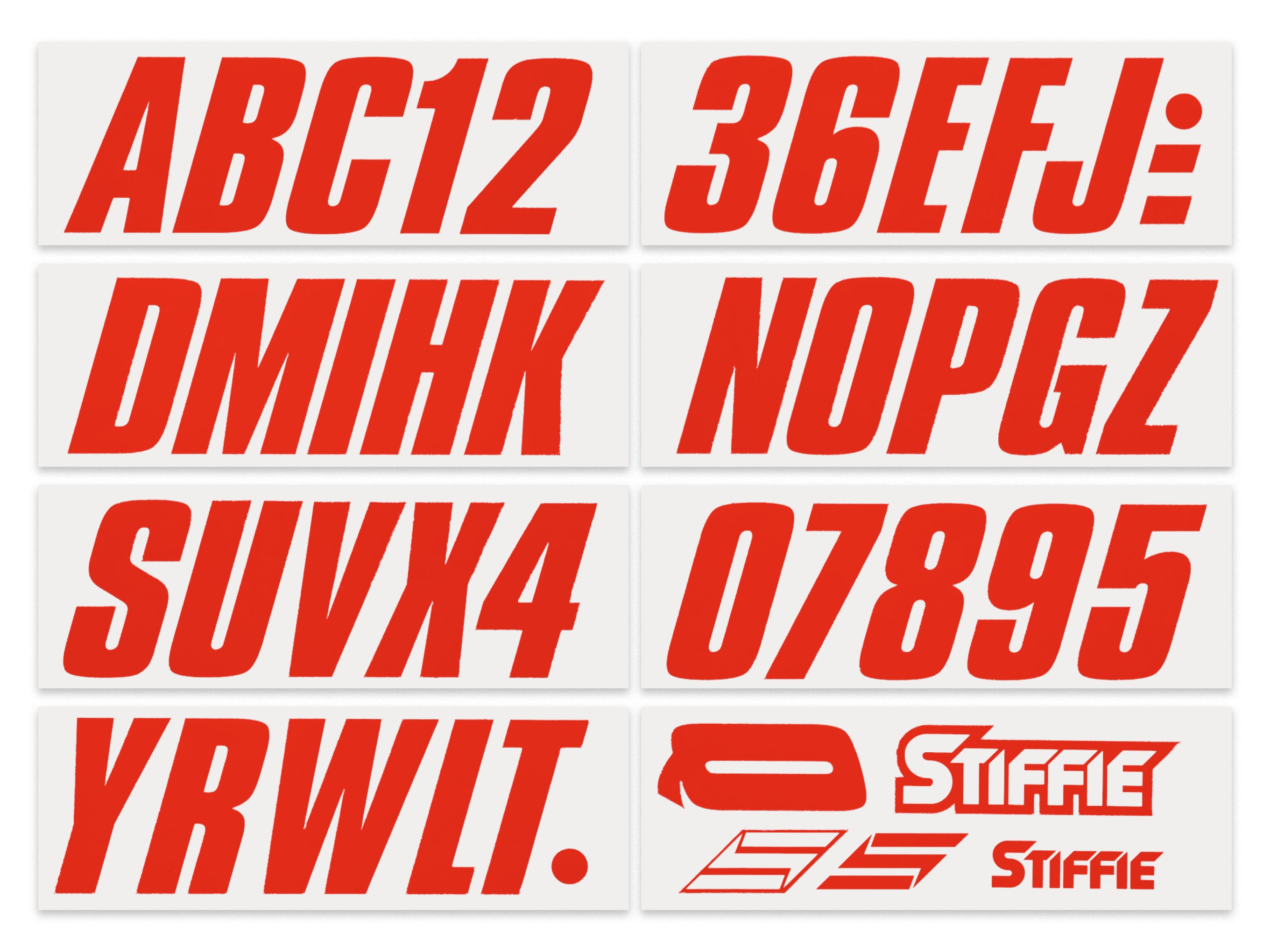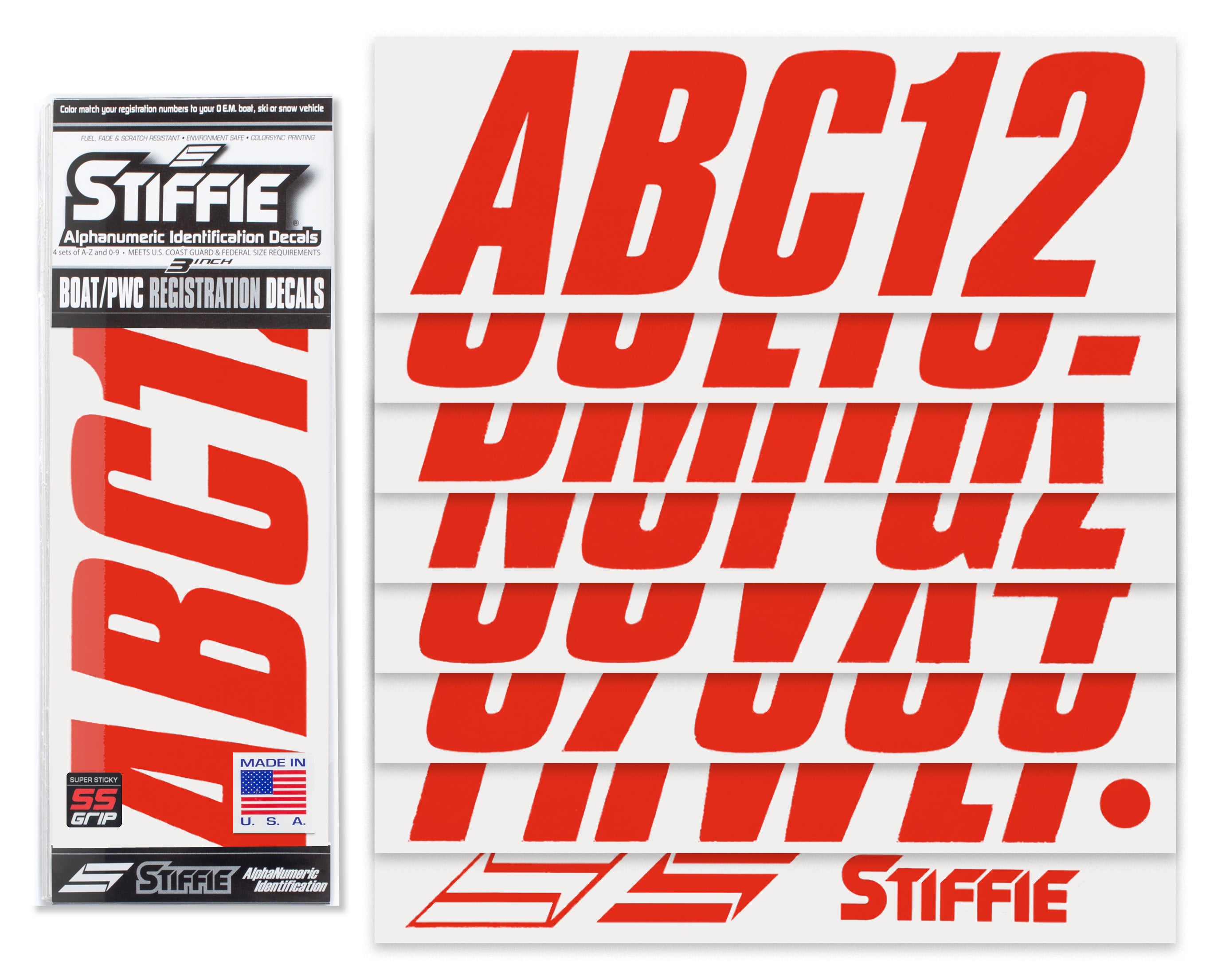 STIFFIE Shift Lava Red Super Sticky 3" Alpha Numeric Registration Identification Numbers Stickers Decals for Sea-Doo Spark, Inflatable Boats, Ribs, Hypalon/PVC, PWC and Boats.