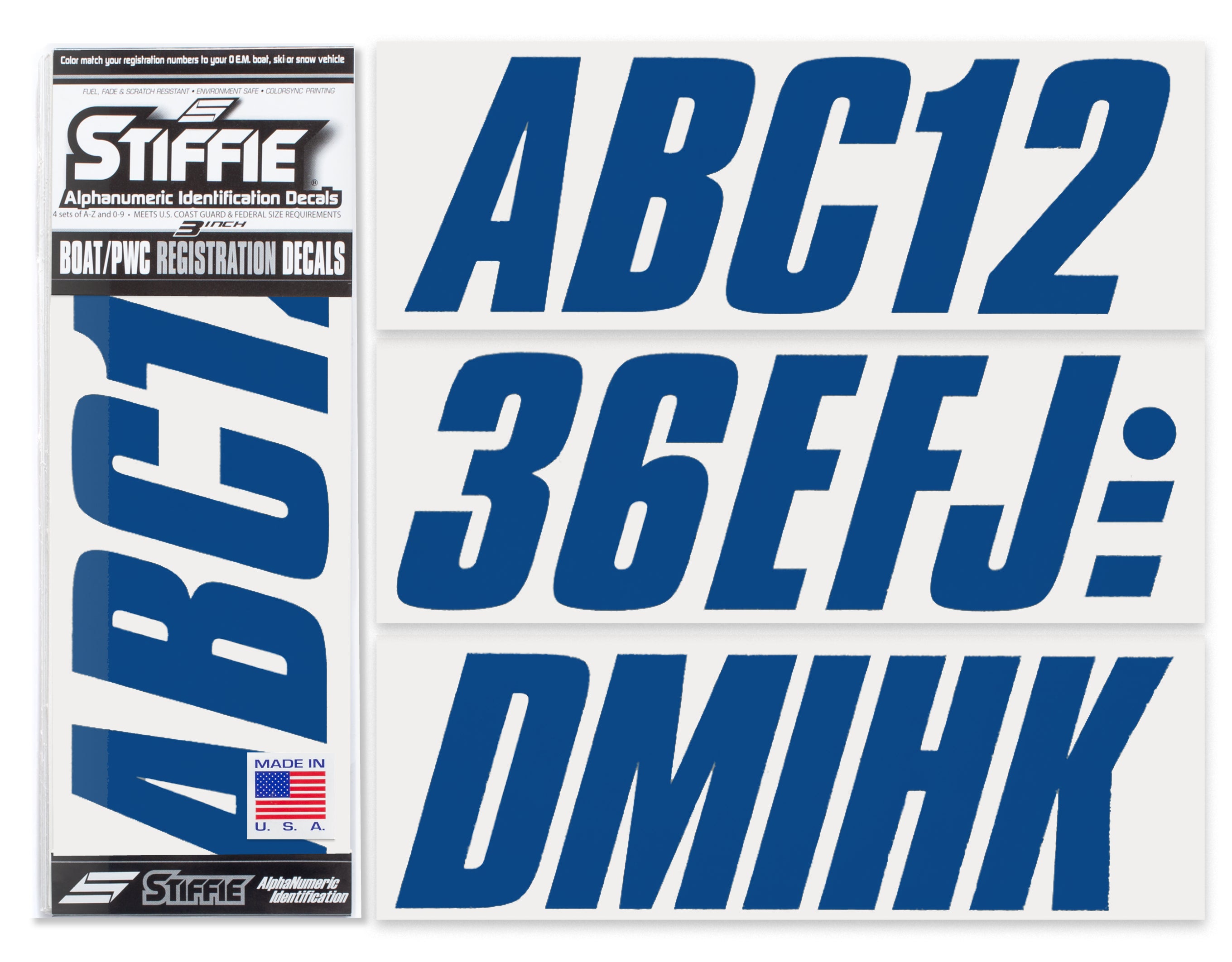 STIFFIE Shift Navy 3" ID Kit Alpha-Numeric Registration Identification Numbers Stickers Decals for Boats & Personal Watercraft