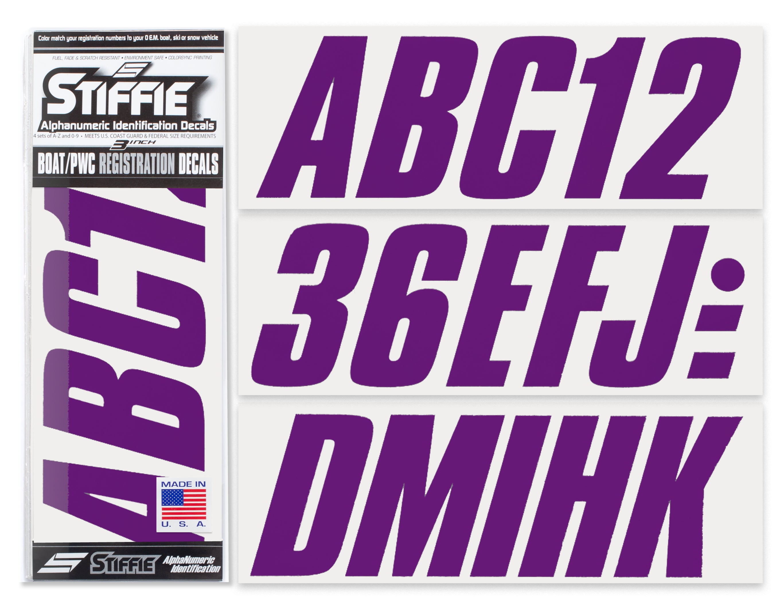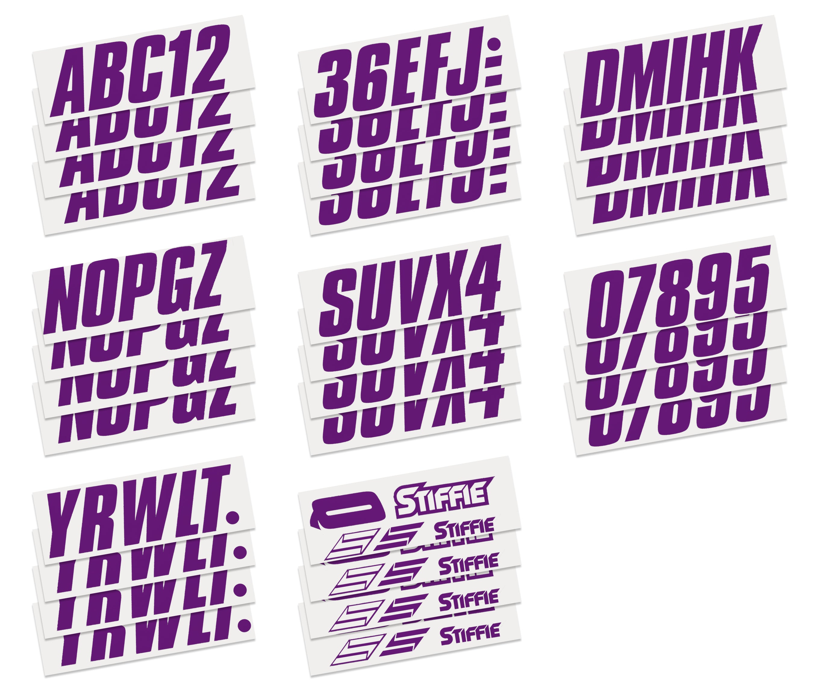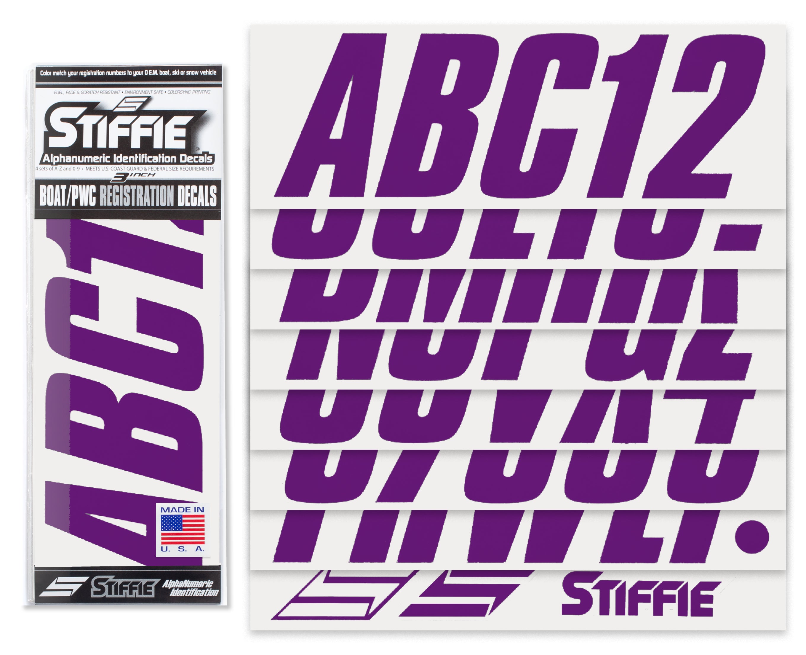 STIFFIE Shift Purple 3" ID Kit Alpha-Numeric Registration Identification Numbers Stickers Decals for Boats & Personal Watercraft