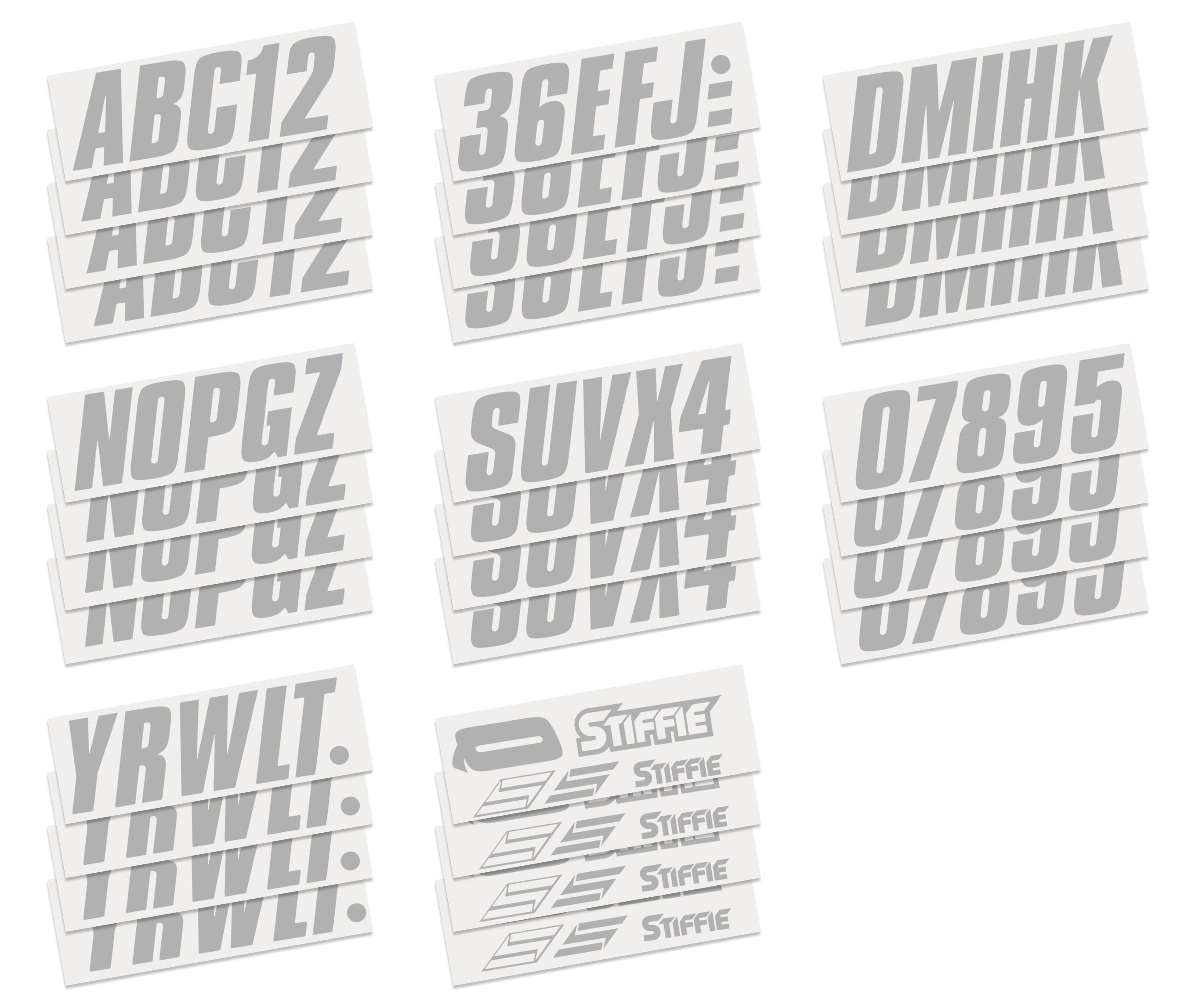 - All STIFFIE kits include 4 each of the letters A-Z and the numbers 0-9 for a total of 146 decals.