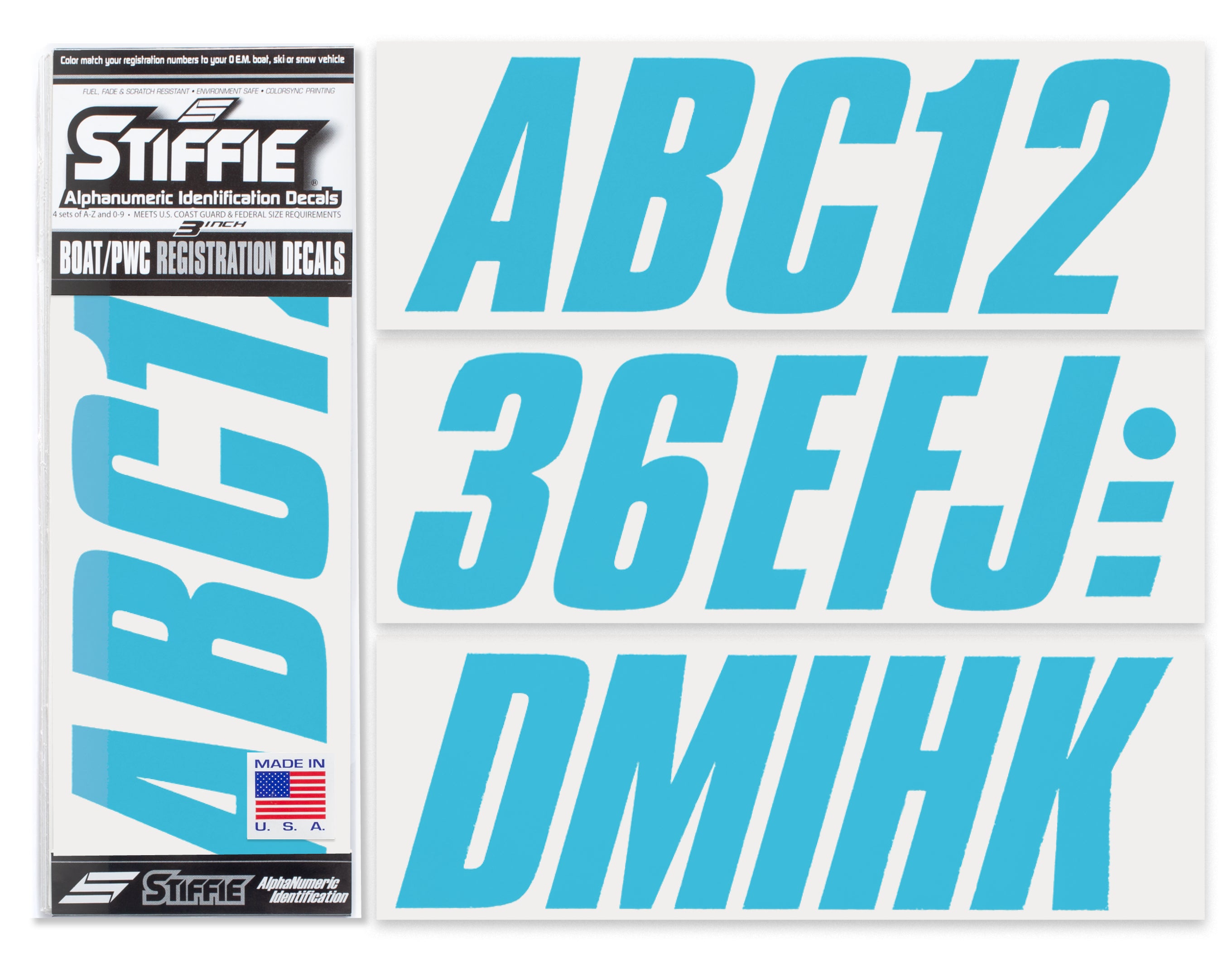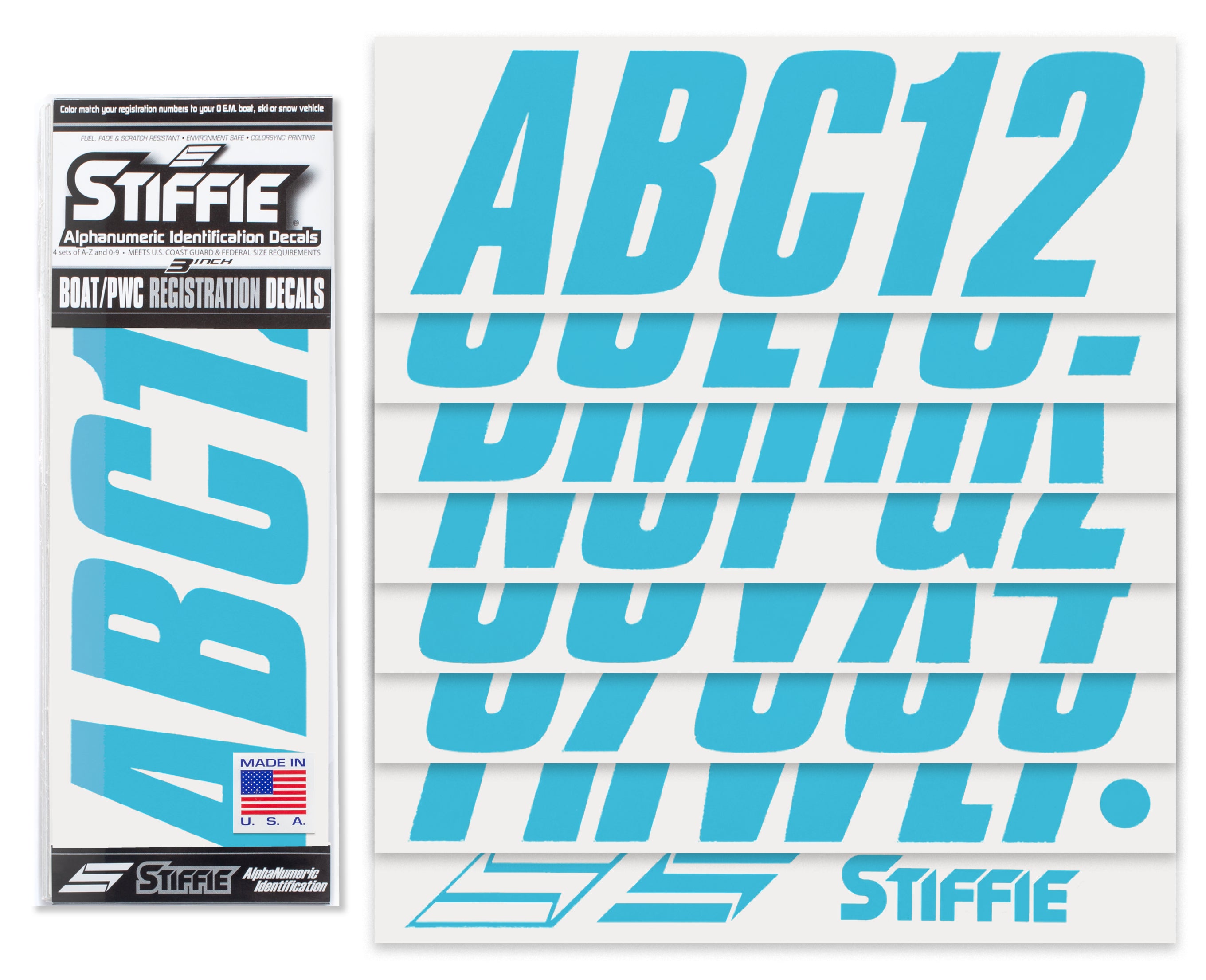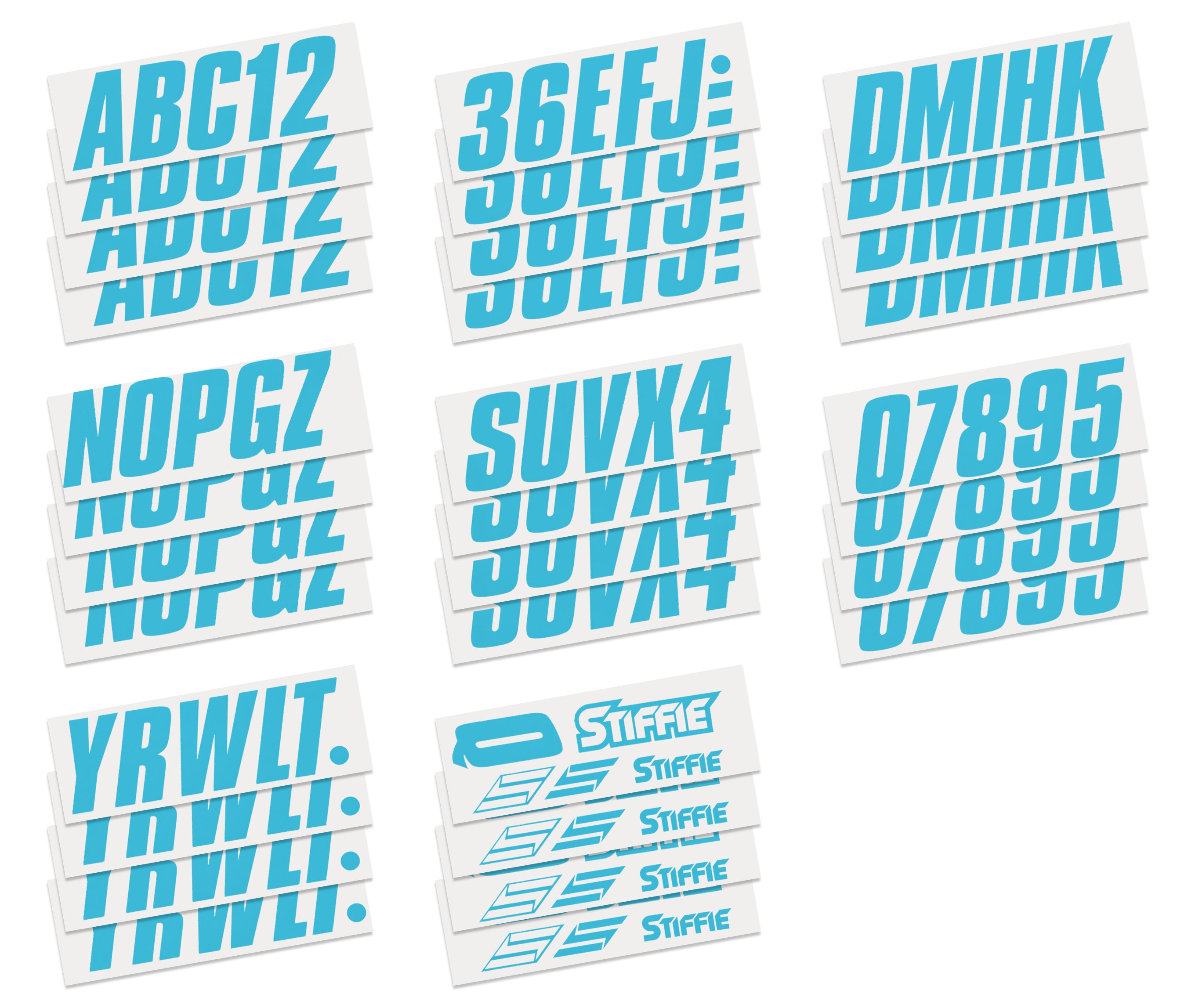 STIFFIE Shift Sky Blue 3" ID Kit Alpha-Numeric Registration Identification Numbers Stickers Decals for Boats & Personal Watercraft