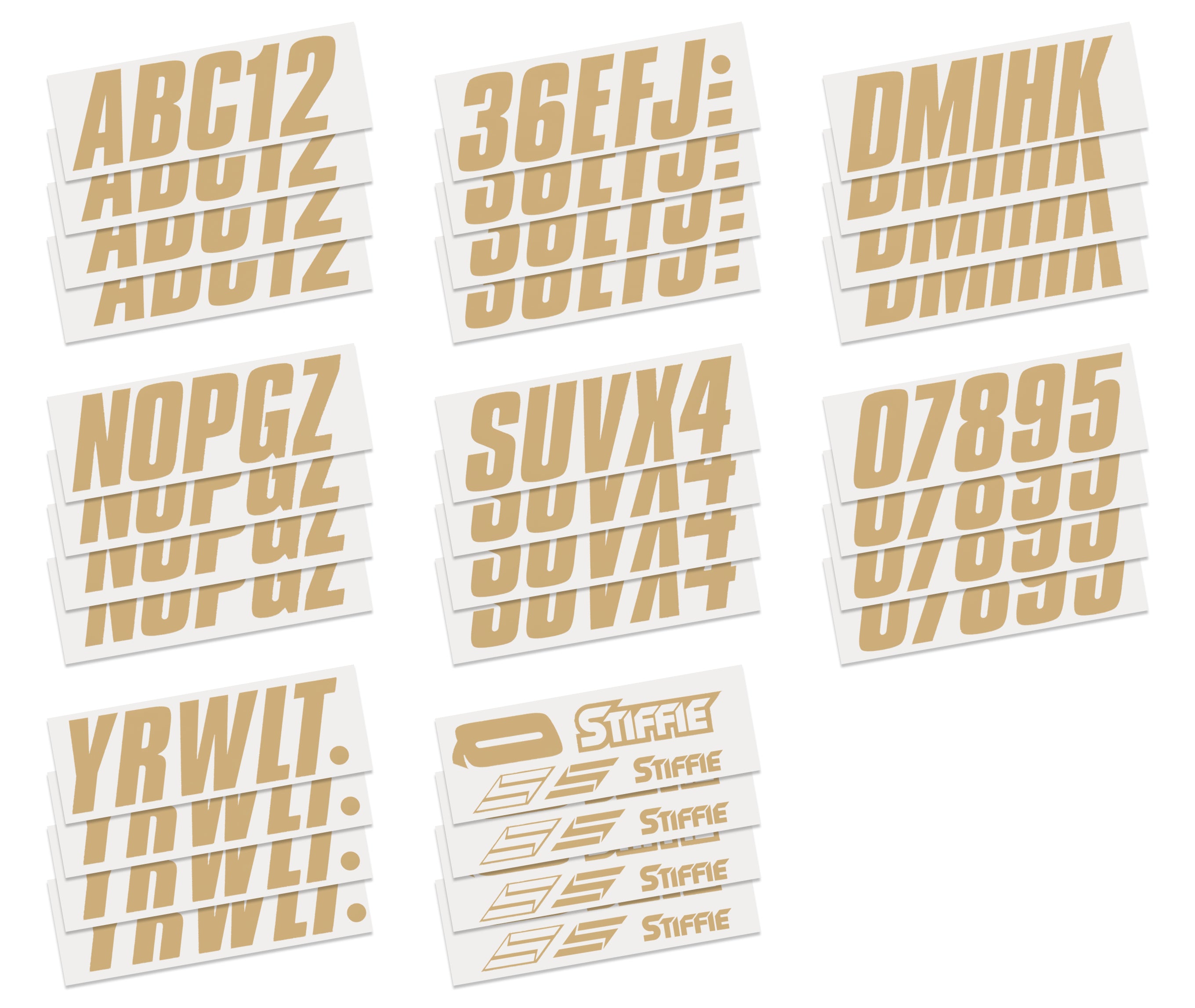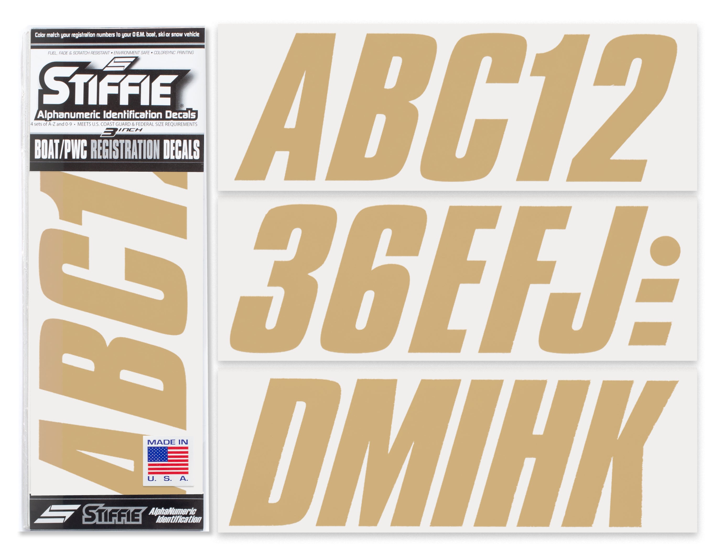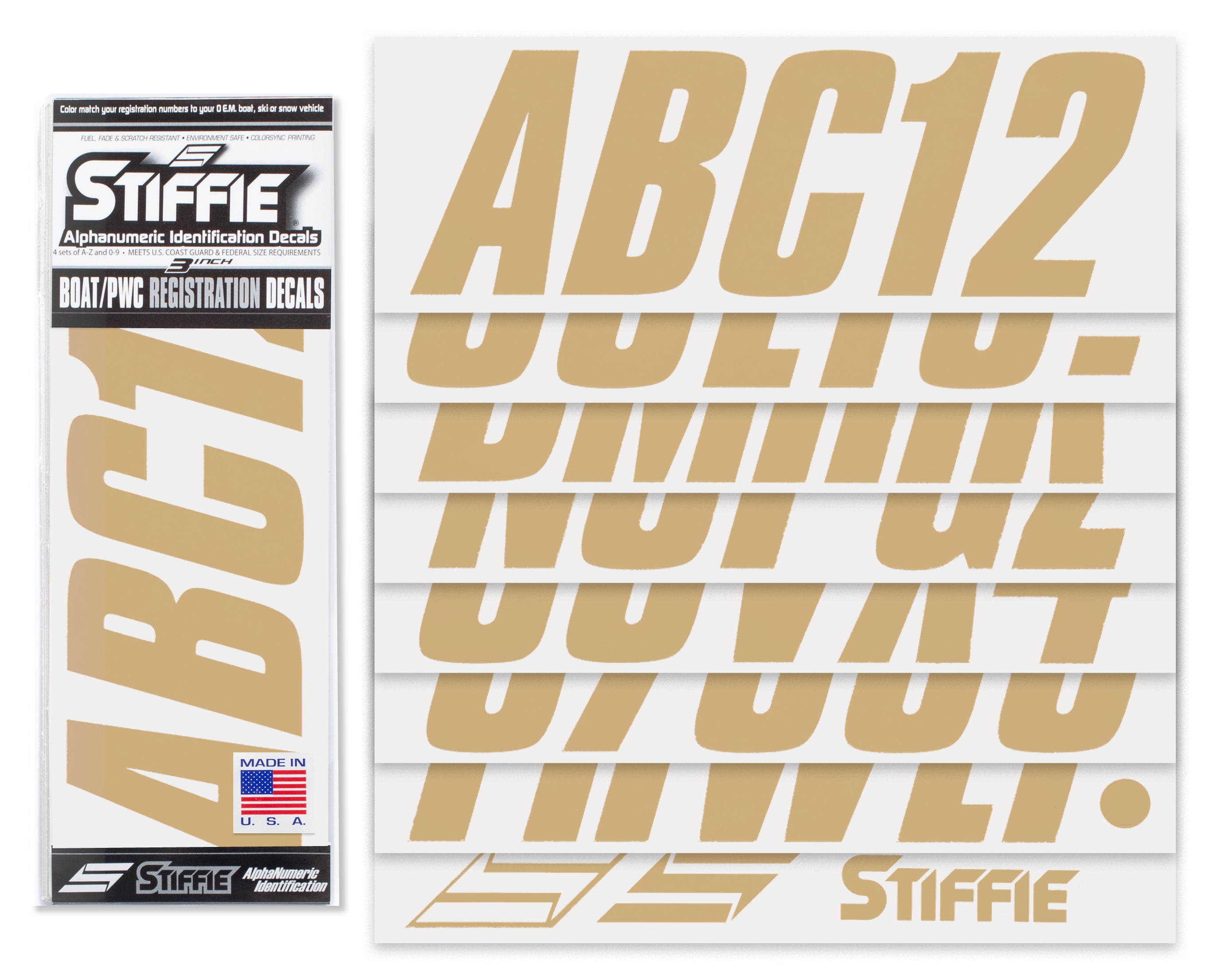 STIFFIE Shift Tan 3" ID Kit Alpha-Numeric Registration Identification Numbers Stickers Decals for Boats & Personal Watercraft