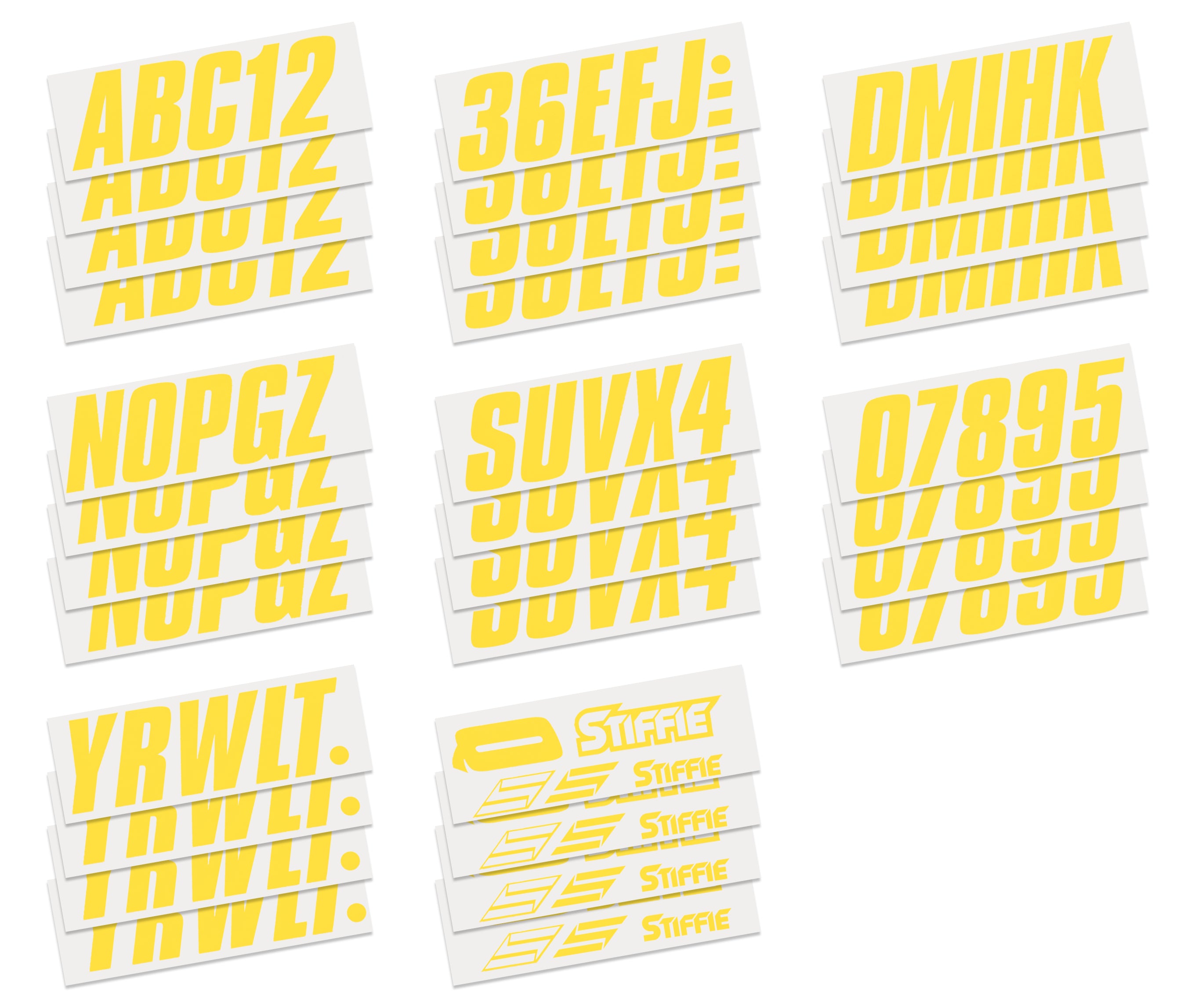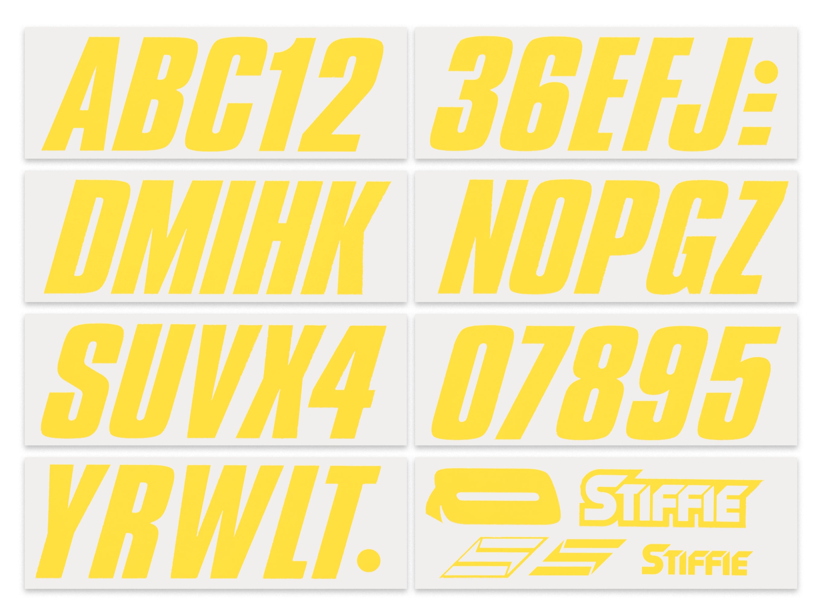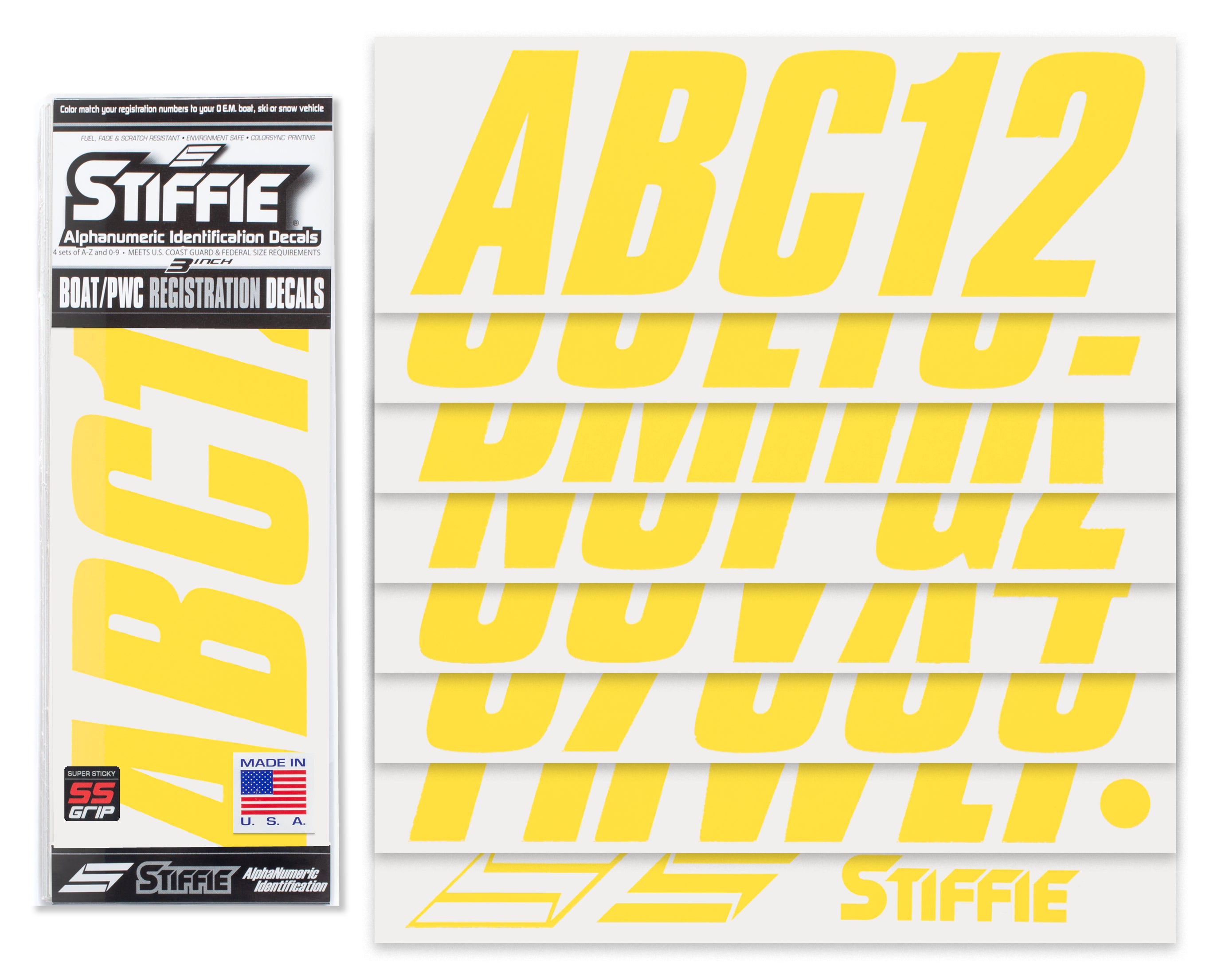 STIFFIE Shift Yellow Crush Super Sticky 3" Alpha Numeric Registration Identification Numbers Stickers Decals for Sea-Doo Spark, Inflatable Boats, Ribs, Hypalon/PVC, PWC and Boats.