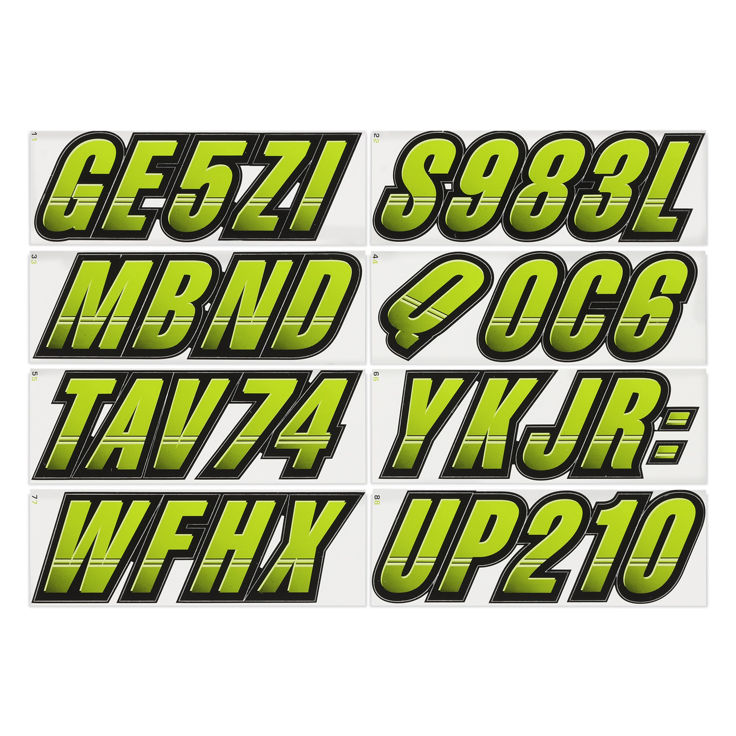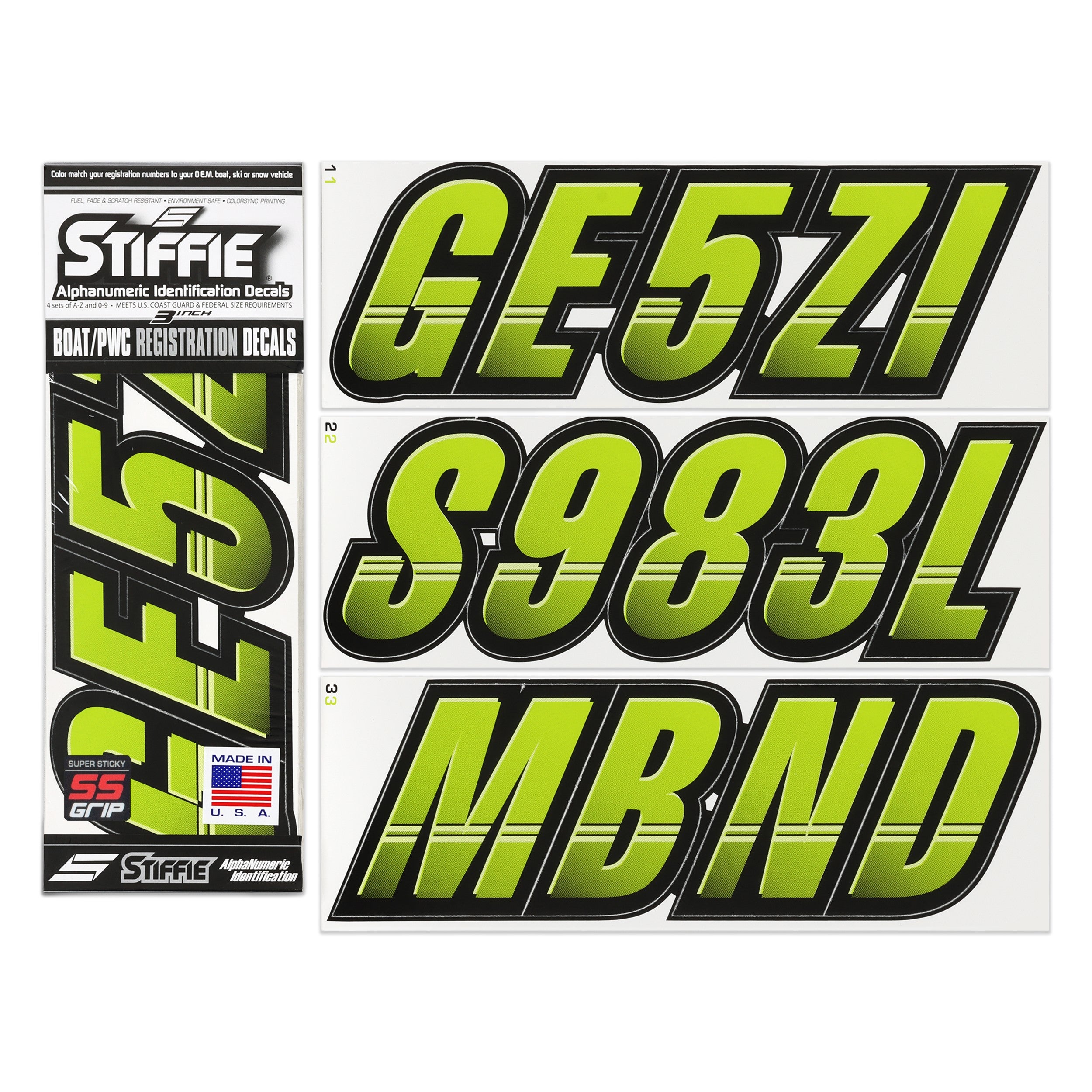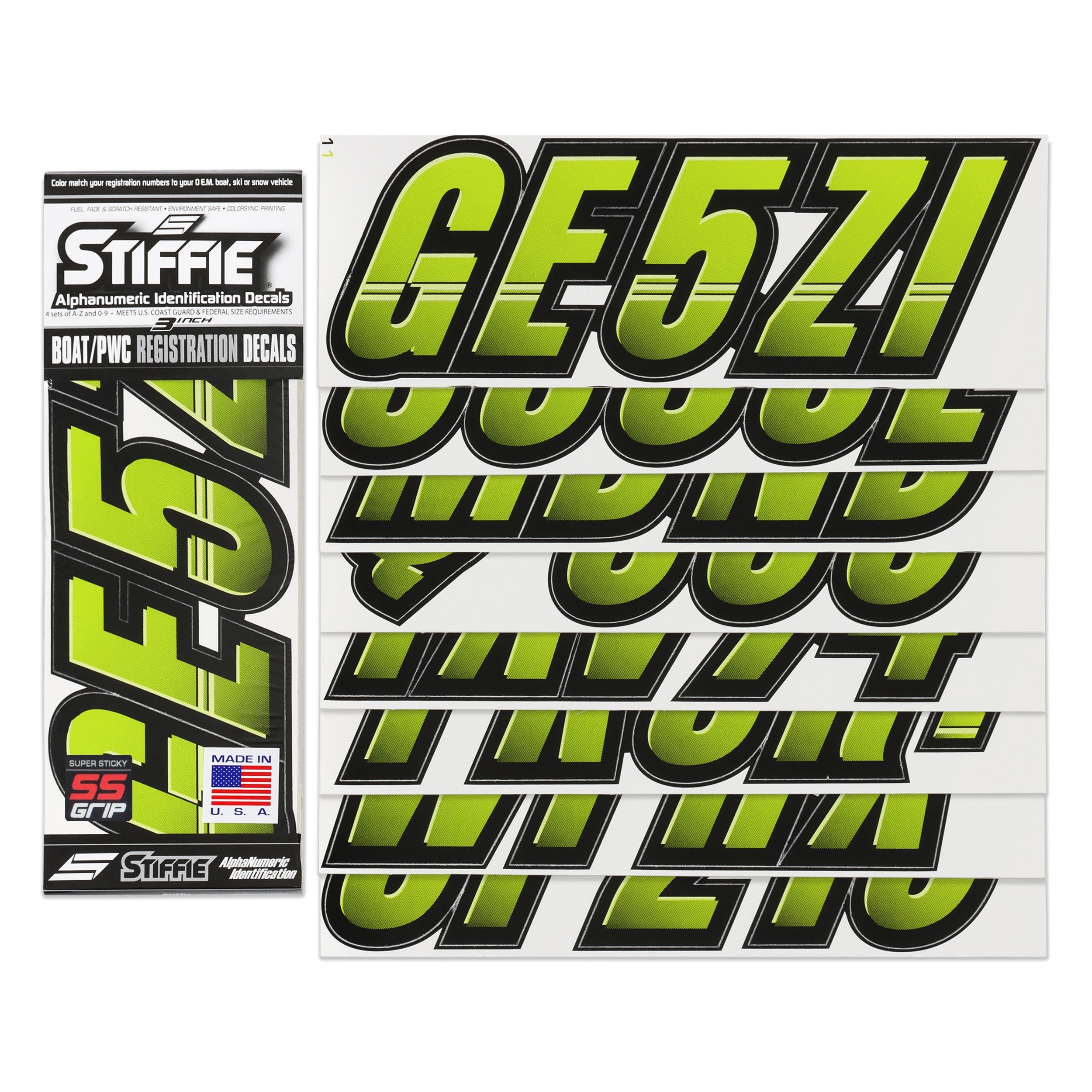 STIFFIE Techtron Atomic Green/Black 3” Super Sticky Boat & PWC Registration Decals • Numbers Letters Stickers
