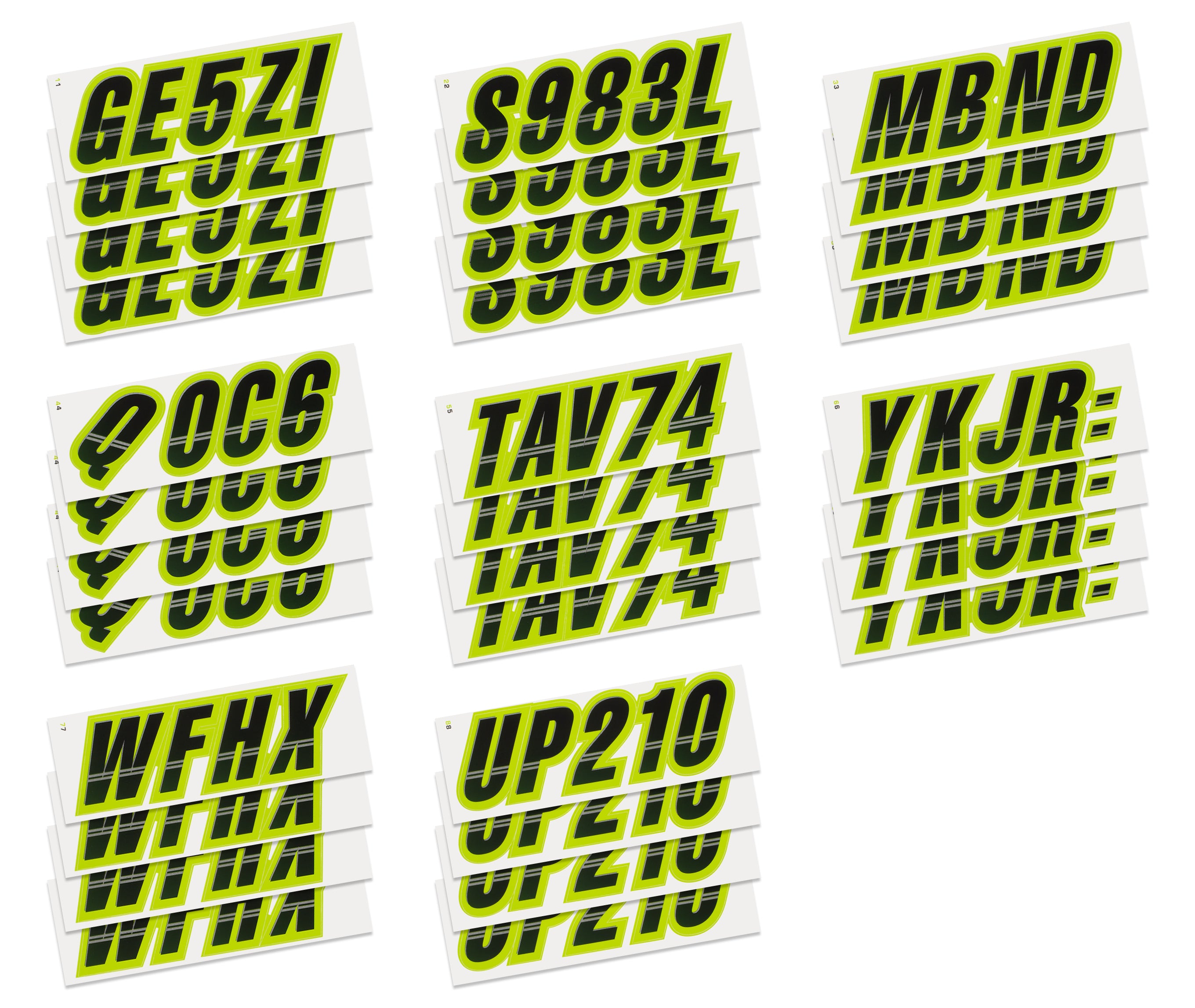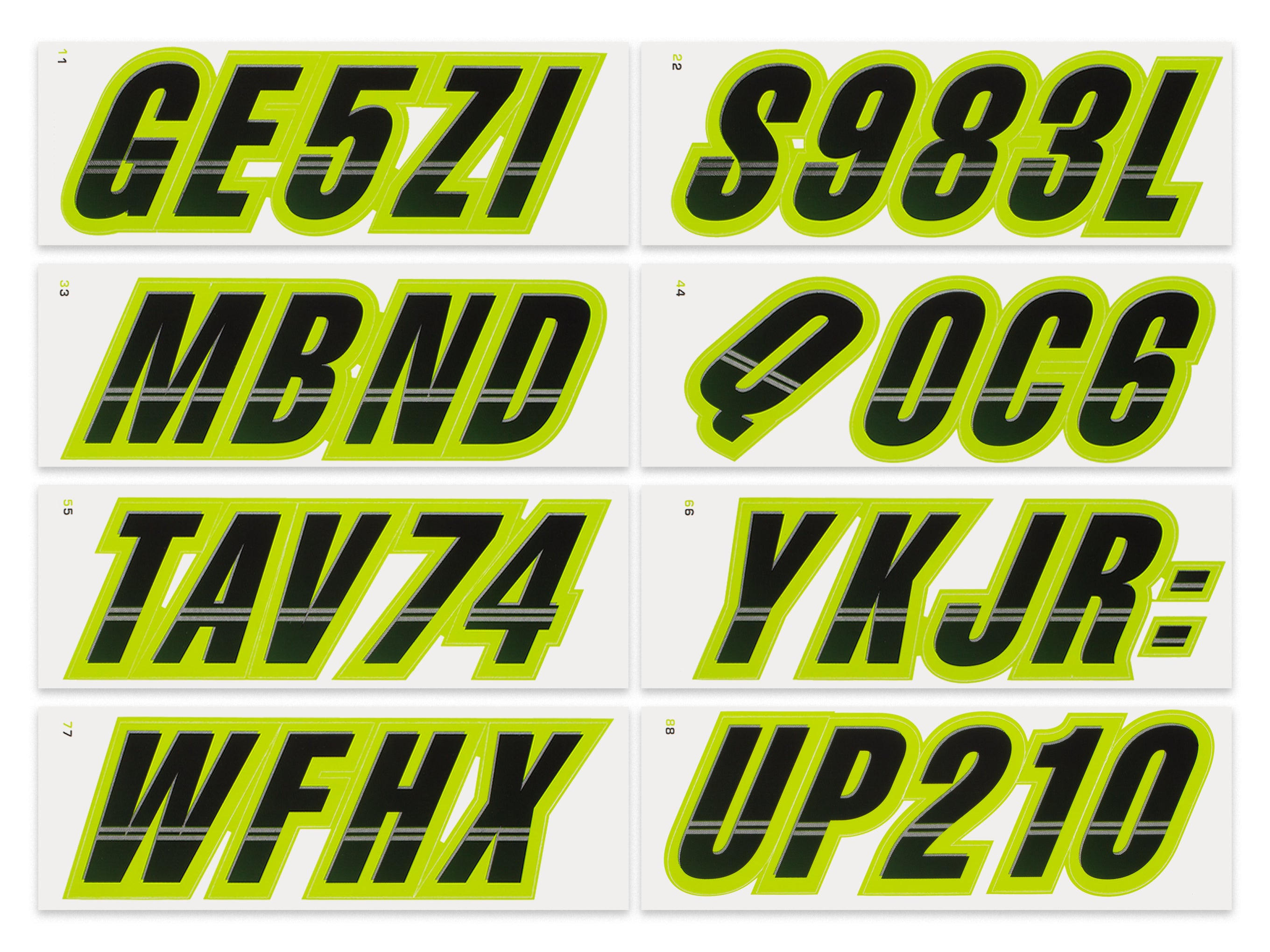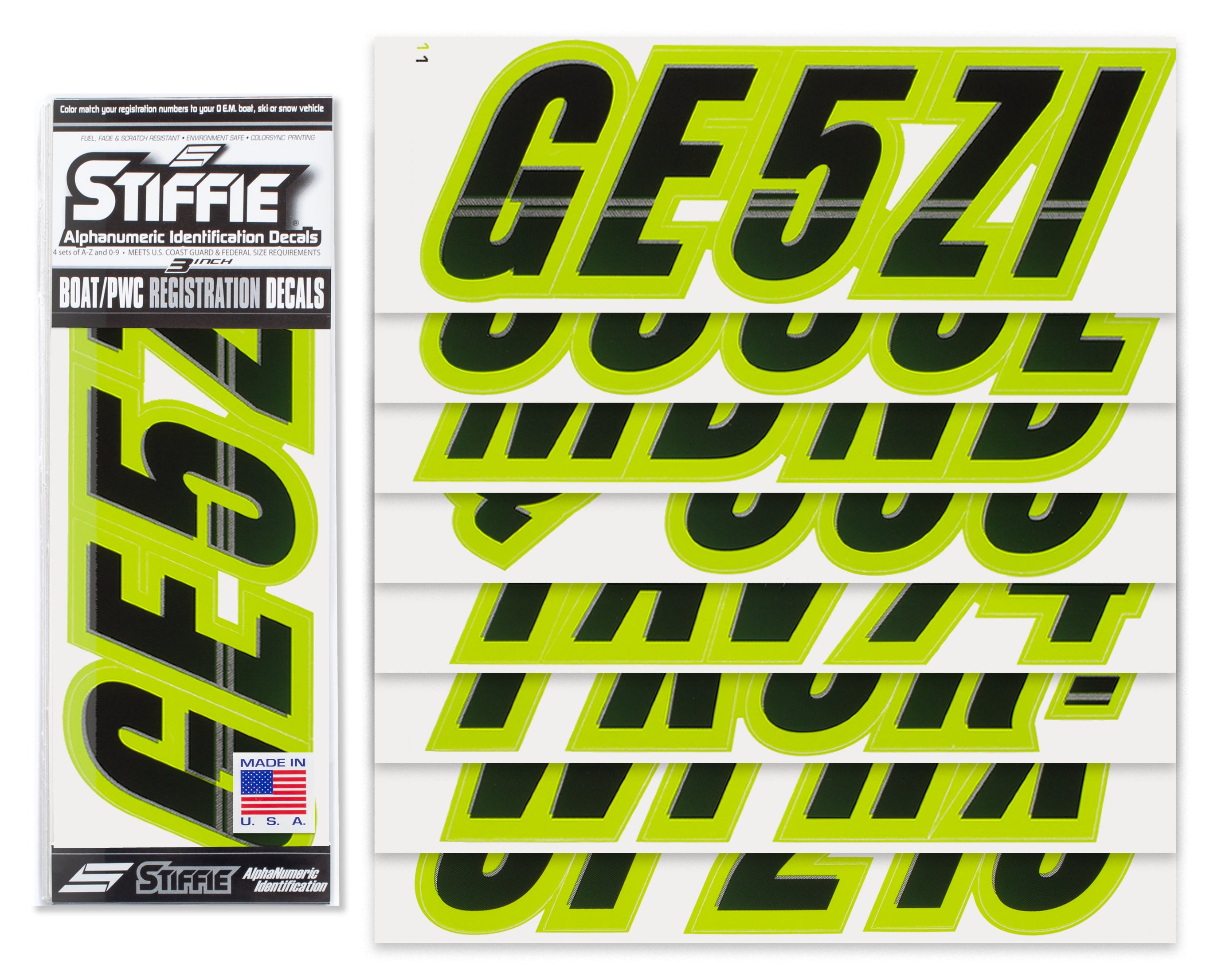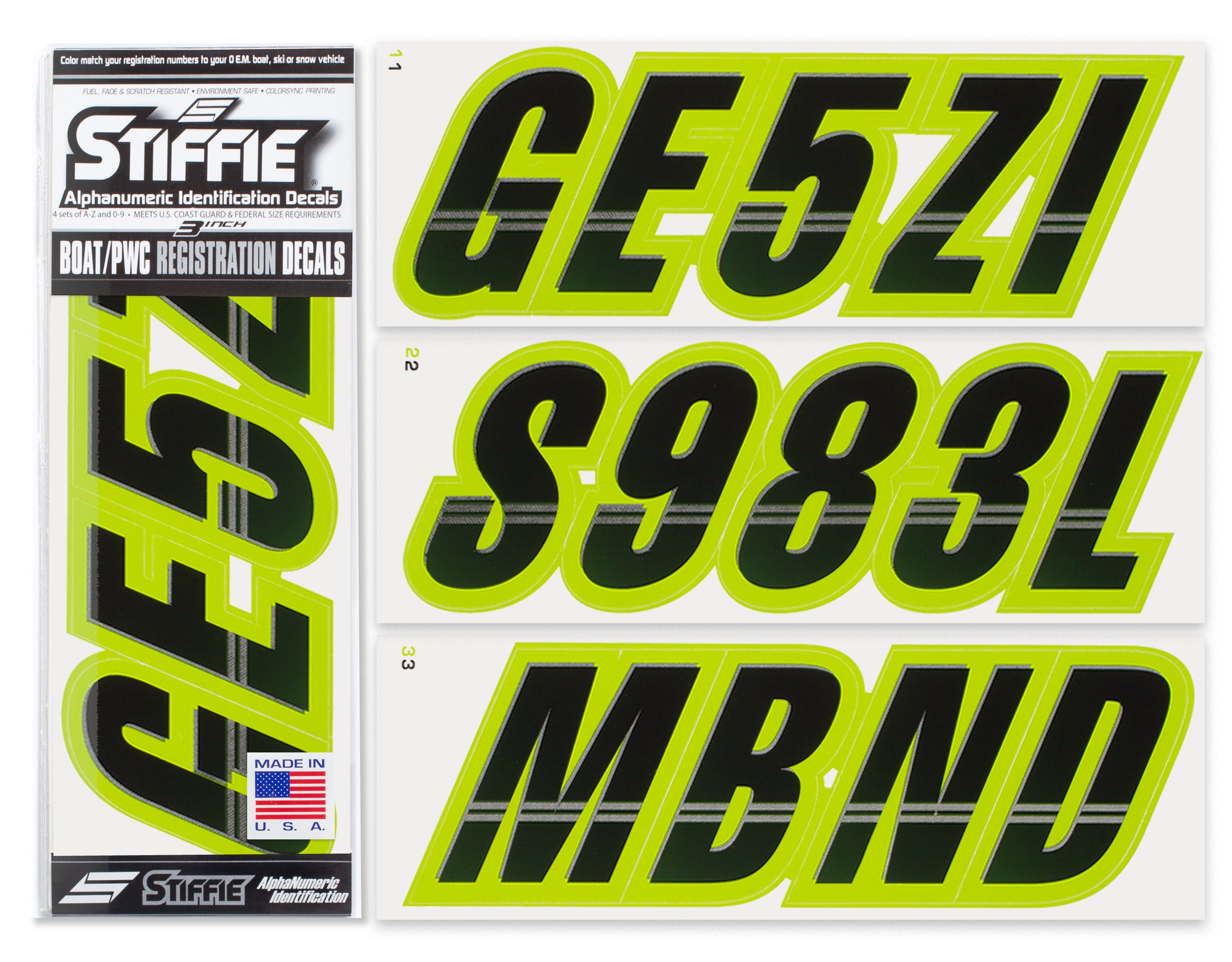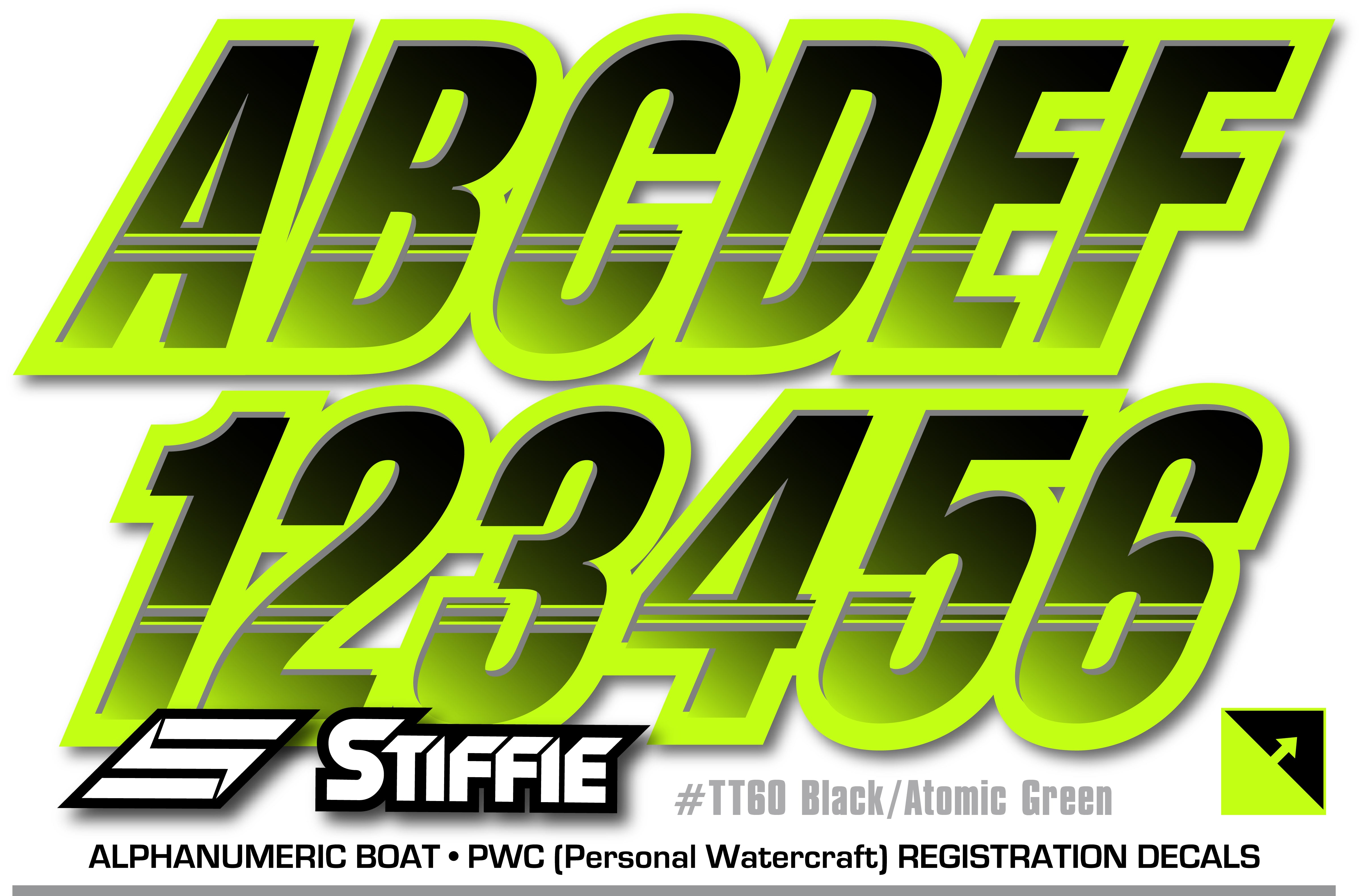 STIFFIE Techtron Black/Atomic Green 3” Boat & PWC Registration Decals • Numbers Letters Stickers