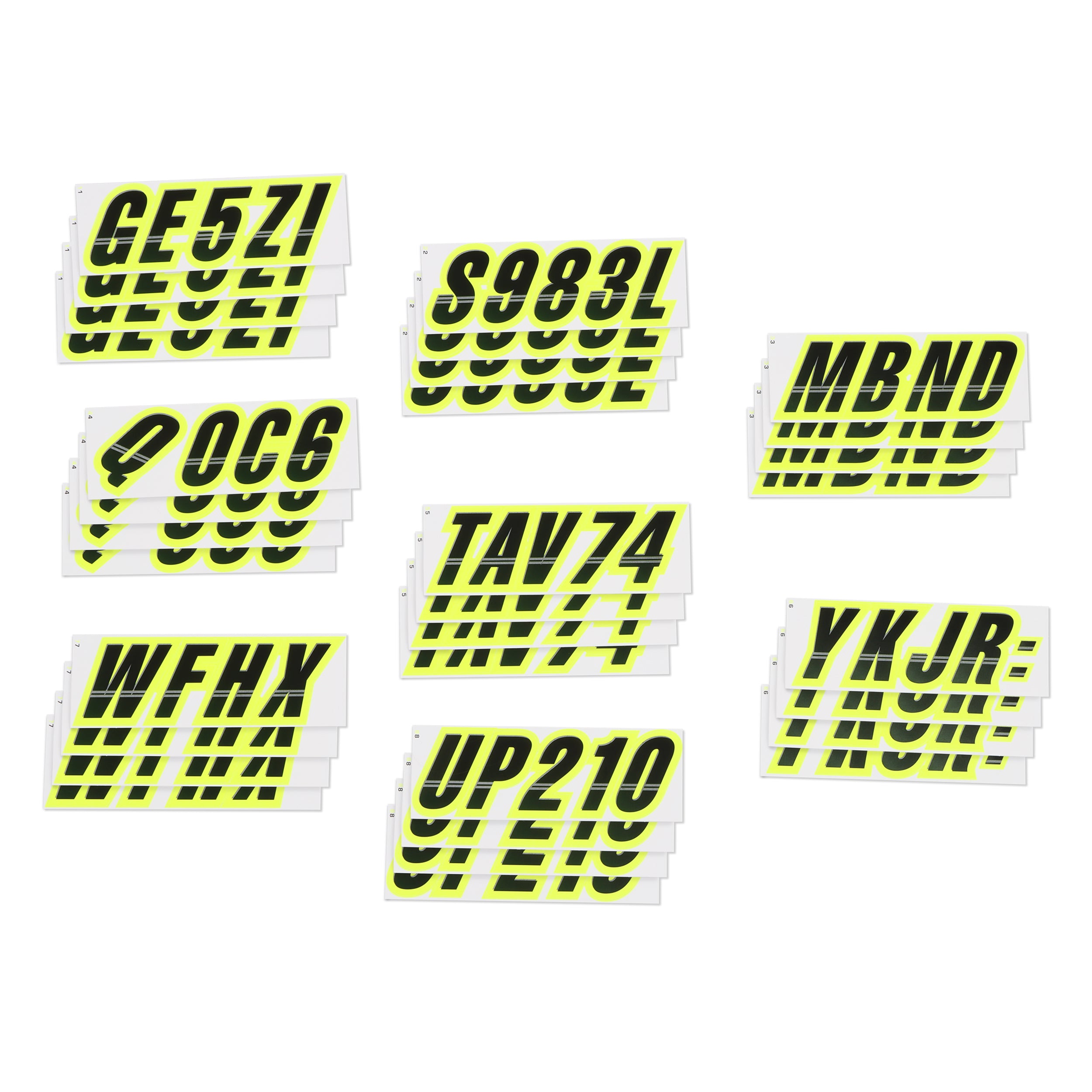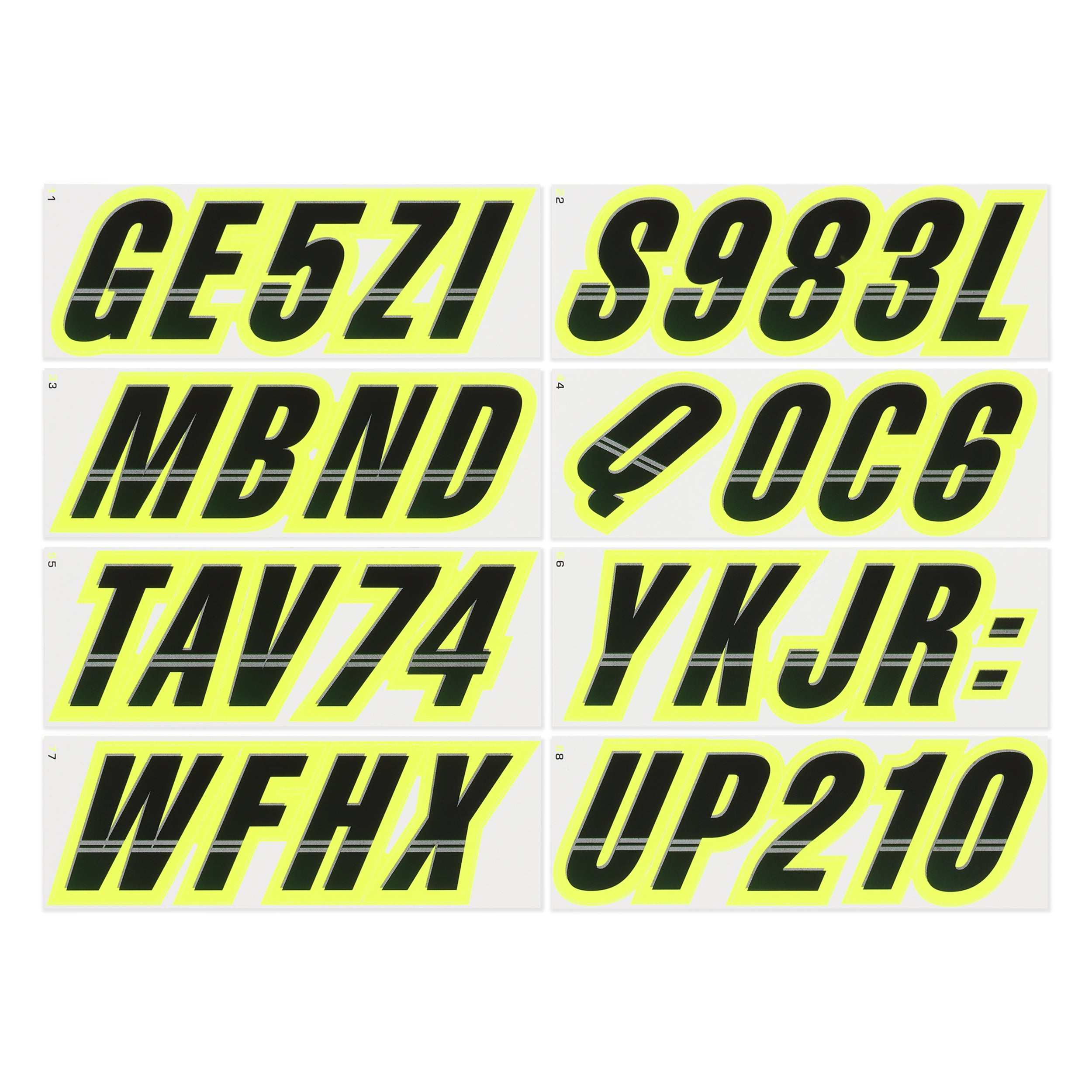 STIFFIE Techtron Black/Day Glow Yellow 3” Boat & PWC Registration Decals • Numbers Letters Stickers