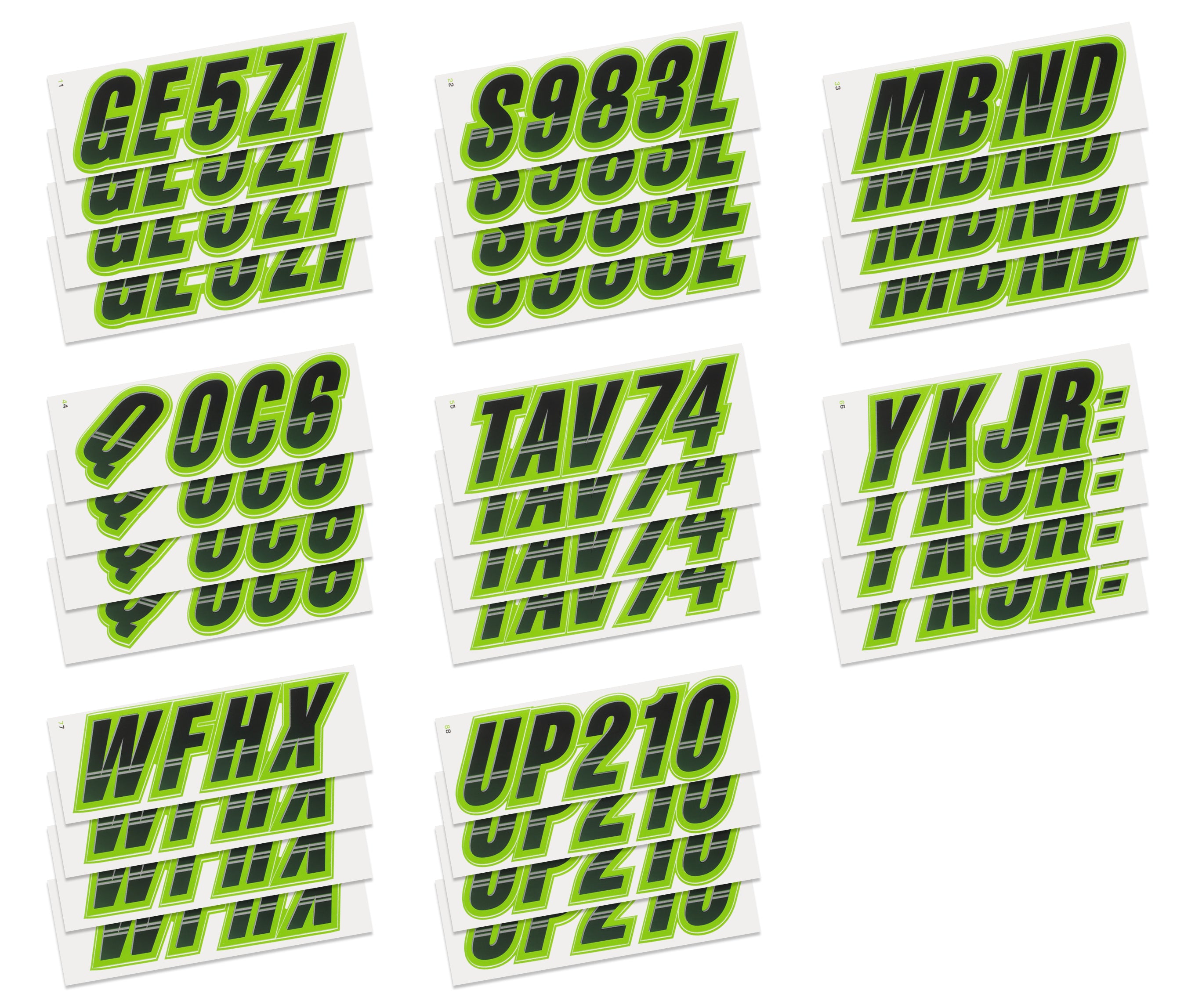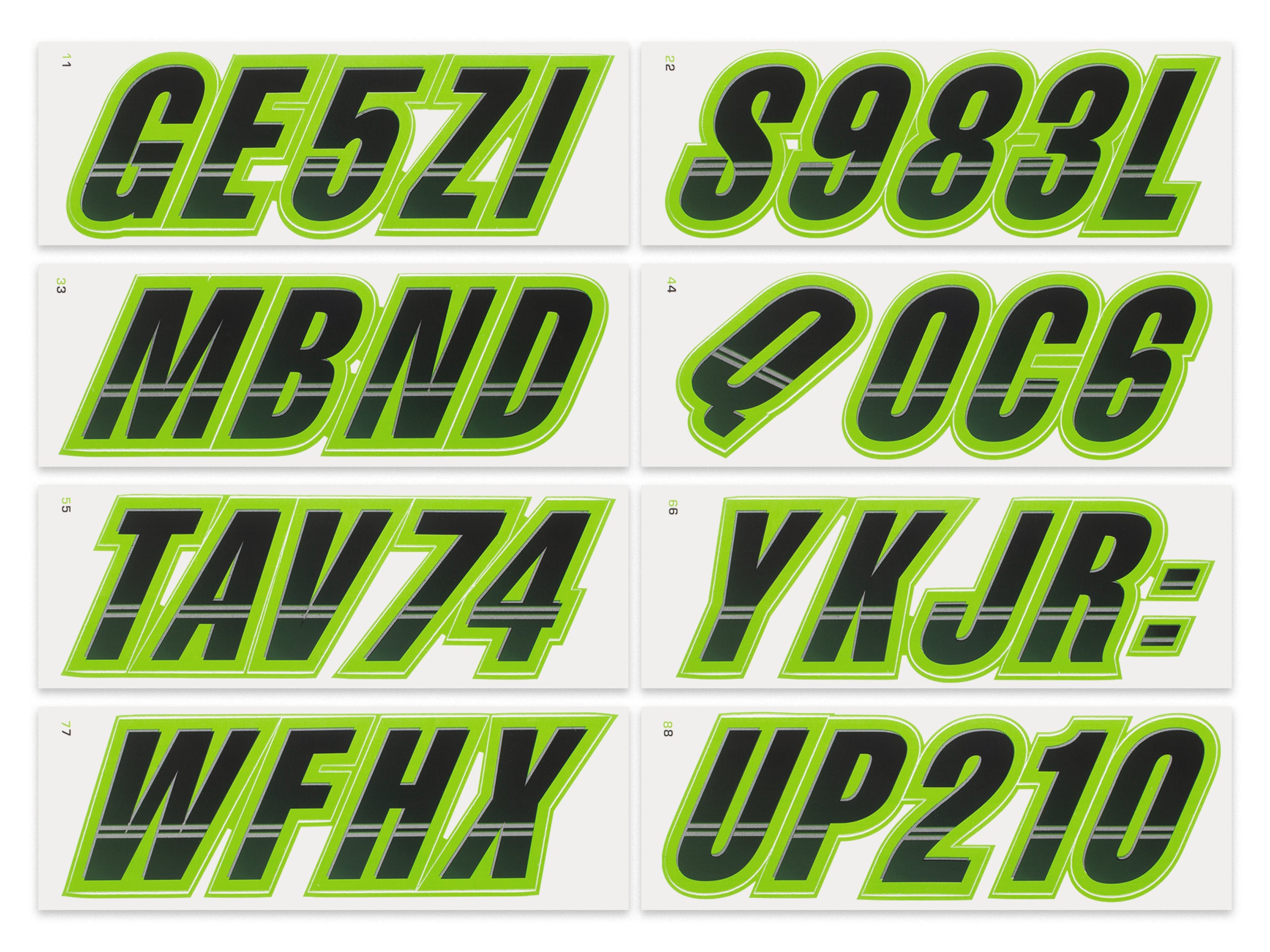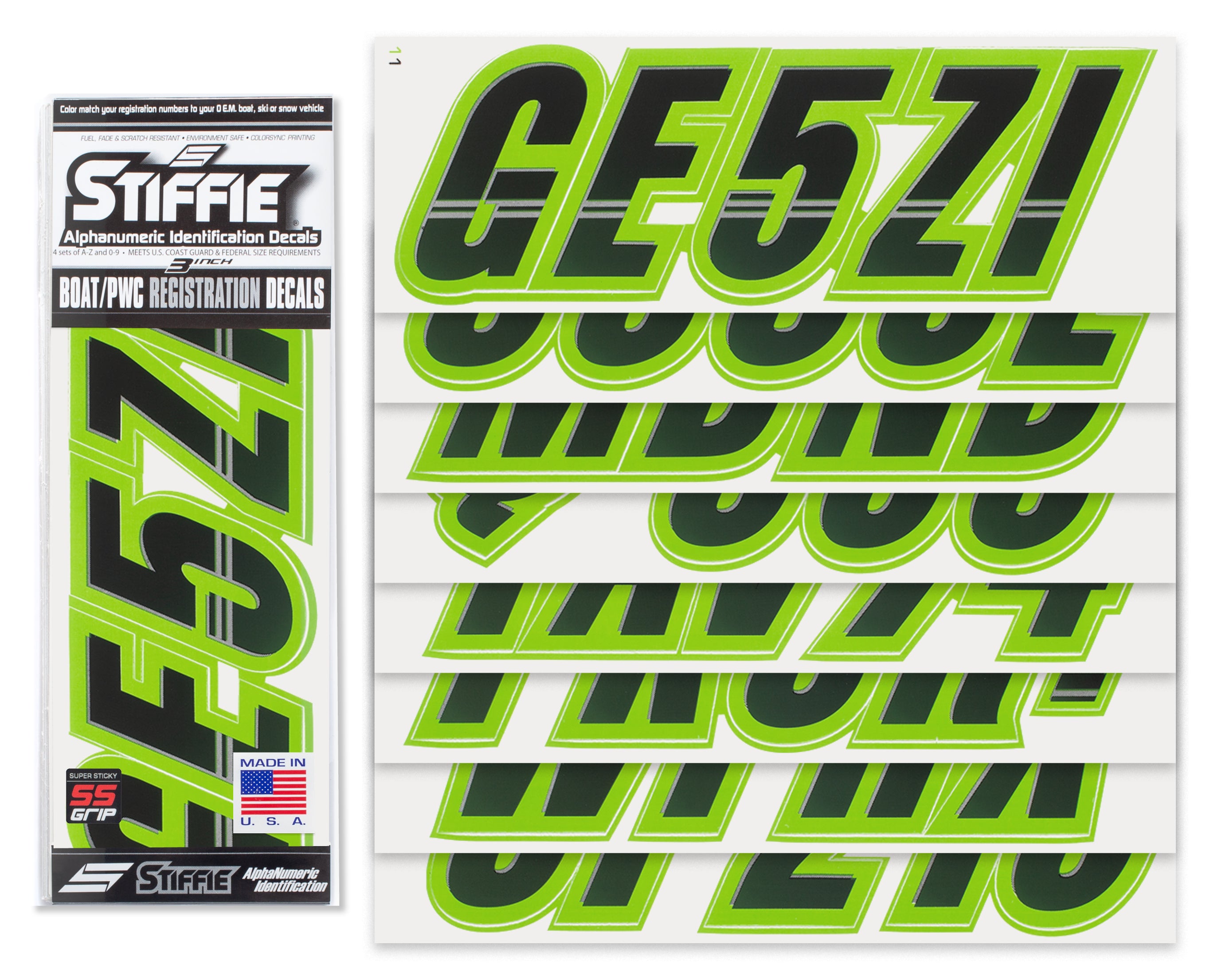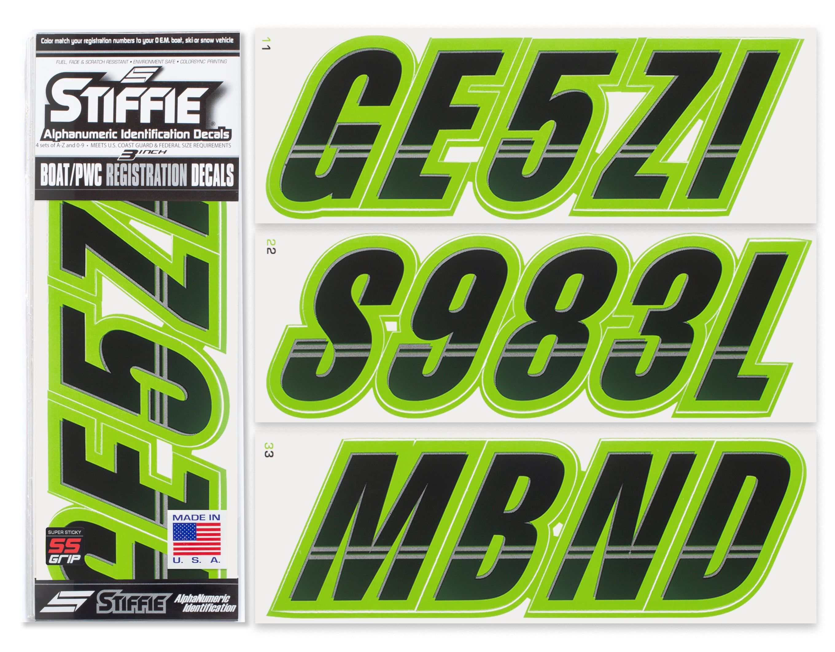 STIFFIE Techtron Black/Team Green 3” Super Sticky Boat & PWC Registration Decals • Numbers Letters Stickers