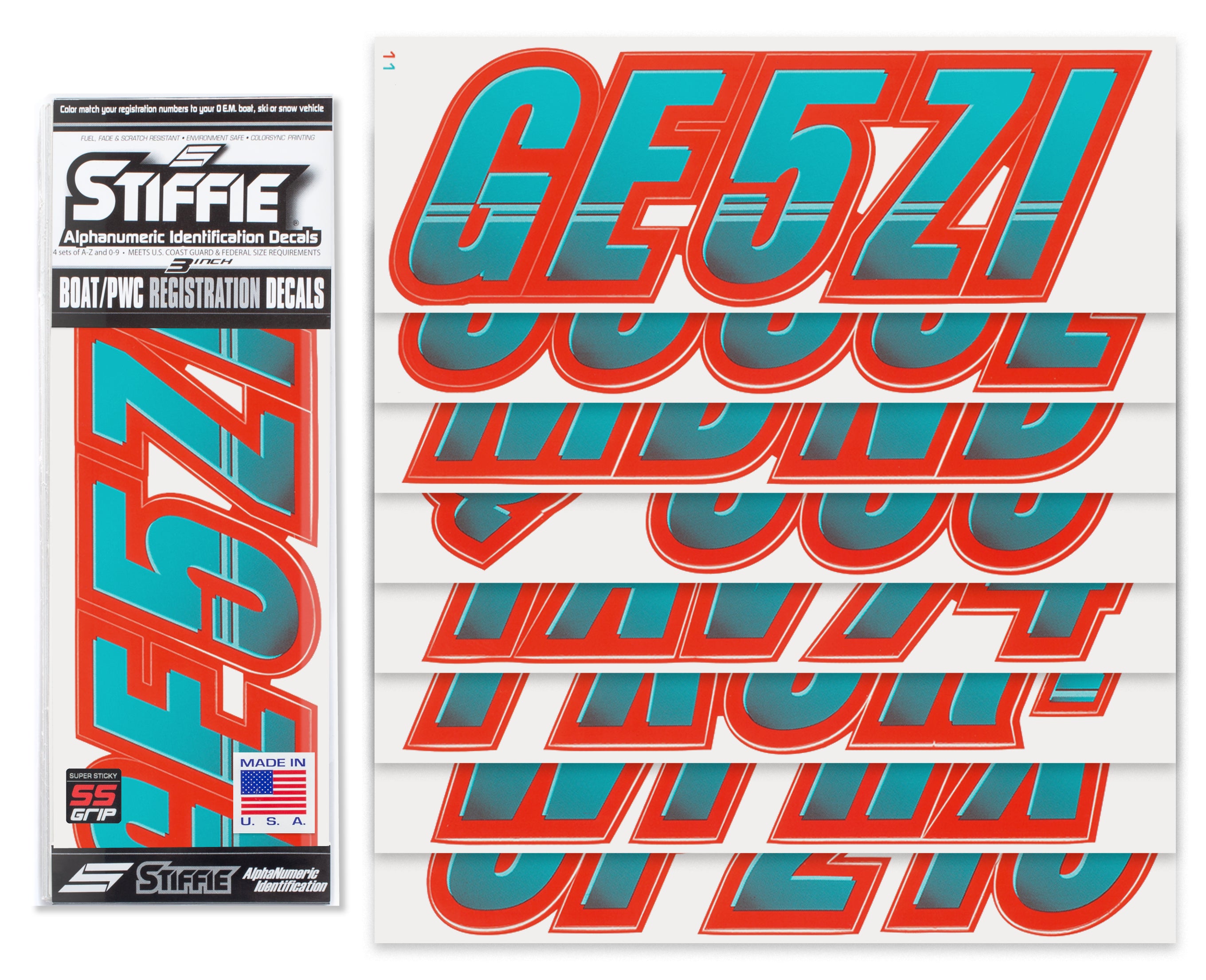 STIFFIE Techtron Candy Blue/Lava Red 3” Super Sticky Boat & PWC Registration Decals • Numbers Letters Stickers