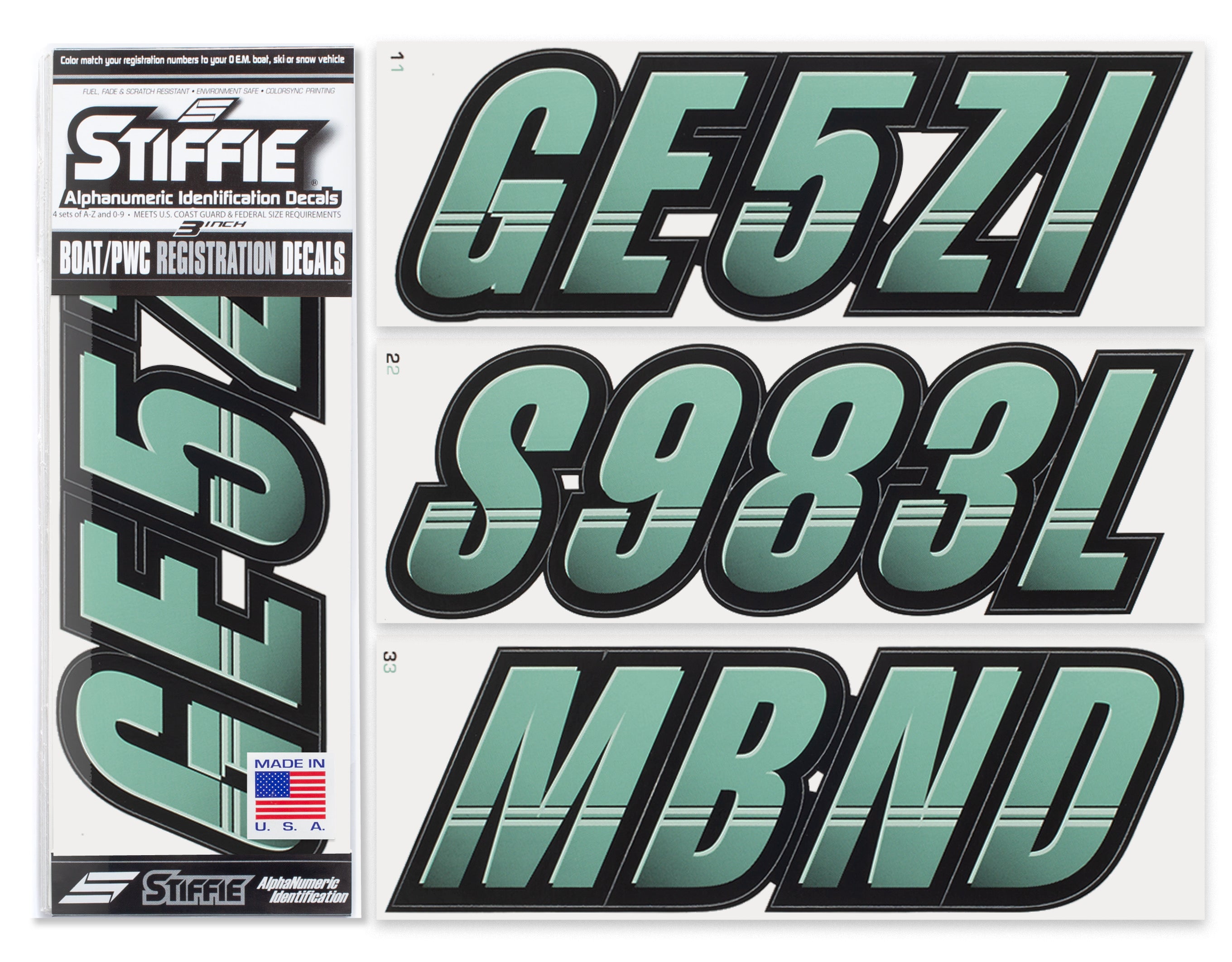 STIFFIE Alphanumeric ID kits are marine registration stickers for all water vessels, boats, personal watercraft. Our decals can also be used for DOT identifier number placement (Department of Transportation), snowmobile registration, or any application that requires the permanent identification or marking of name or number. Our decals are offered in styles and color ways that match your vessels original equipment manufacturer (OEM) color and design scheme.