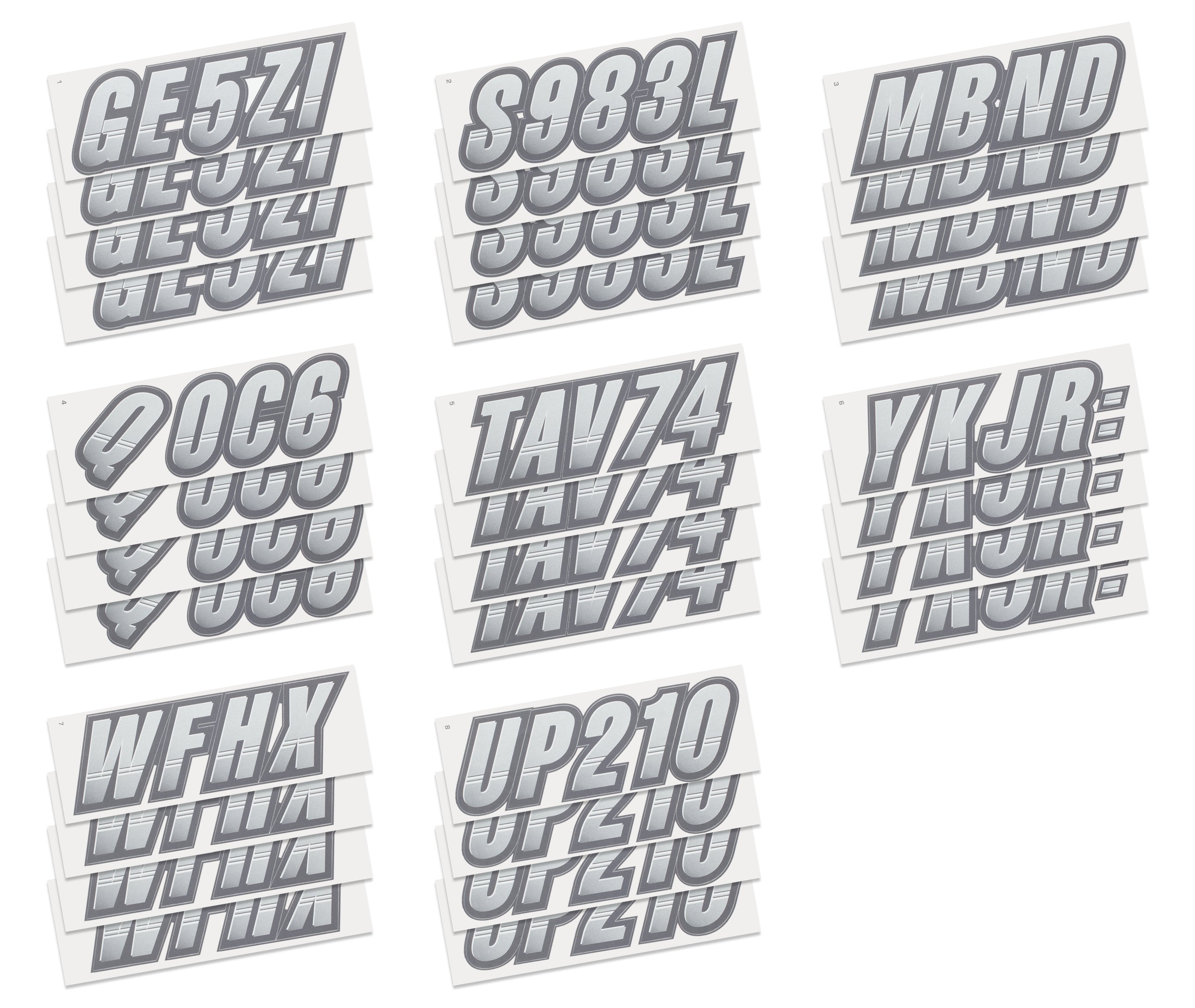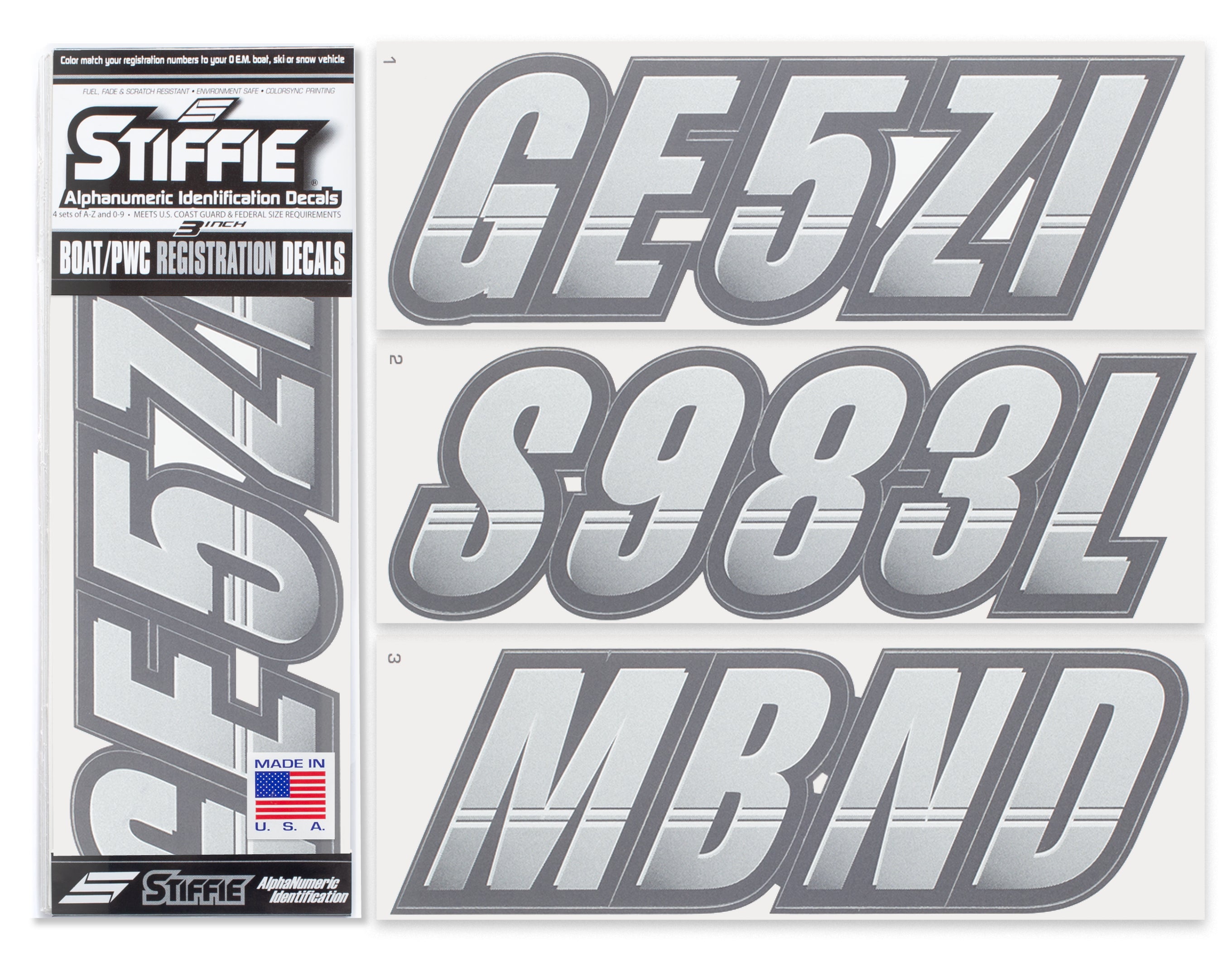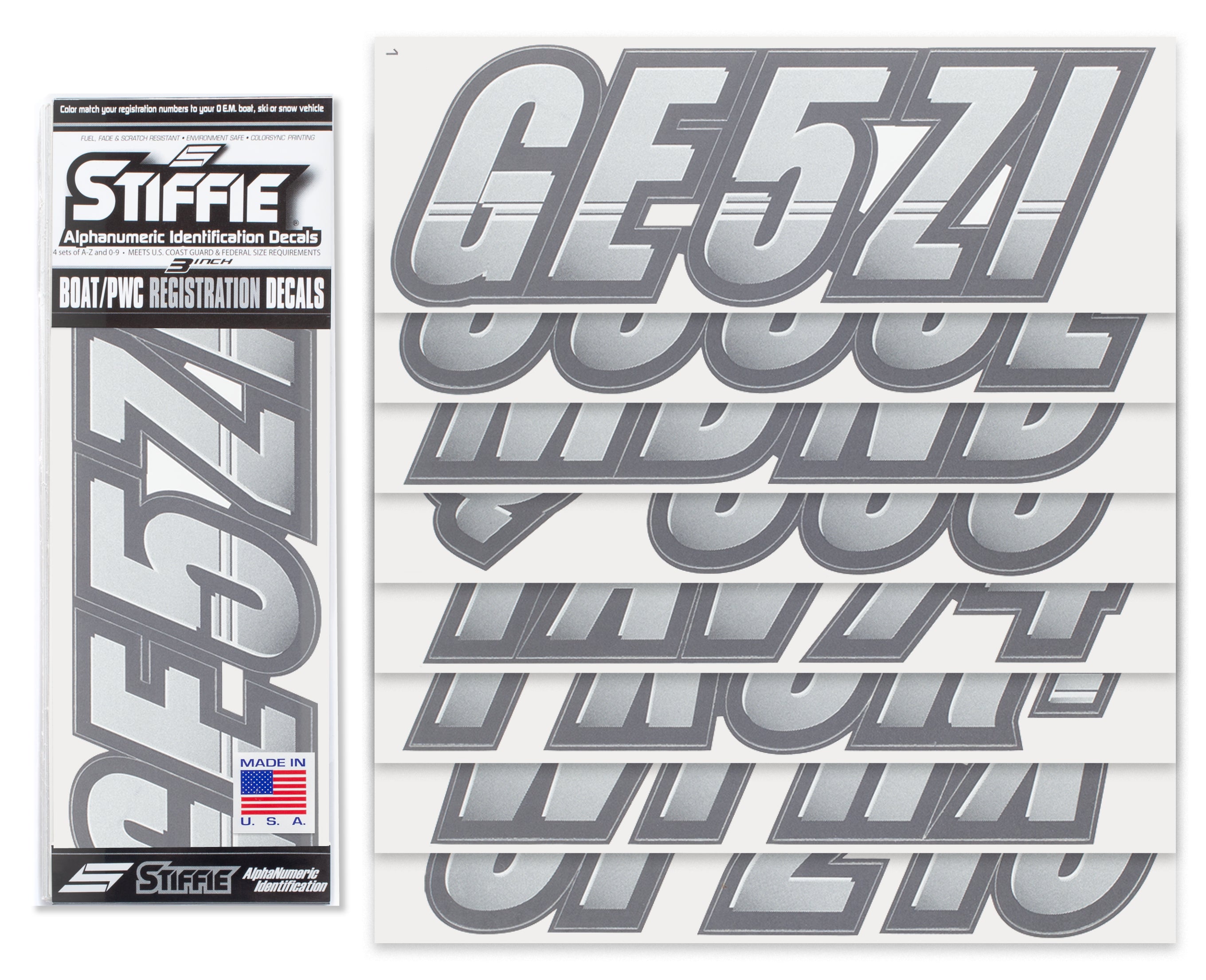 STIFFIE Techtron Metallic Silver/Carbon 3” Boat & PWC Registration Decals • Numbers Letters Stickers