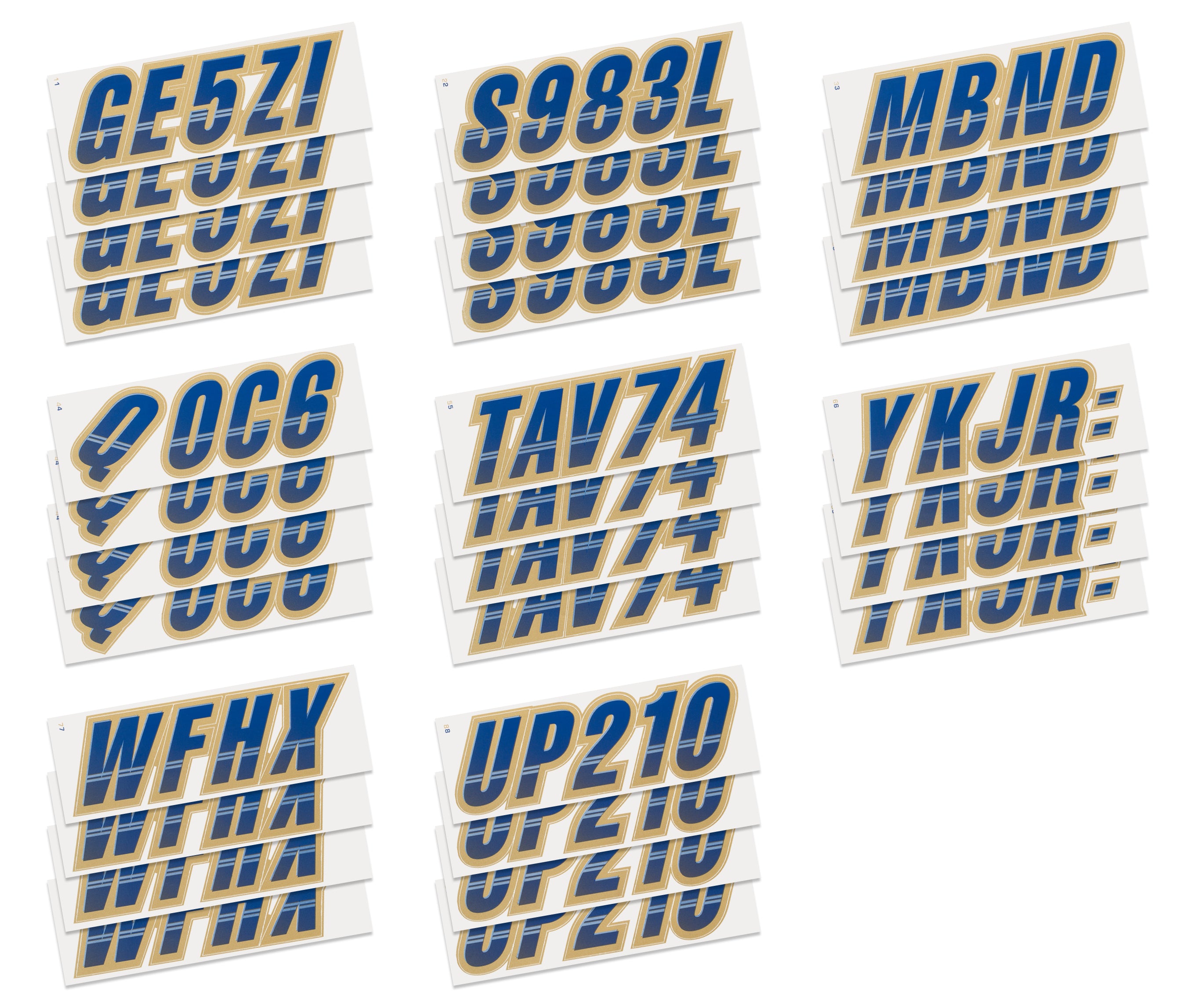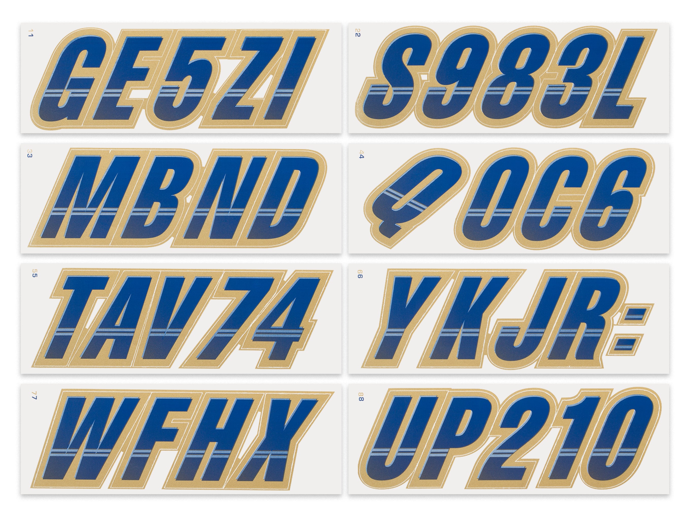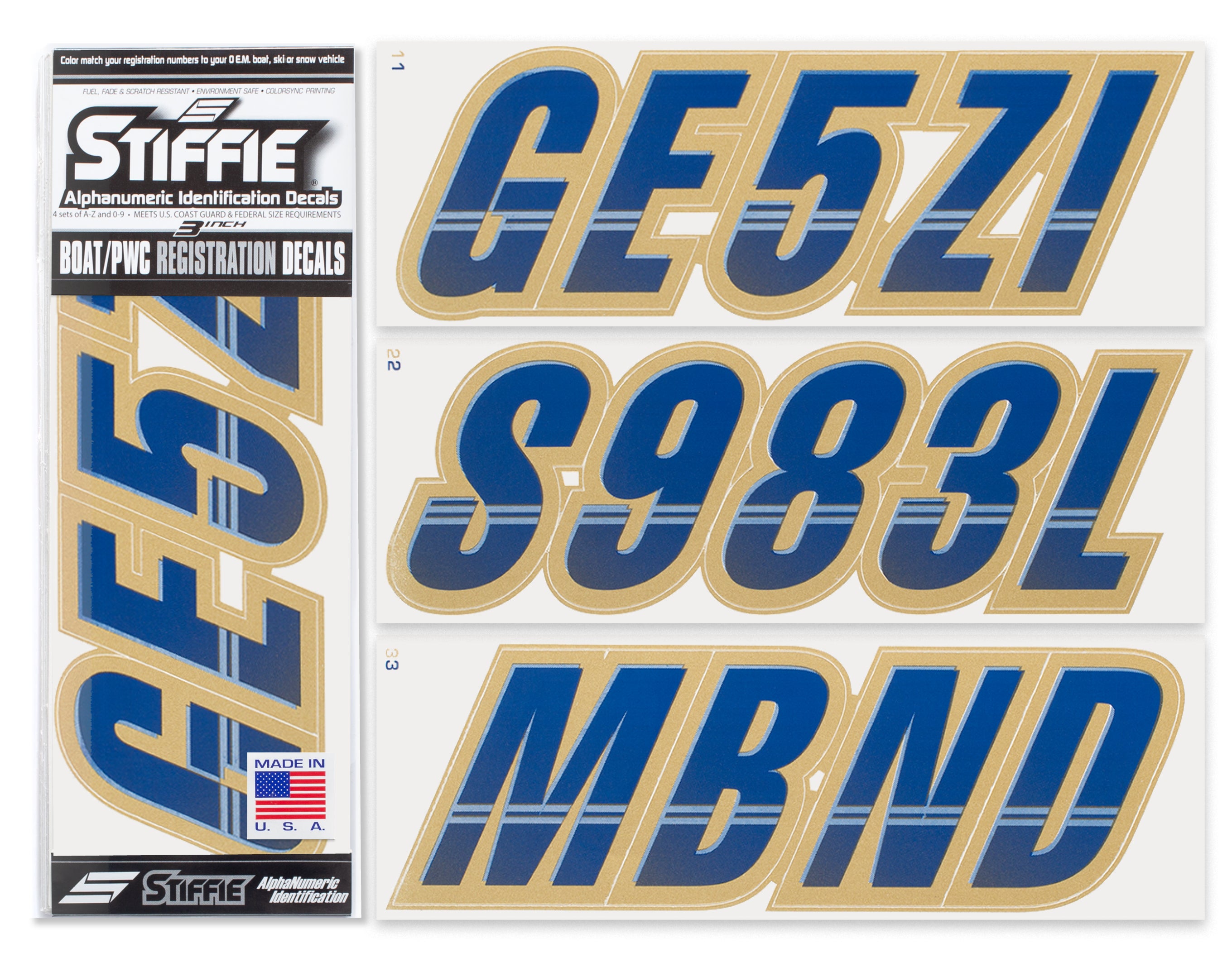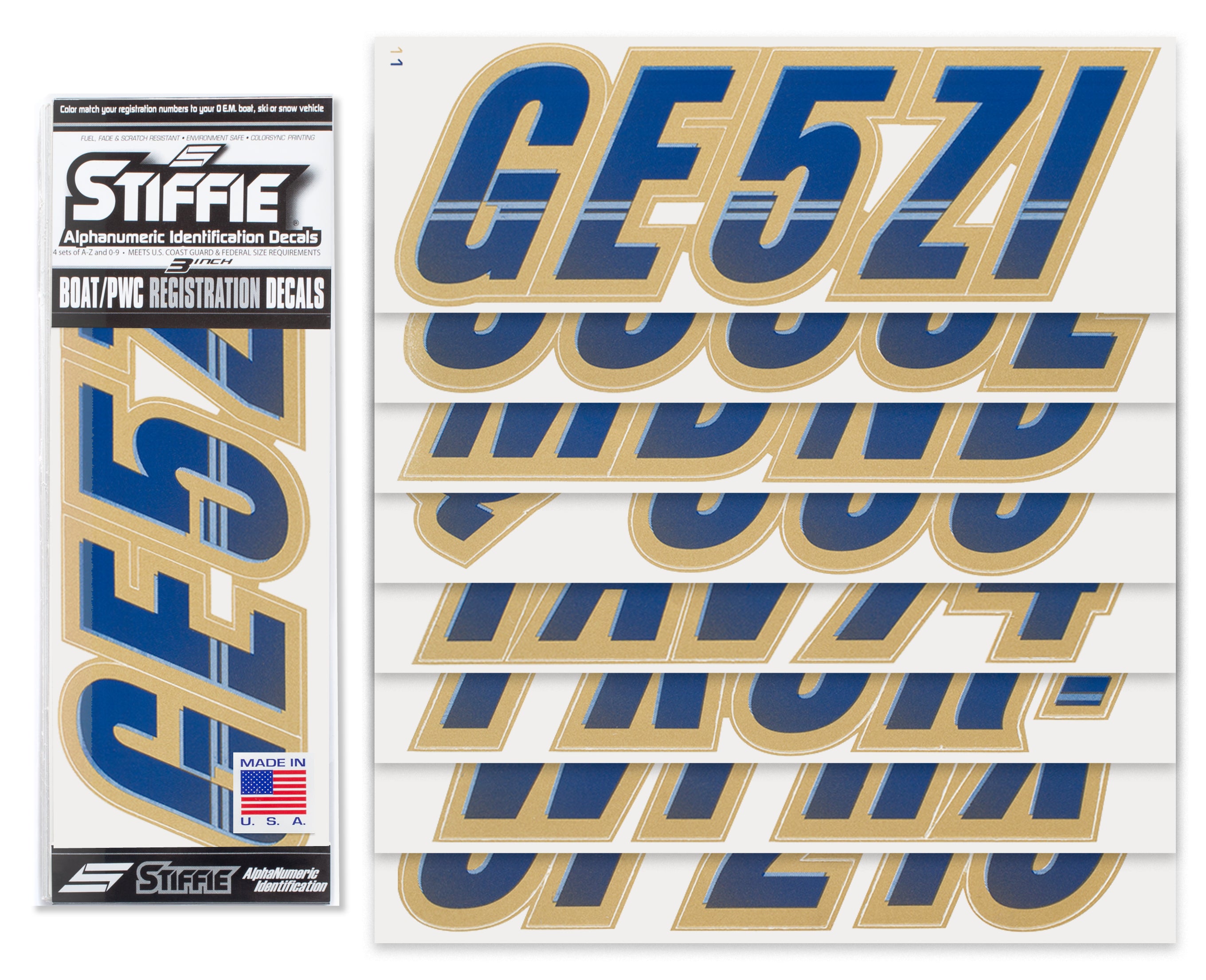 STIFFIE Techtron Navy/Metallic Gold 3” Boat & PWC Registration Decals • Numbers Letters Stickers
