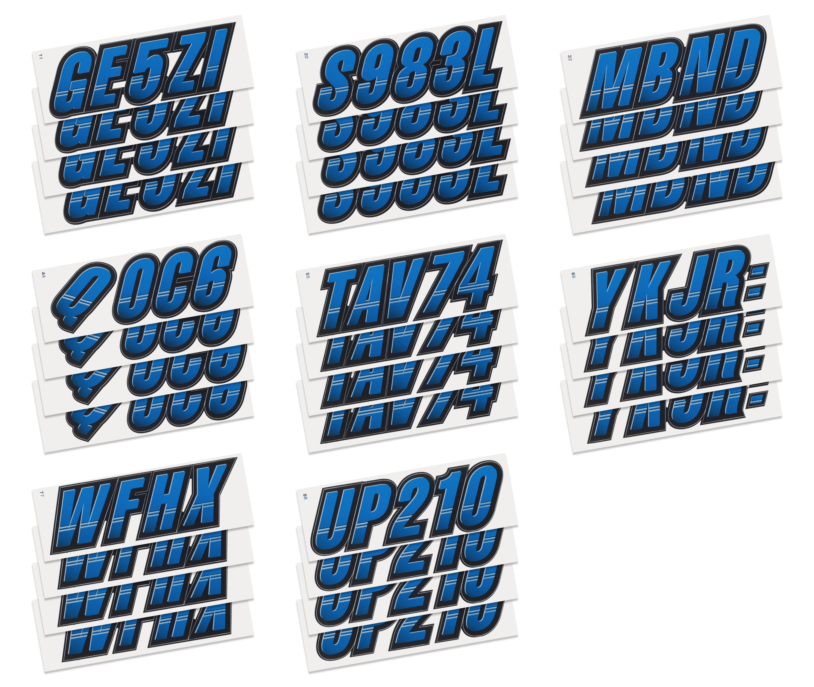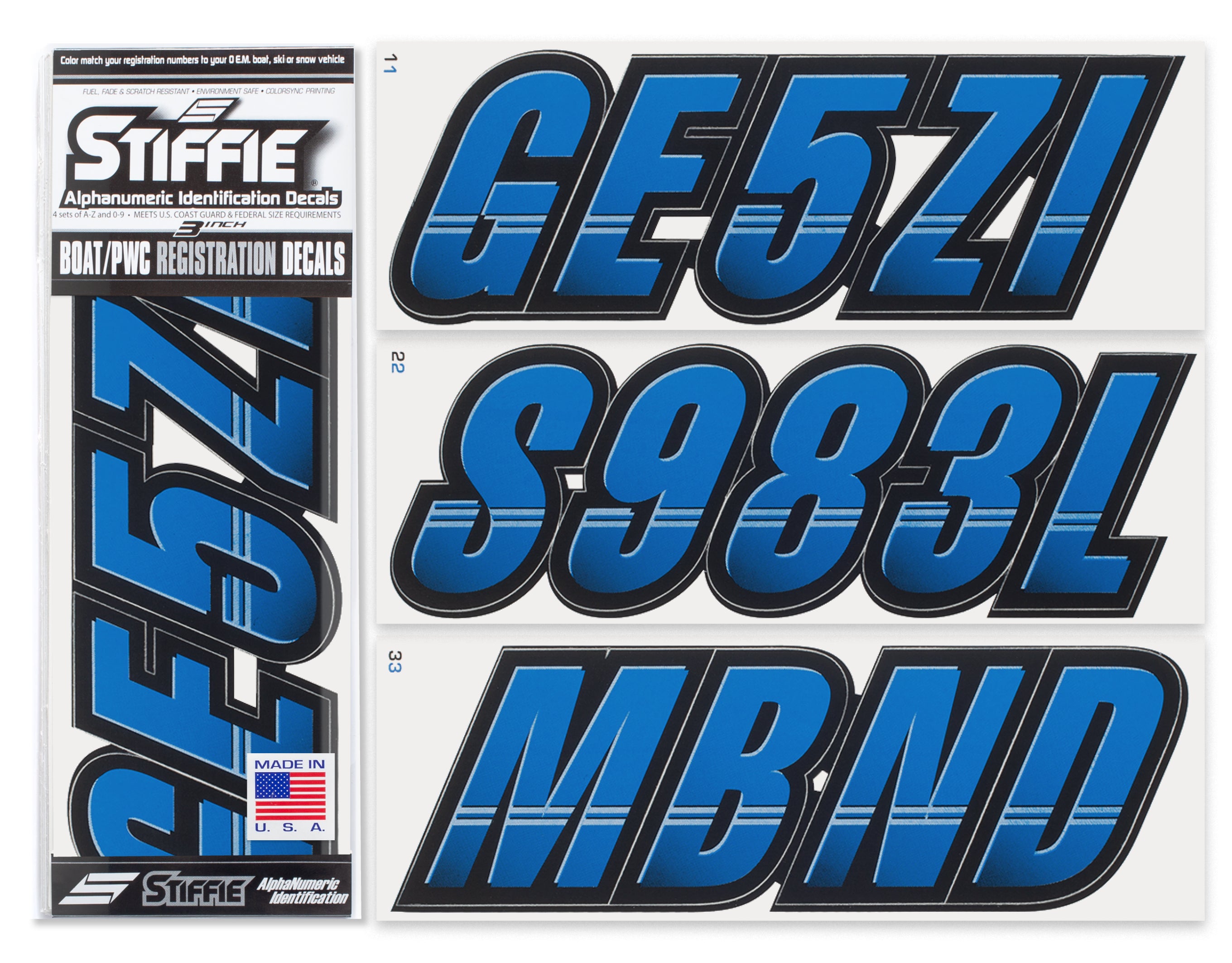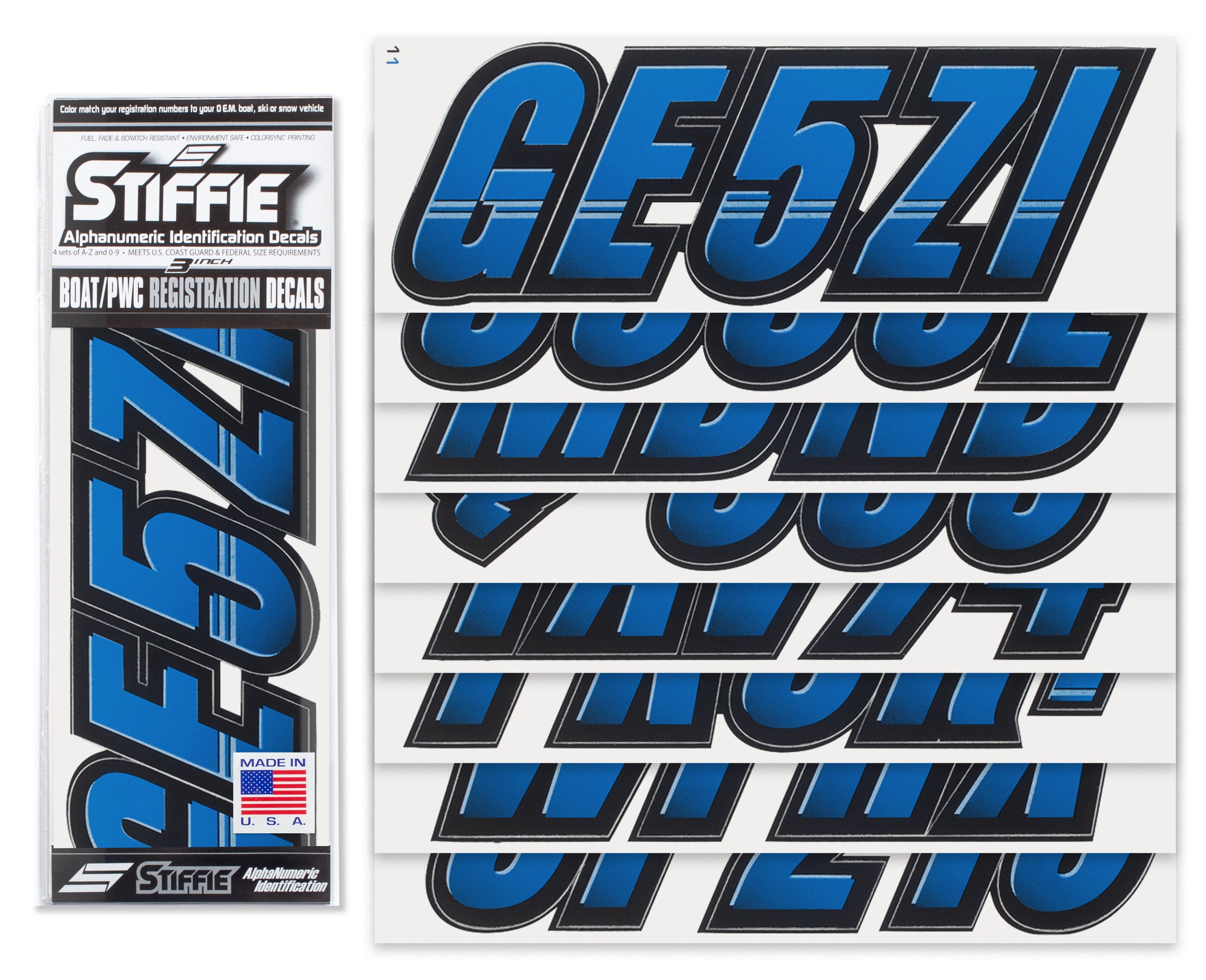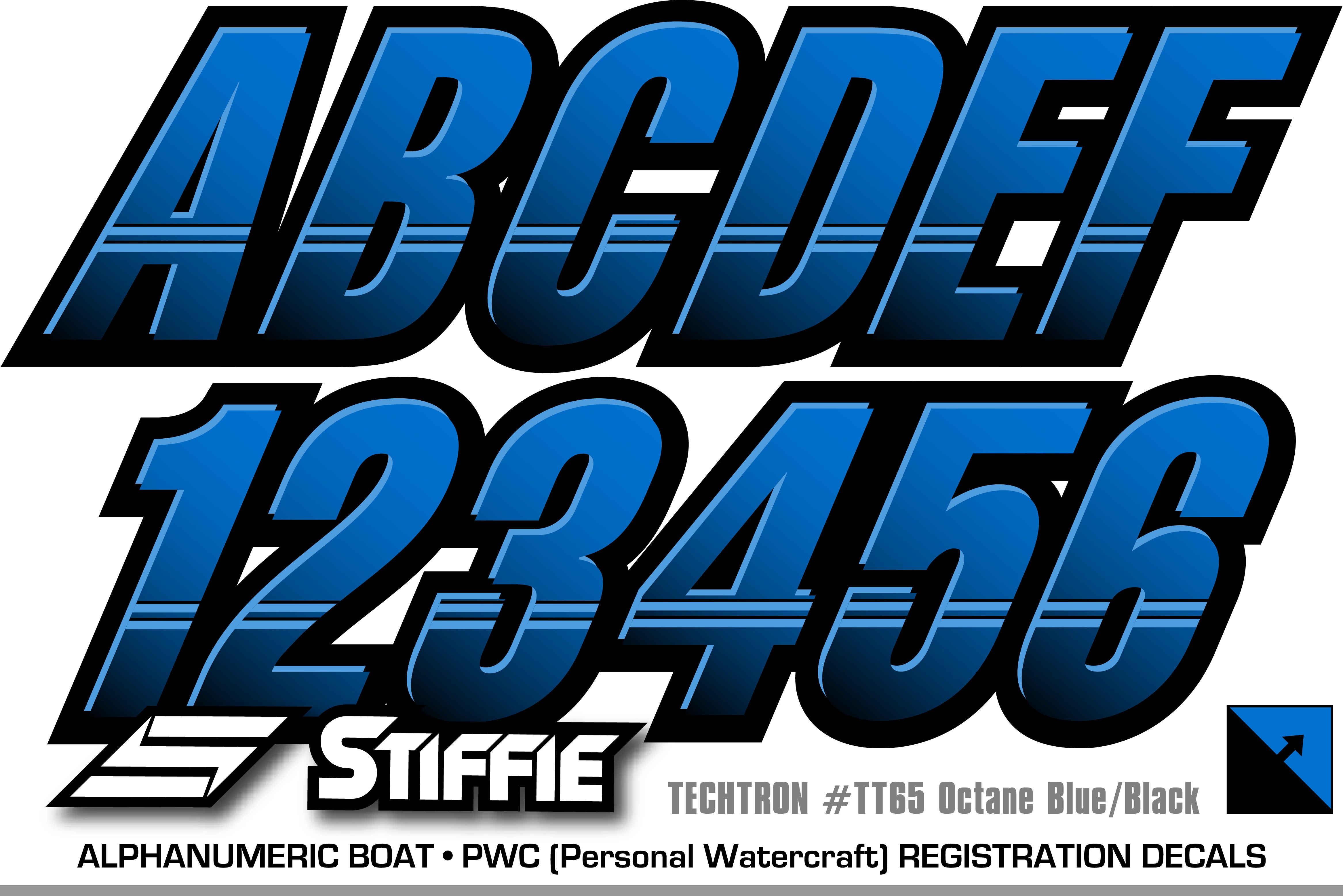 STIFFIE Techtron Octane Blue/Black 3” Boat & PWC Registration Decals • Numbers Letters Stickers