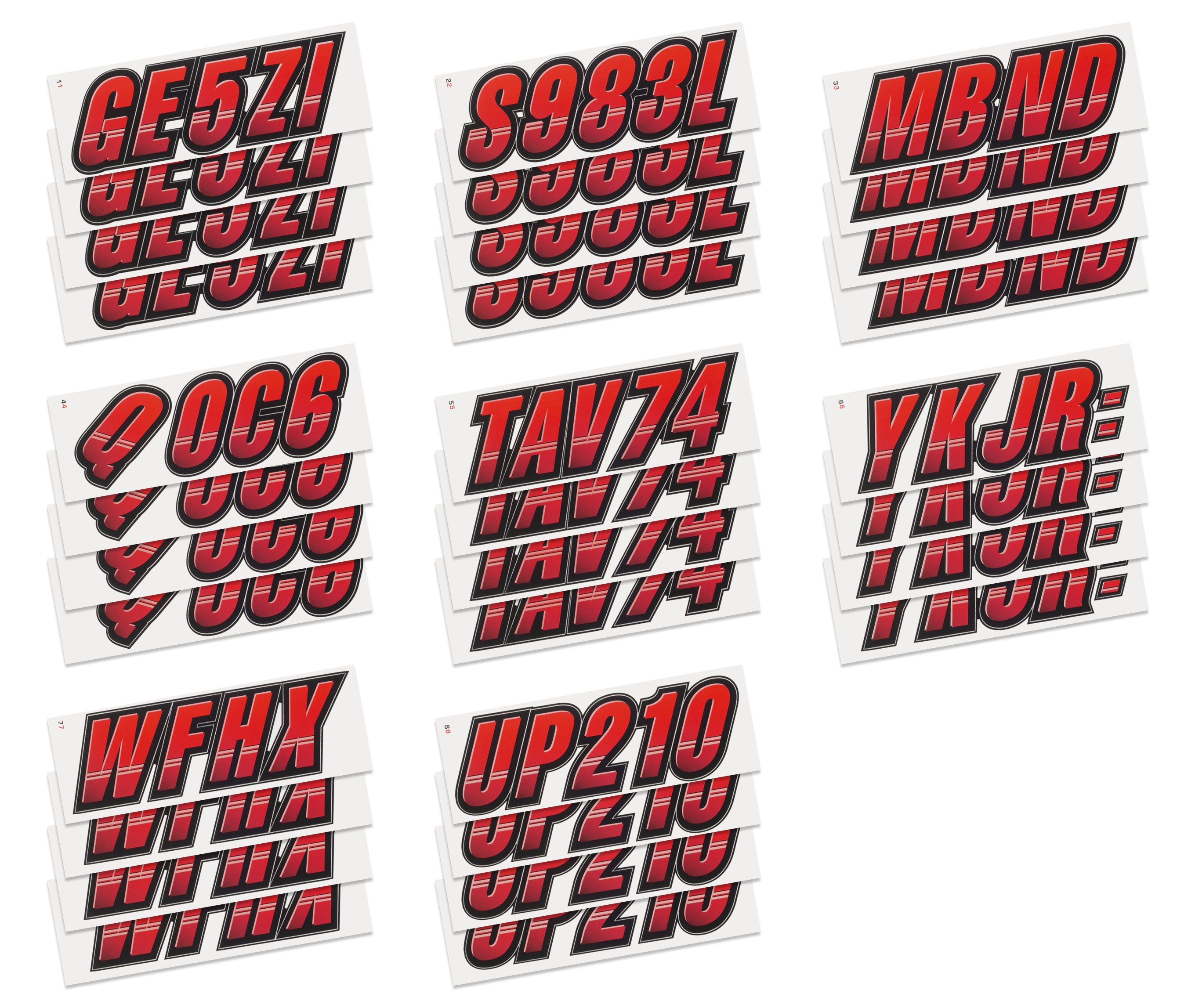 STIFFIE Techtron Lava Red/Black 3” Boat & PWC Registration Decals • Numbers Letters Stickers