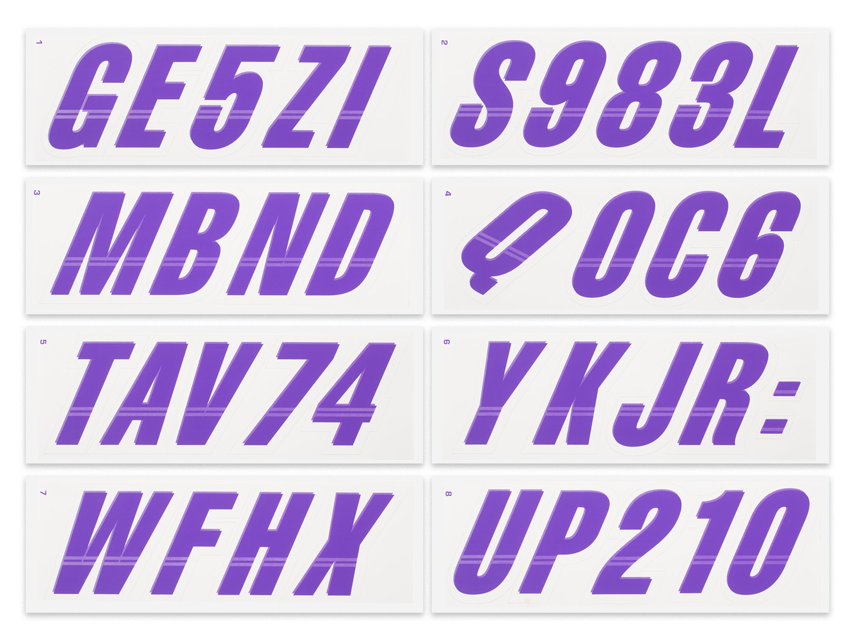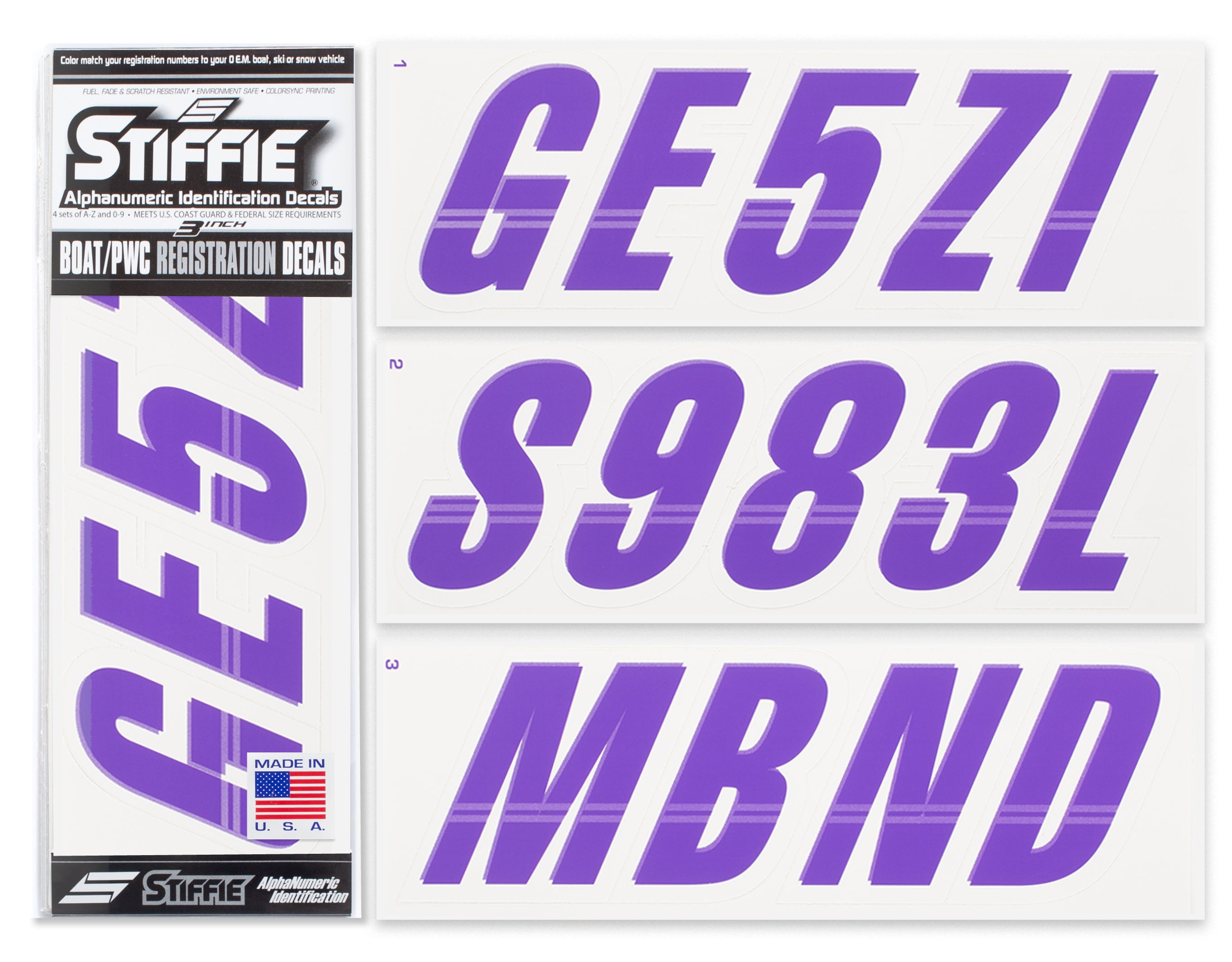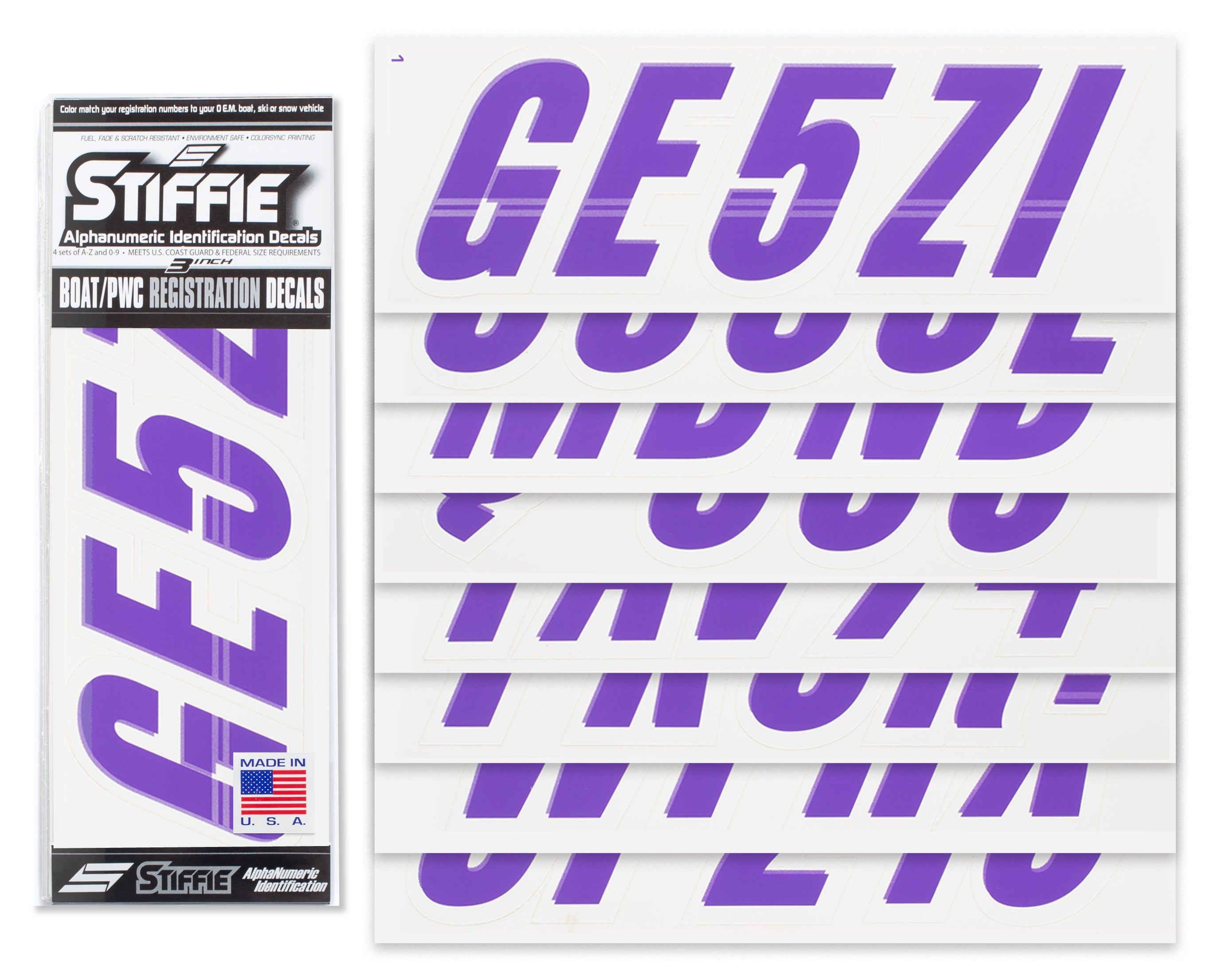 STIFFIE Techtron Purple/White 3” Boat & PWC Registration Decals • Numbers Letters Stickers