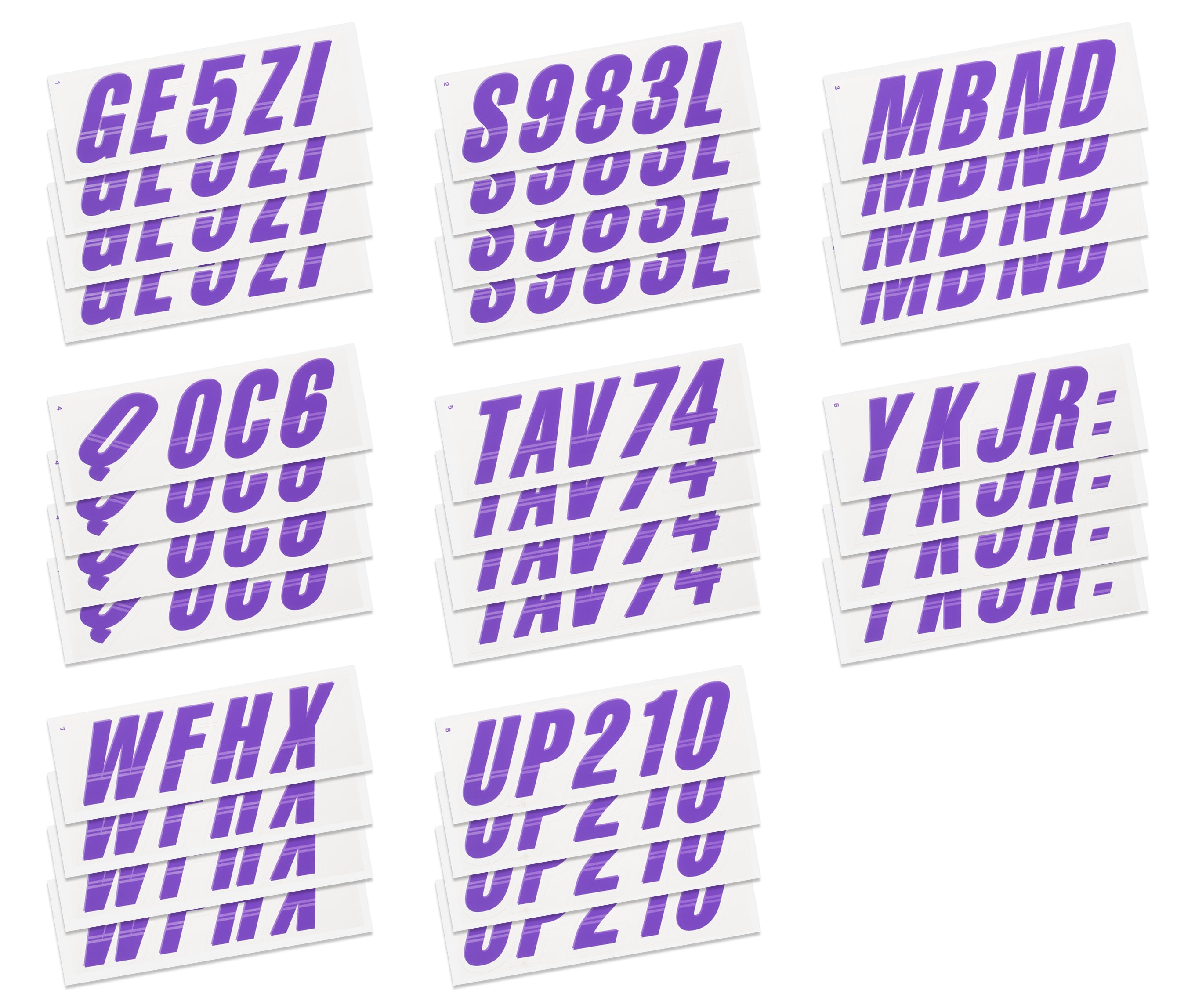 All Alphanumeric ID Kits offered by STIFFIE come with characters that are 3" in height and meet or exceed US Coast Guard Regulations. Every ID kit comes with 4 sets of 0-9 and A-Z decals (146 total decals). STIFFIE Alphanumeric registration decals are resistant to chemical deterioration, fading, curling, tearing and scratching. STIFFIE decals are also UV Coated for protection from harmful ultra-violet (UV) rays.