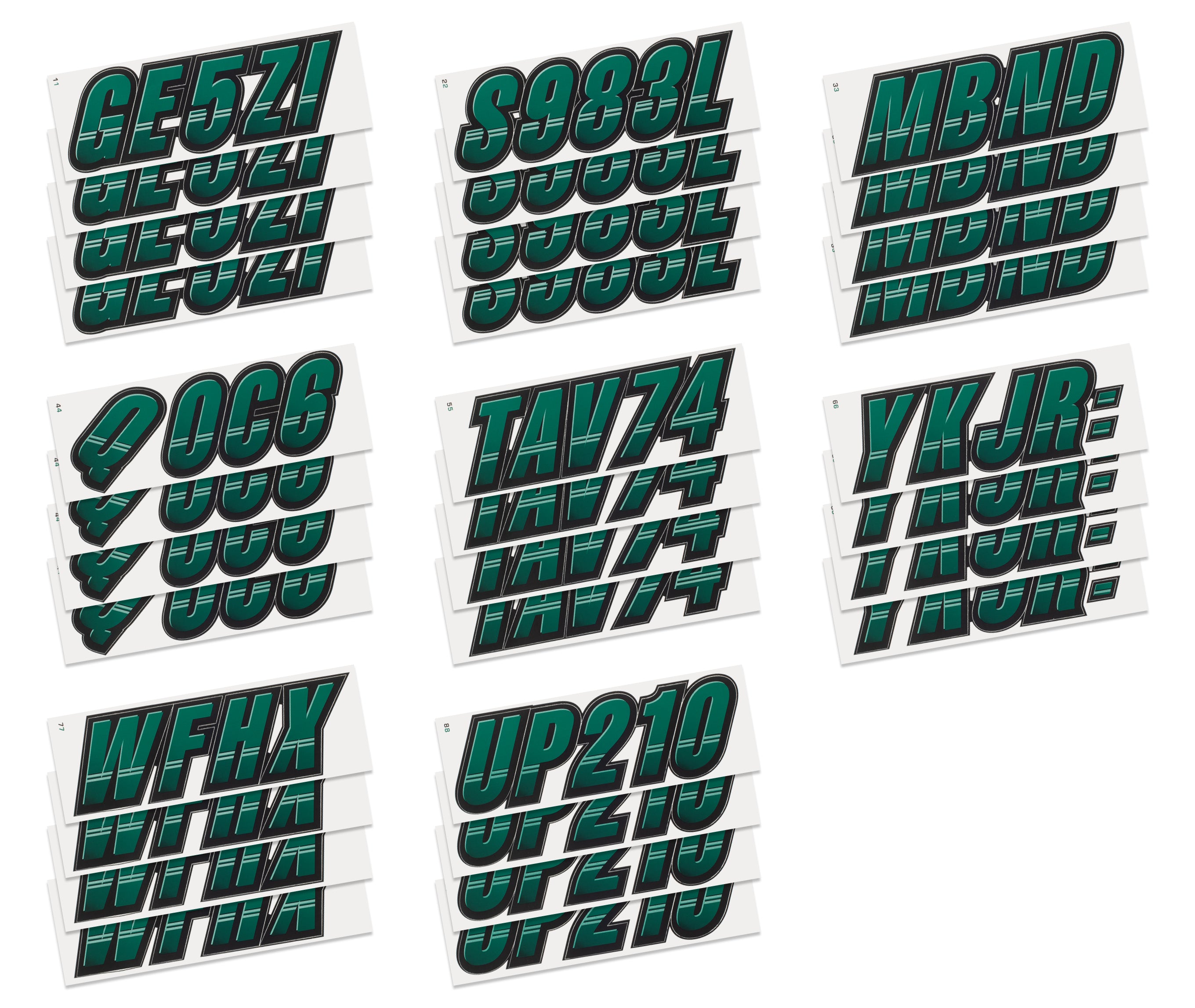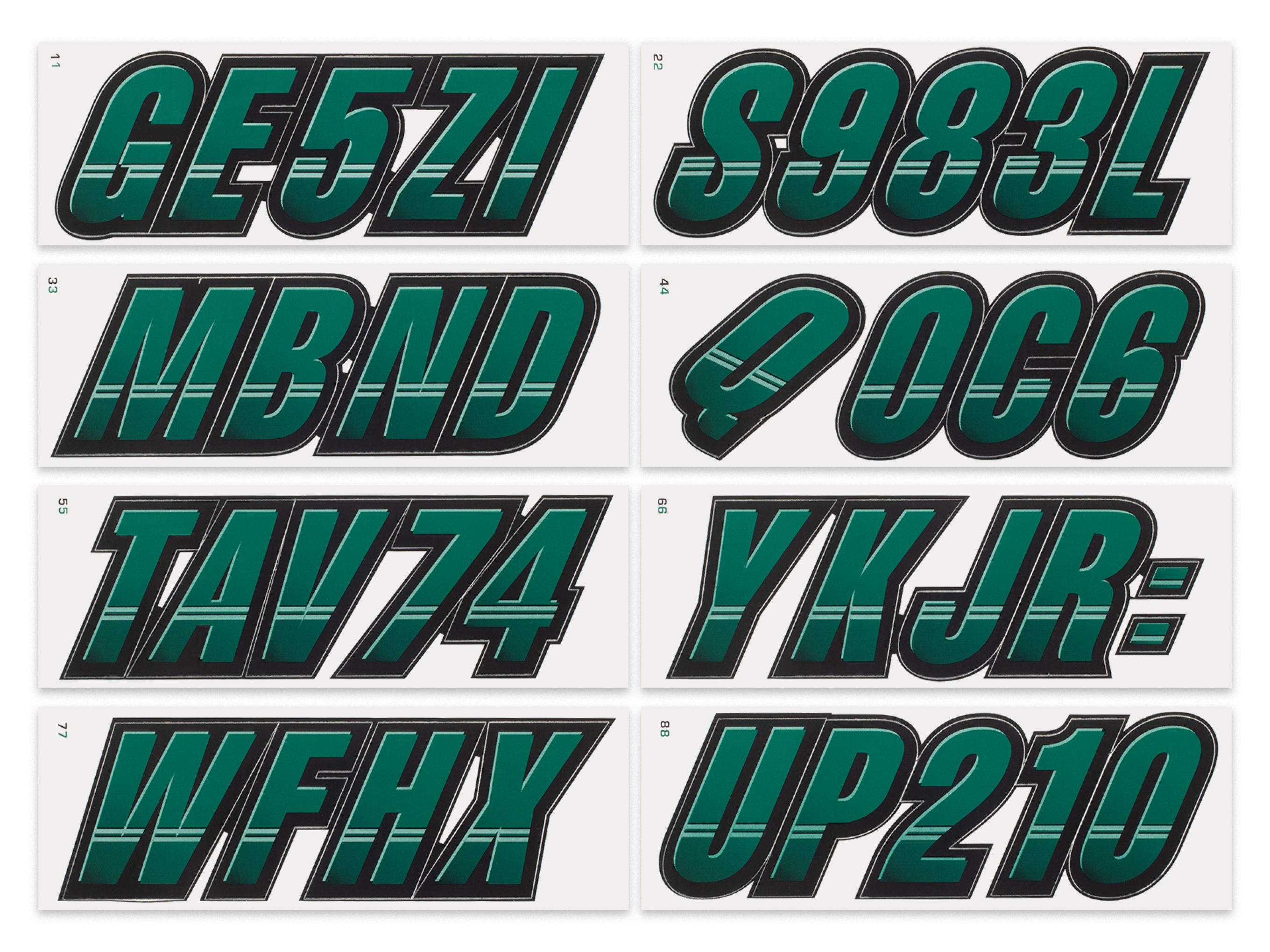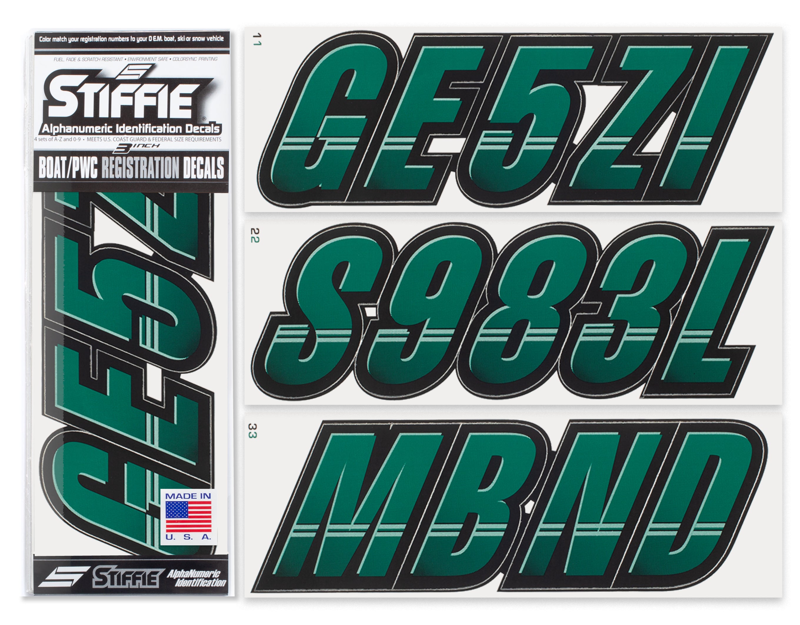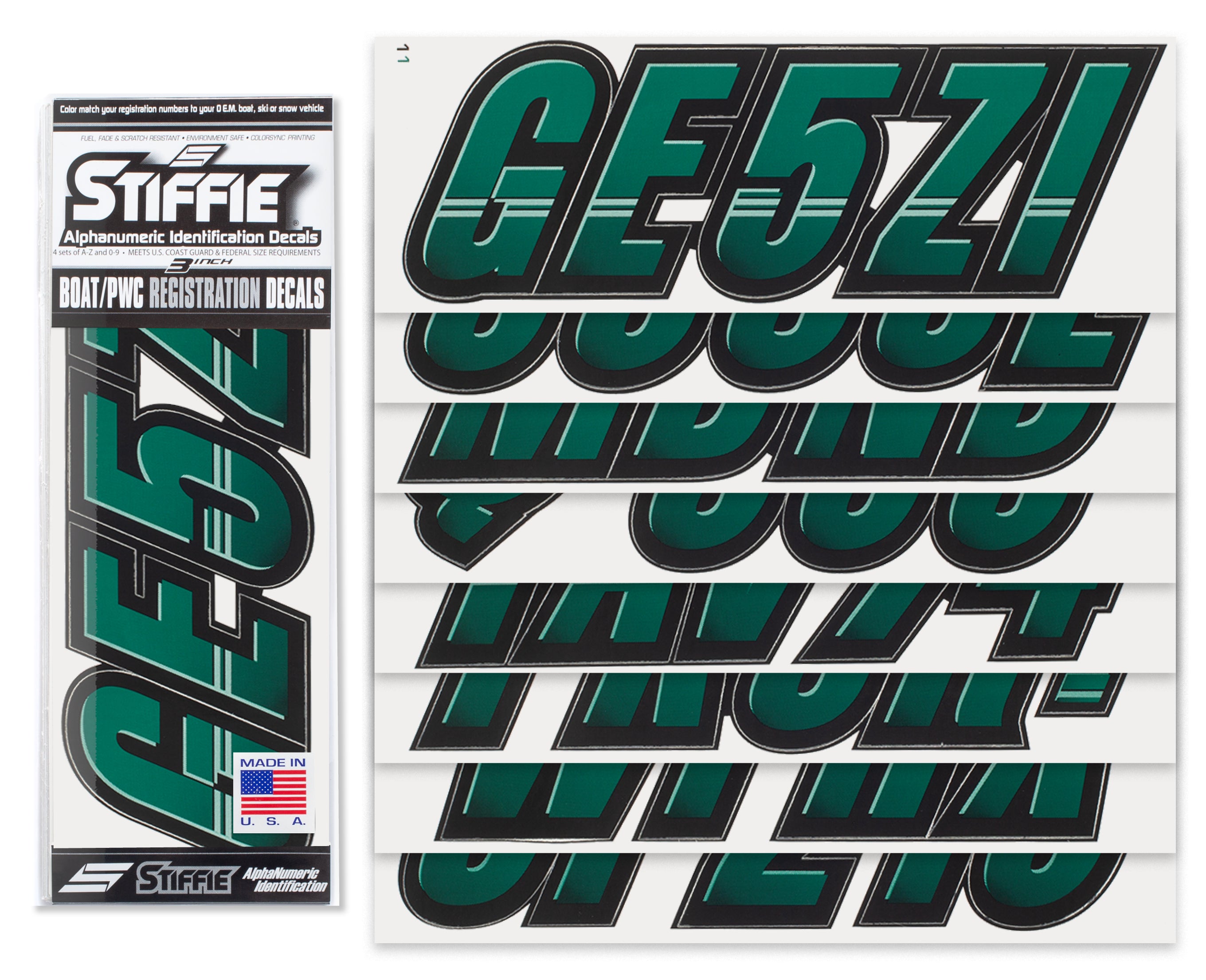 STIFFIE Techtron Racing Green/Black 3” Boat & PWC Registration Decals • Numbers Letters Stickers