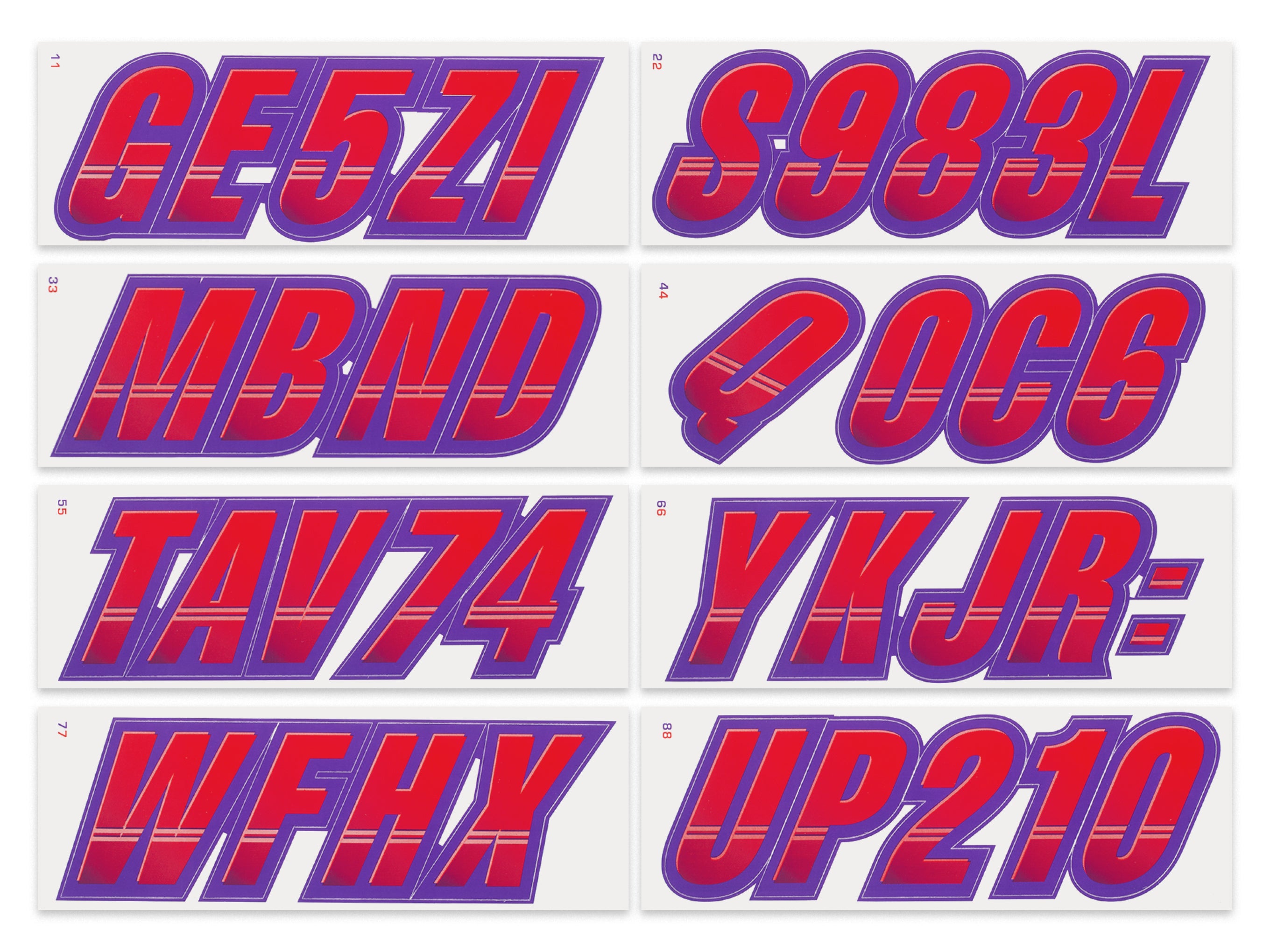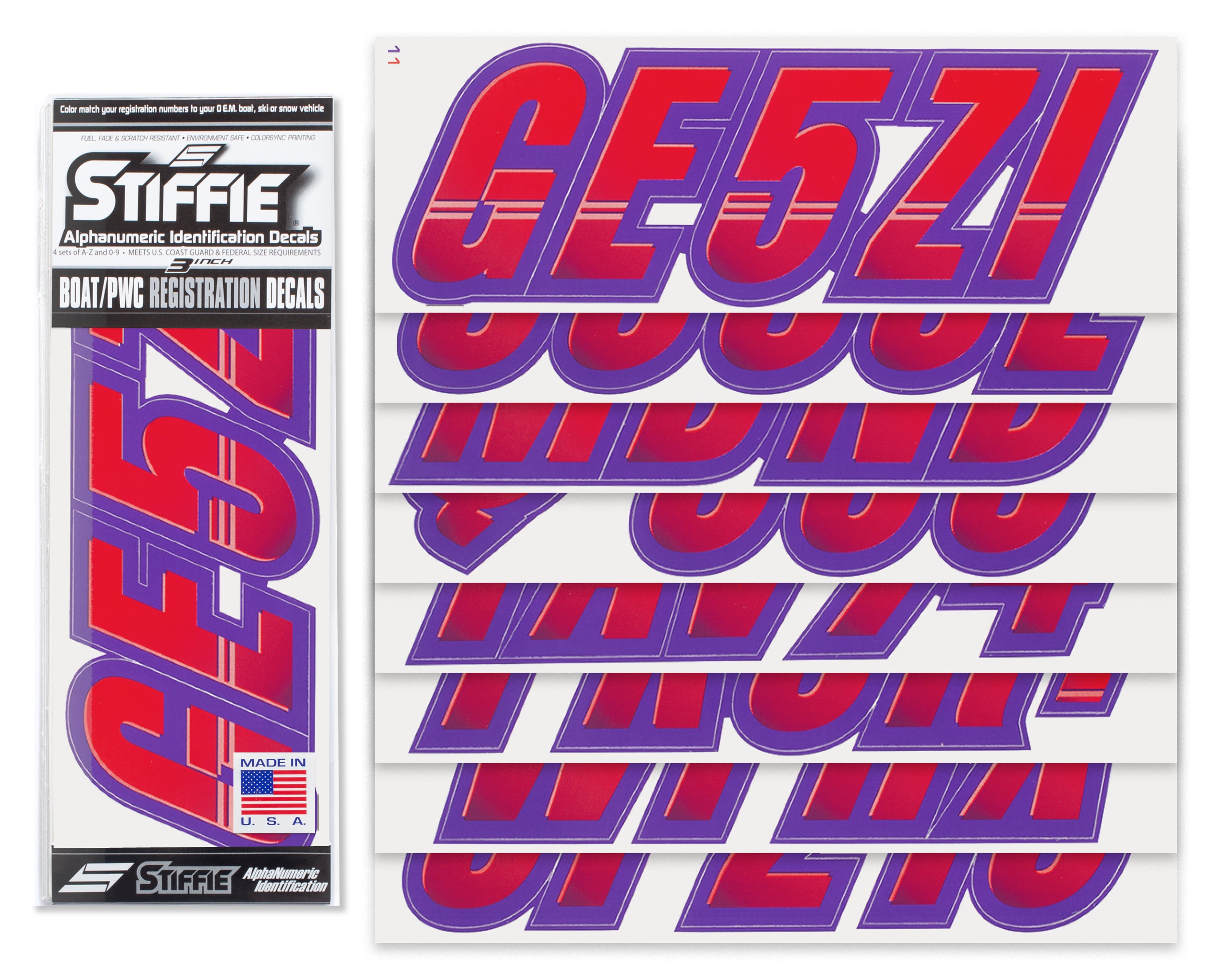 STIFFIE Techtron Red/Purple 3” Boat & PWC Registration Decals • Numbers Letters Stickers
