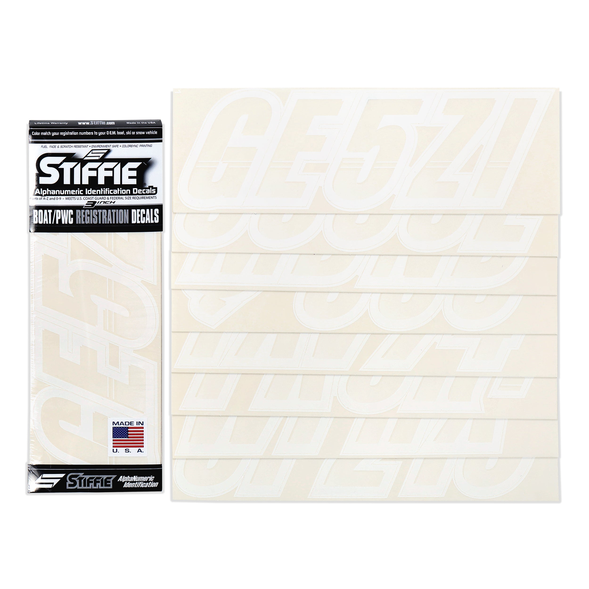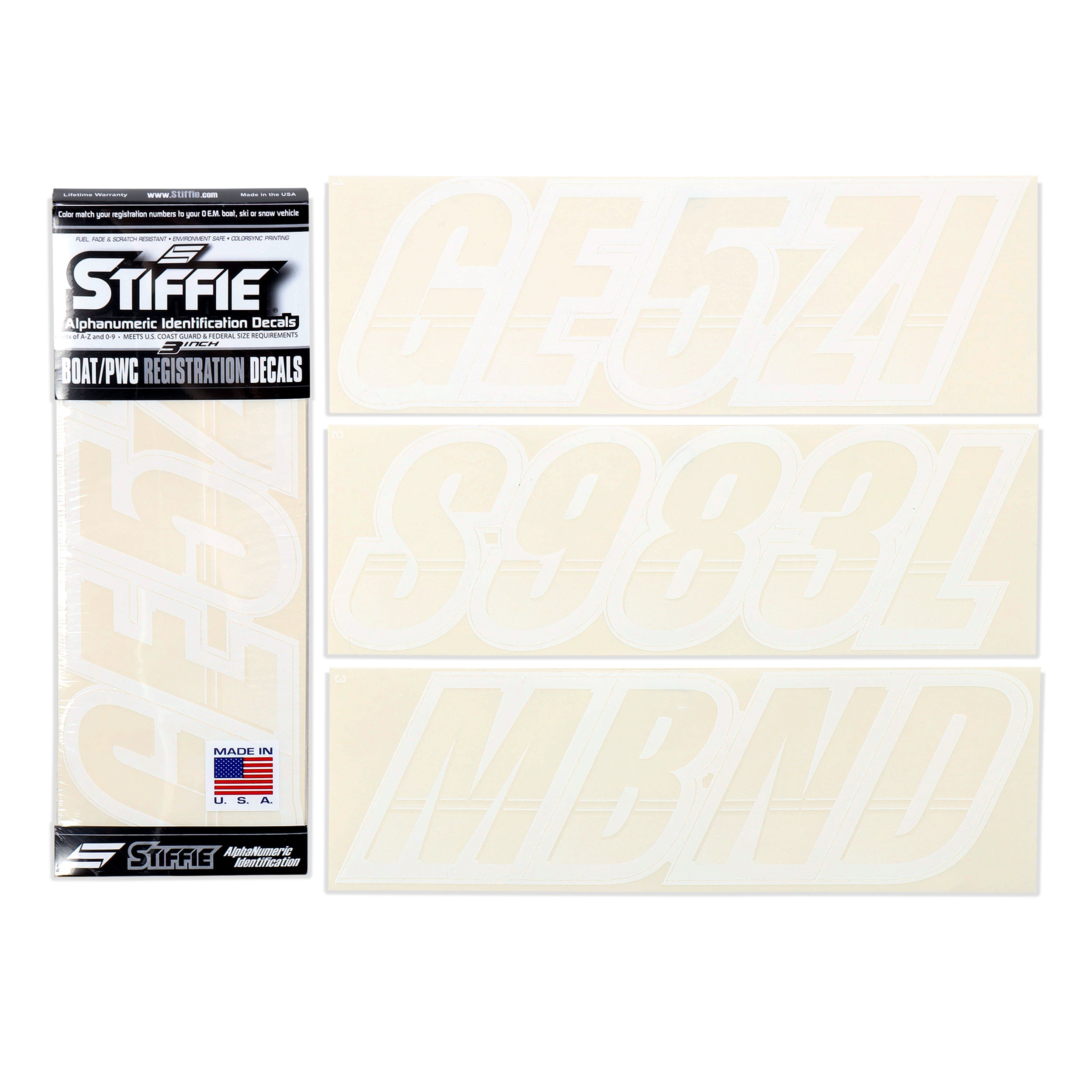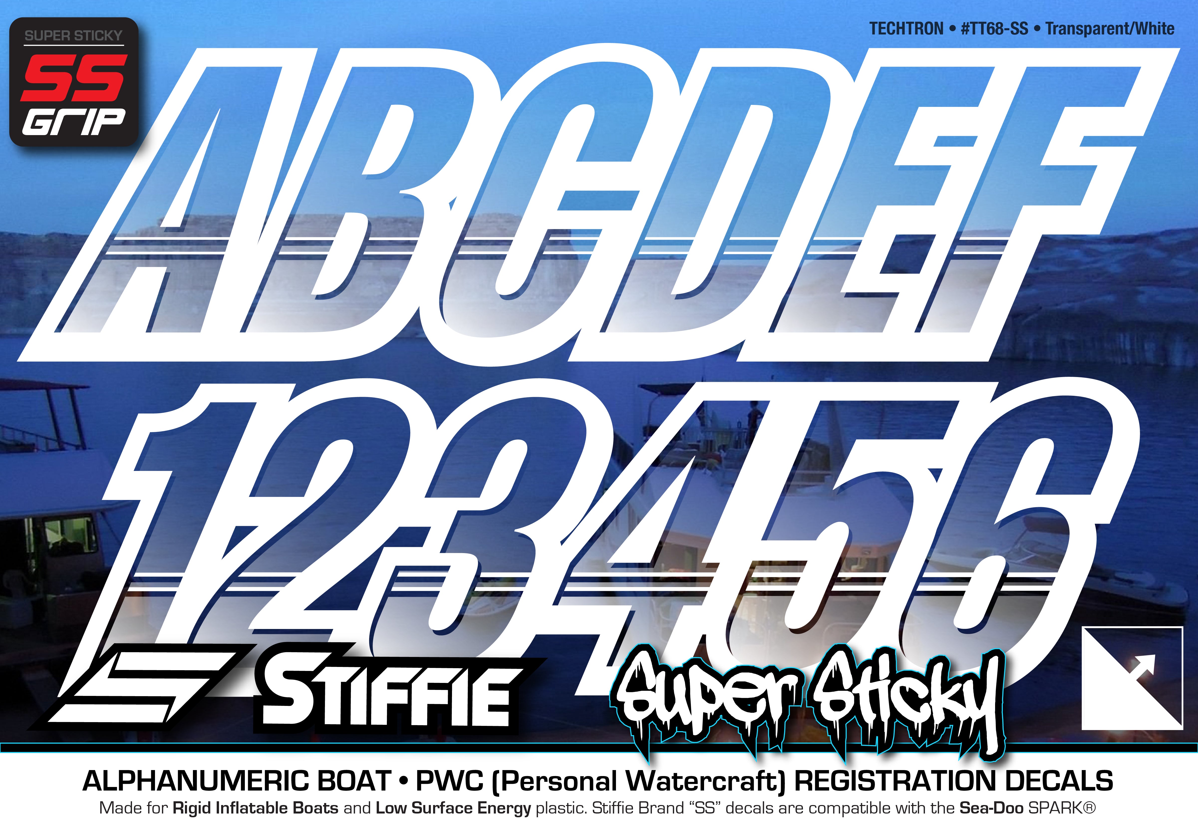 STIFFIE Techtron Transparent Clear/White 3” Boat & PWC Registration Decals • Numbers Letters Stickers