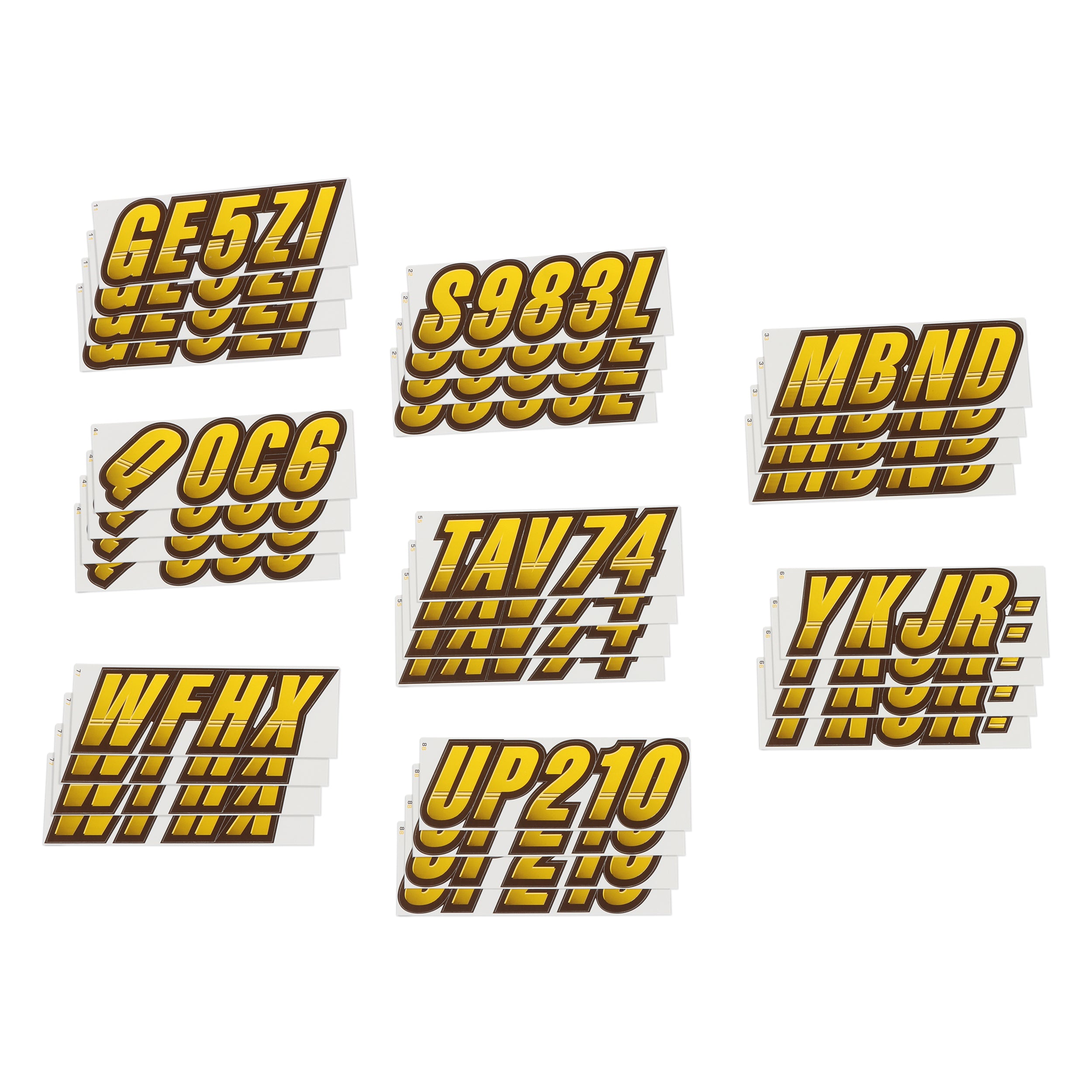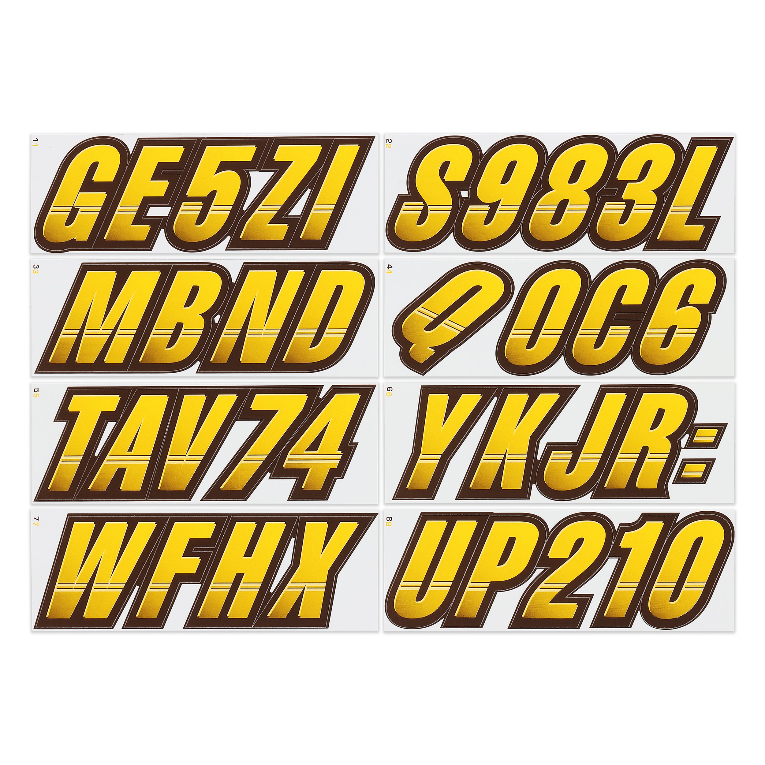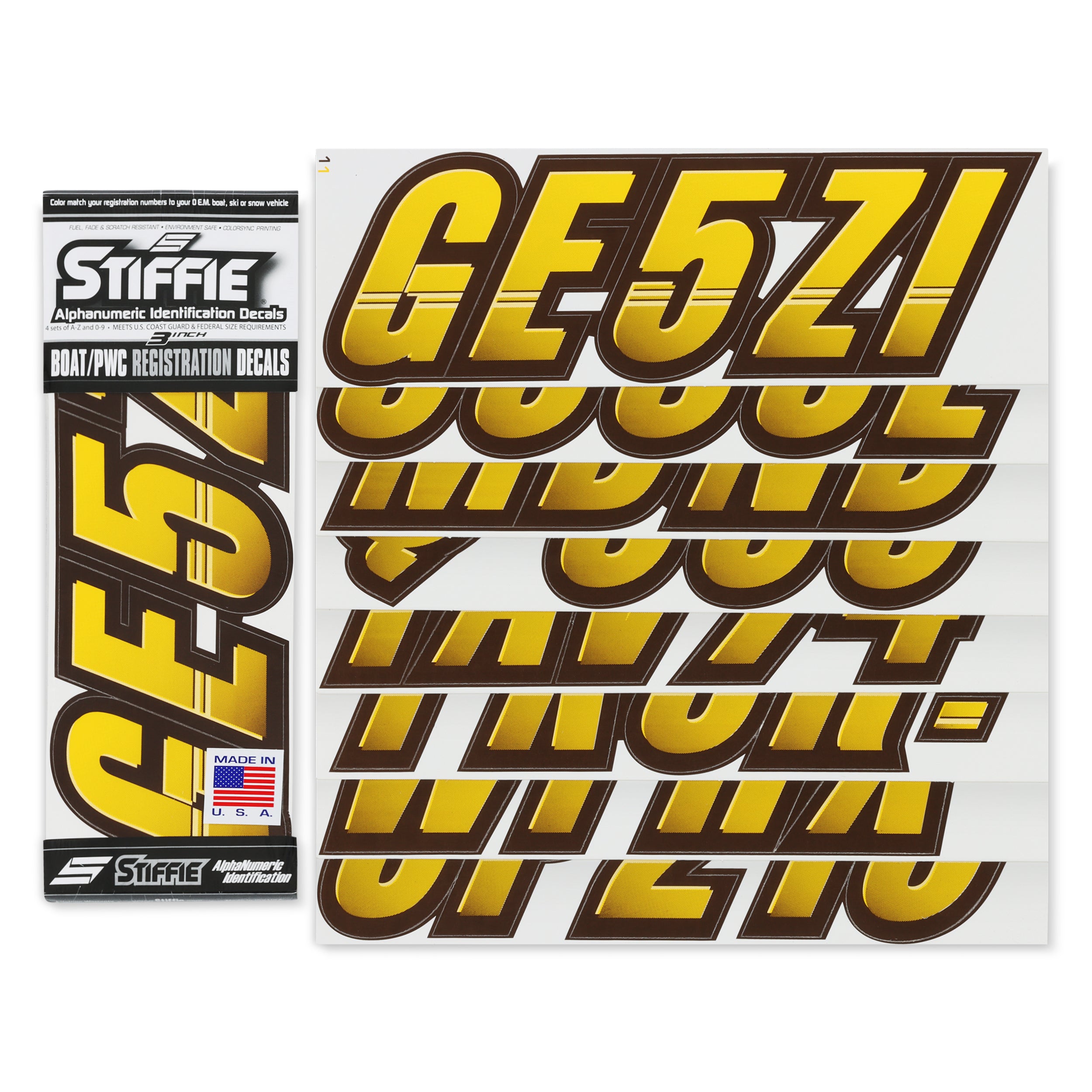 STIFFIE Techtron Yellow/Brown 3” Boat & PWC Registration Decals • Numbers Letters Stickers