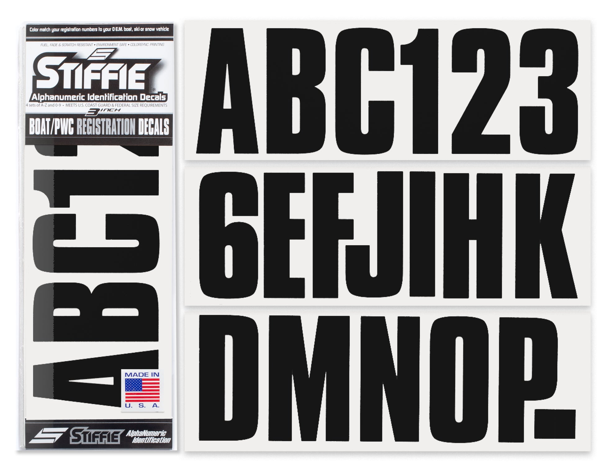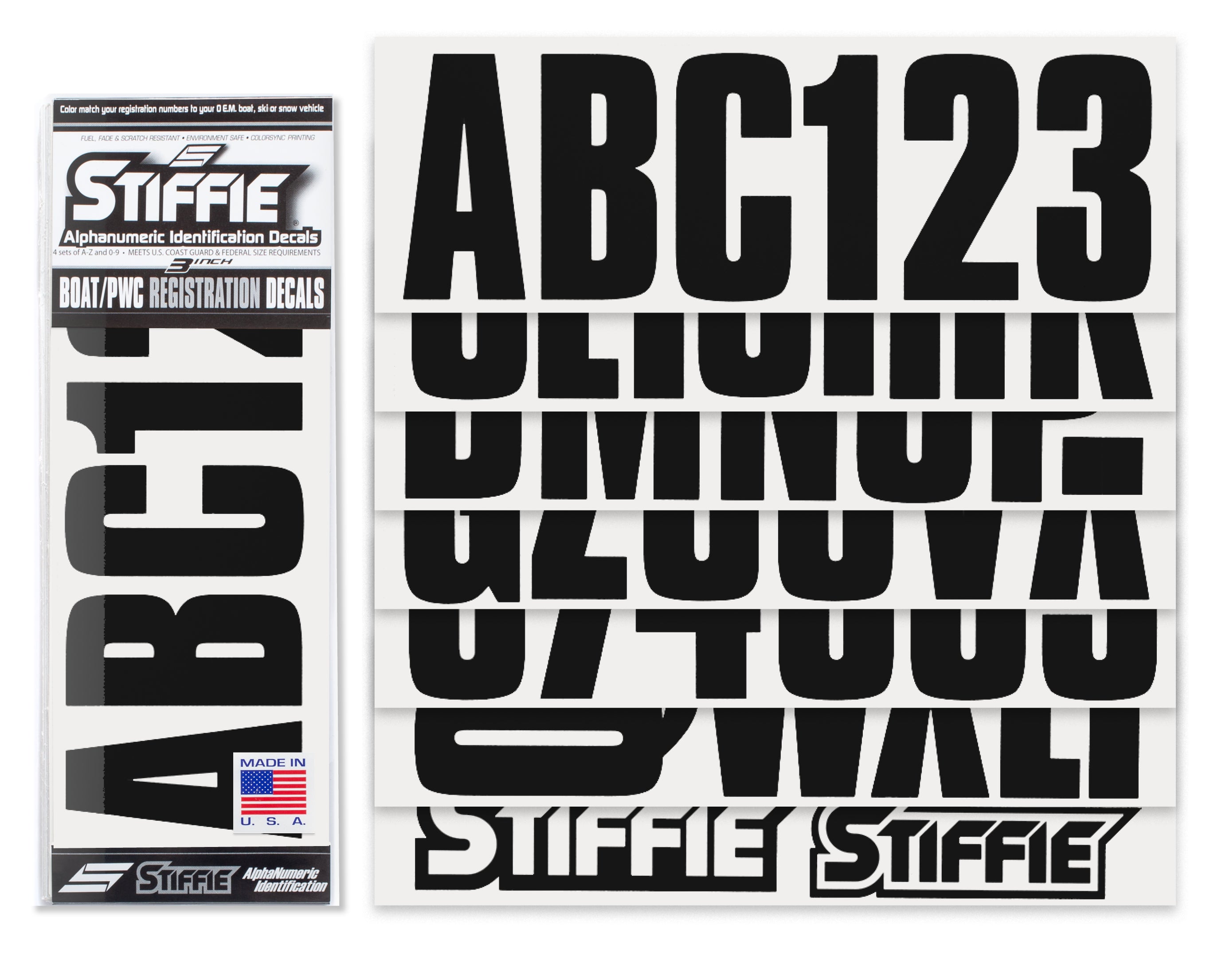 STIFFIE Uniline Black 3" ID Kit Alpha-Numeric Registration Identification Numbers Stickers Decals for Boats & Personal Watercraft