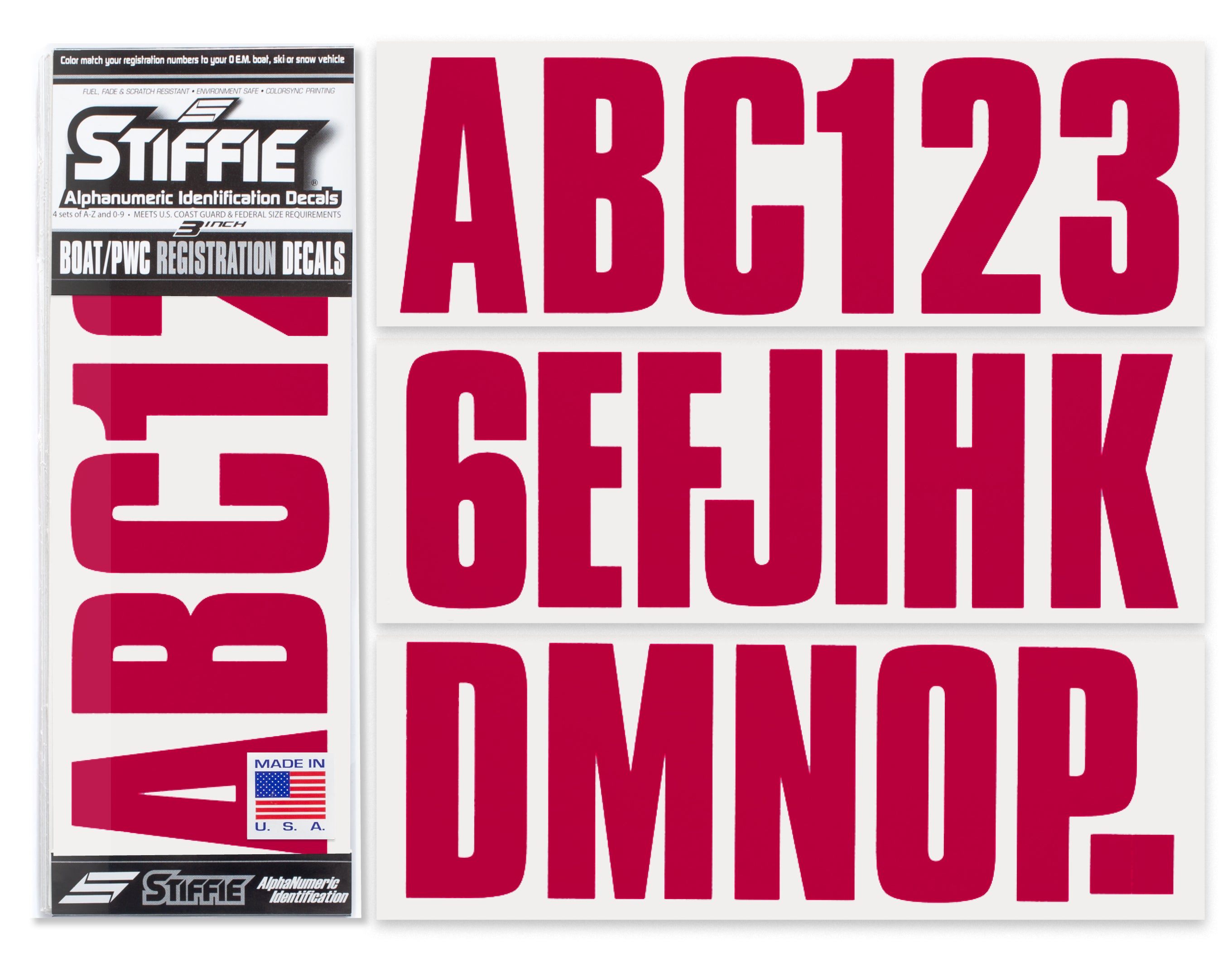 STIFFIE Uniline Burgundy 3" ID Kit Alpha-Numeric Registration Identification Numbers Stickers Decals for Boats & Personal Watercraft