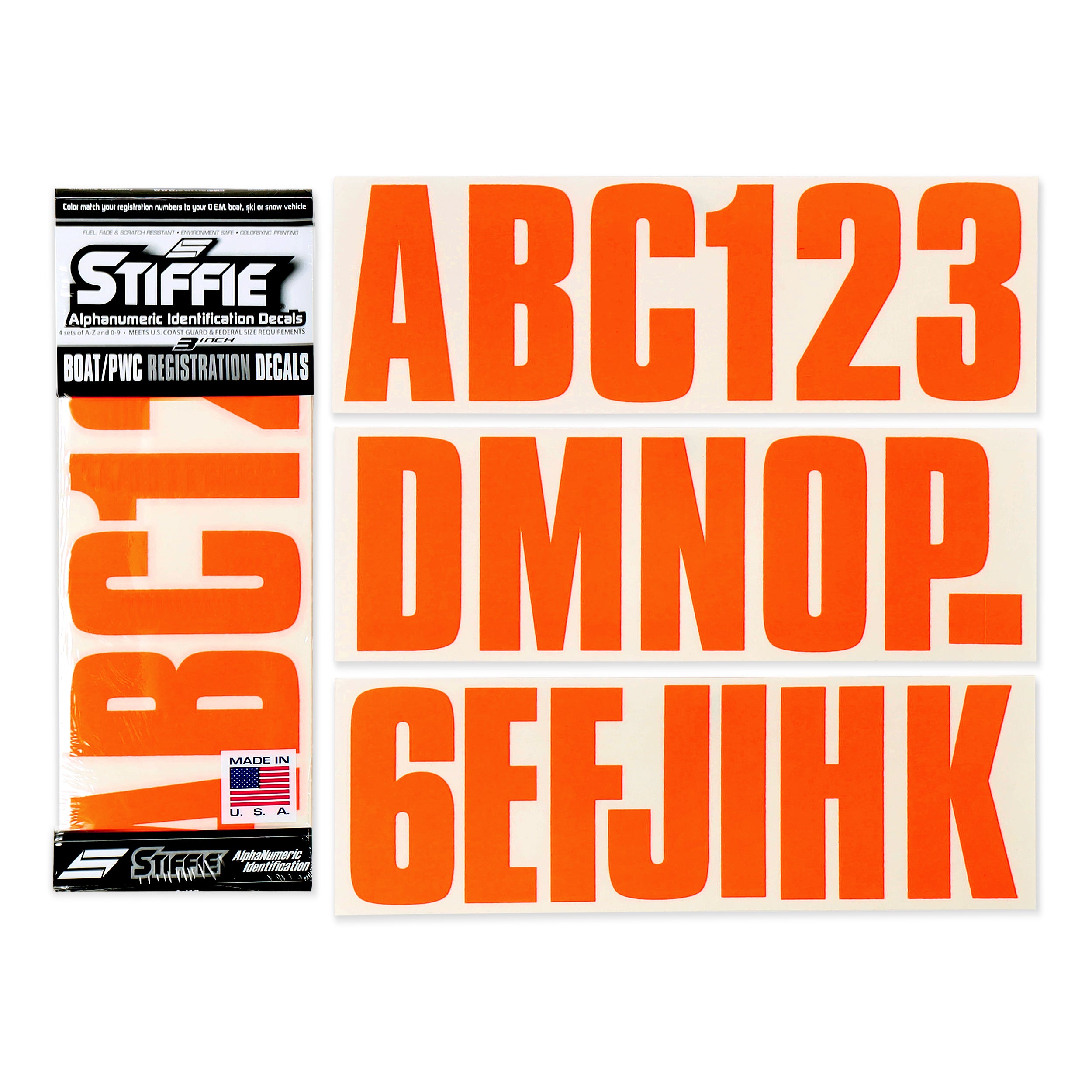 STIFFIE Uniline Electric Orange 3" ID Kit Alpha-Numeric Registration Identification Numbers Stickers Decals for Boats & Personal Watercraft