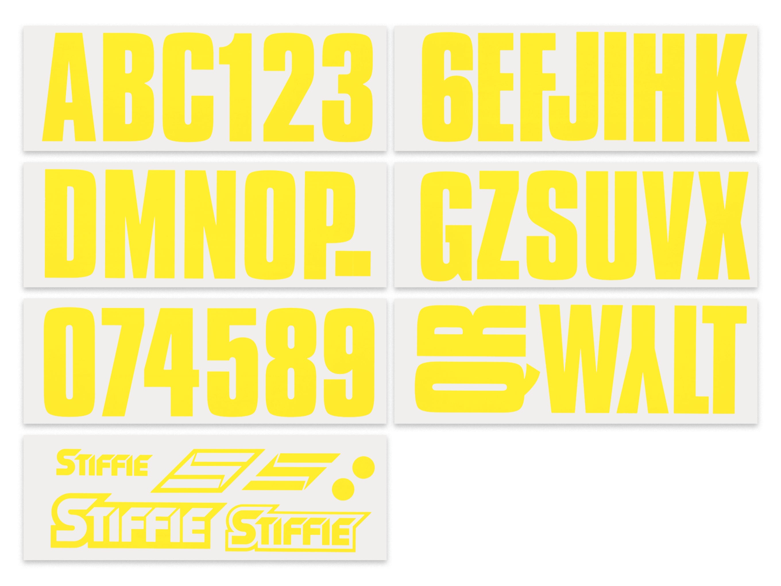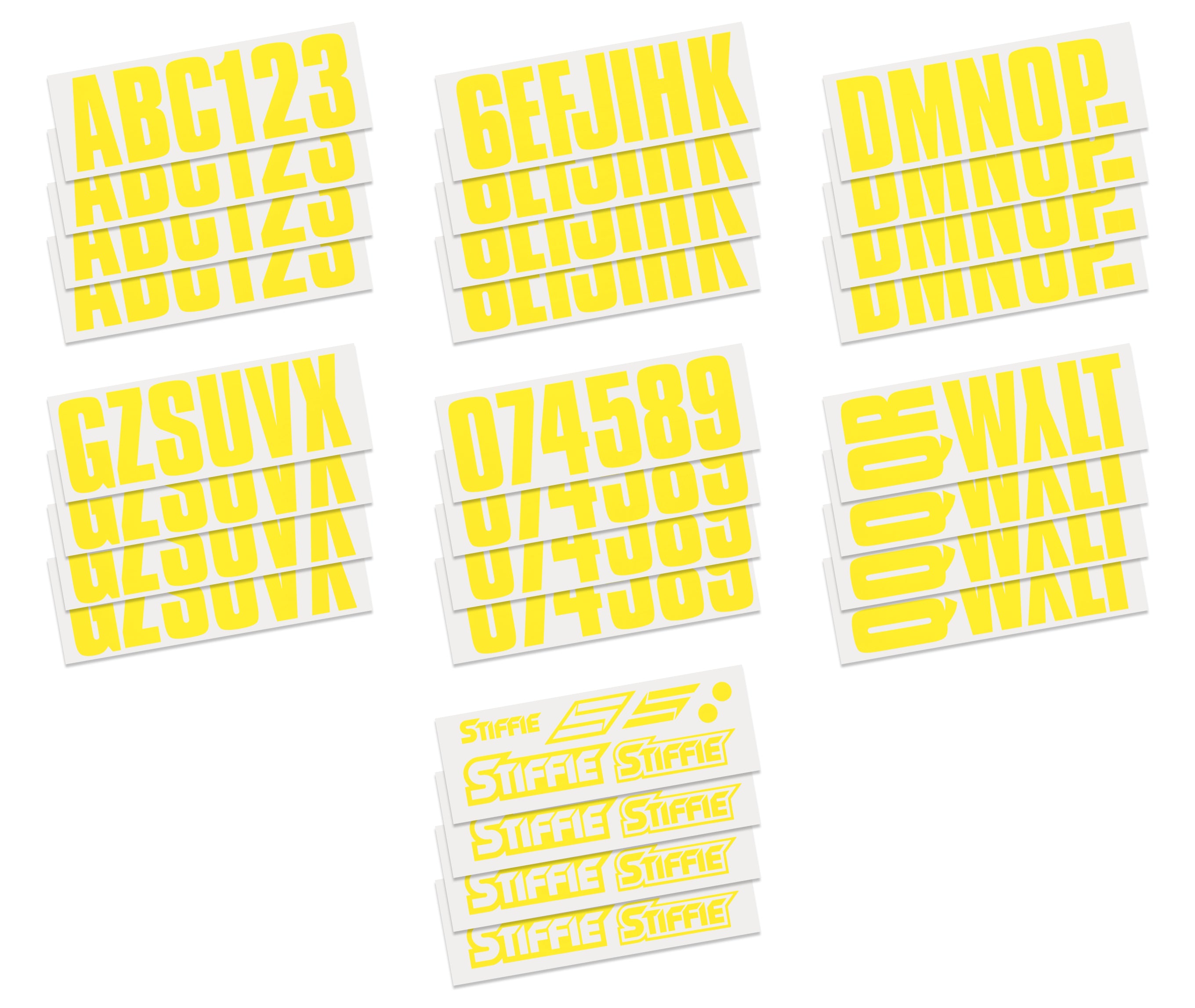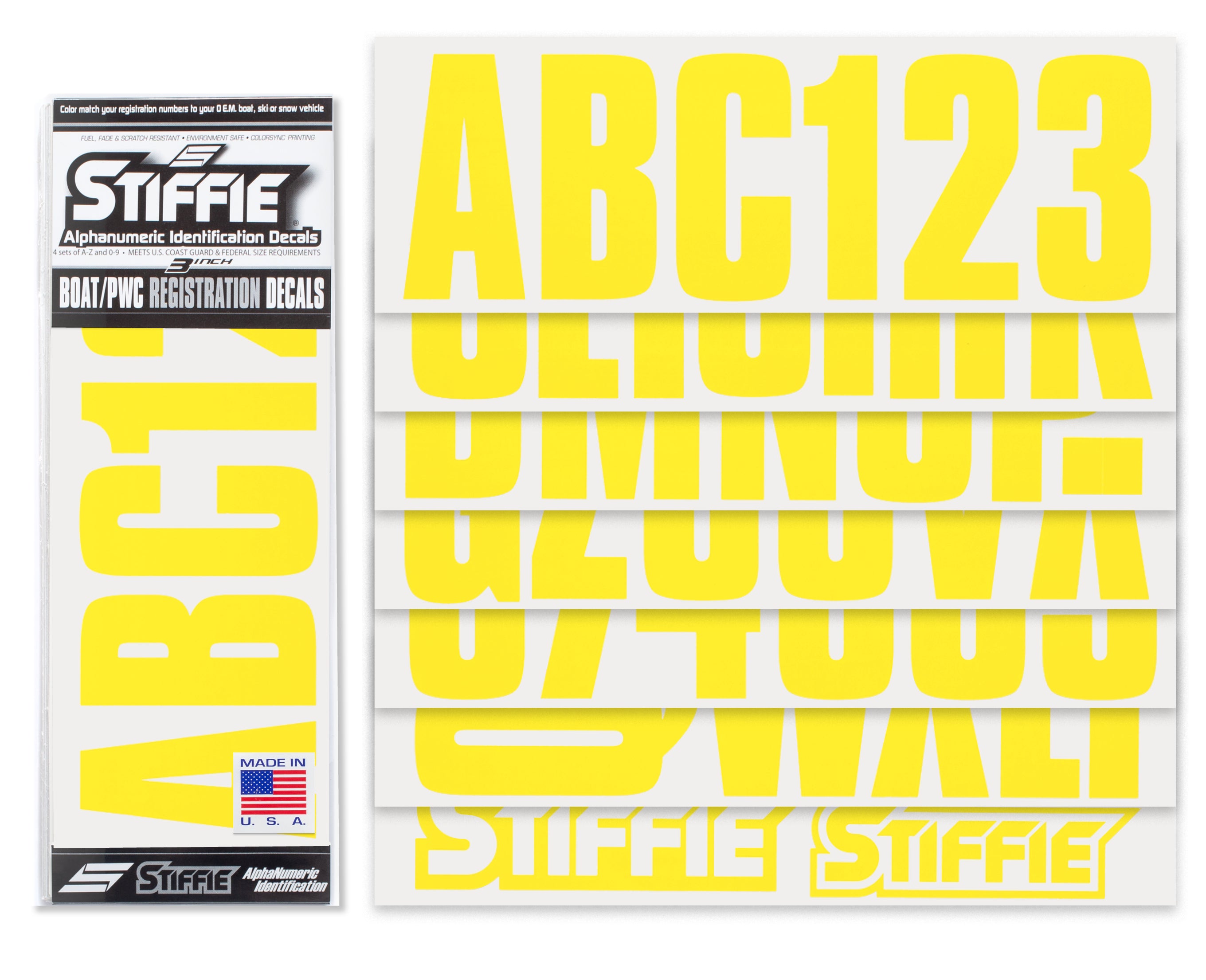 STIFFIE Uniline Electric Yellow 3" ID Kit Alpha-Numeric Registration Identification Numbers Stickers Decals for Boats & Personal Watercraft