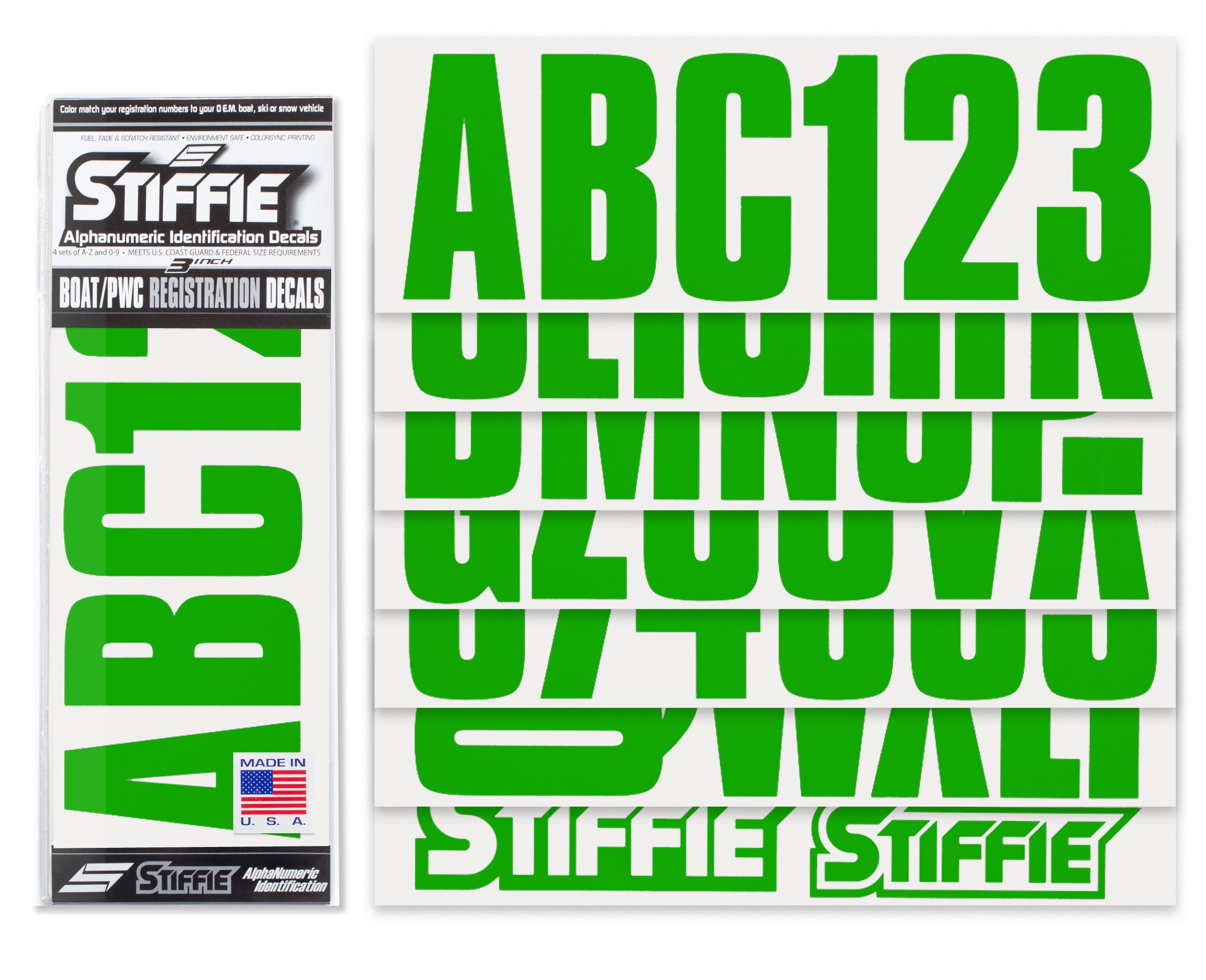 STIFFIE Uniline Green 3" ID Kit Alpha-Numeric Registration Identification Numbers Stickers Decals for Boats & Personal Watercraft