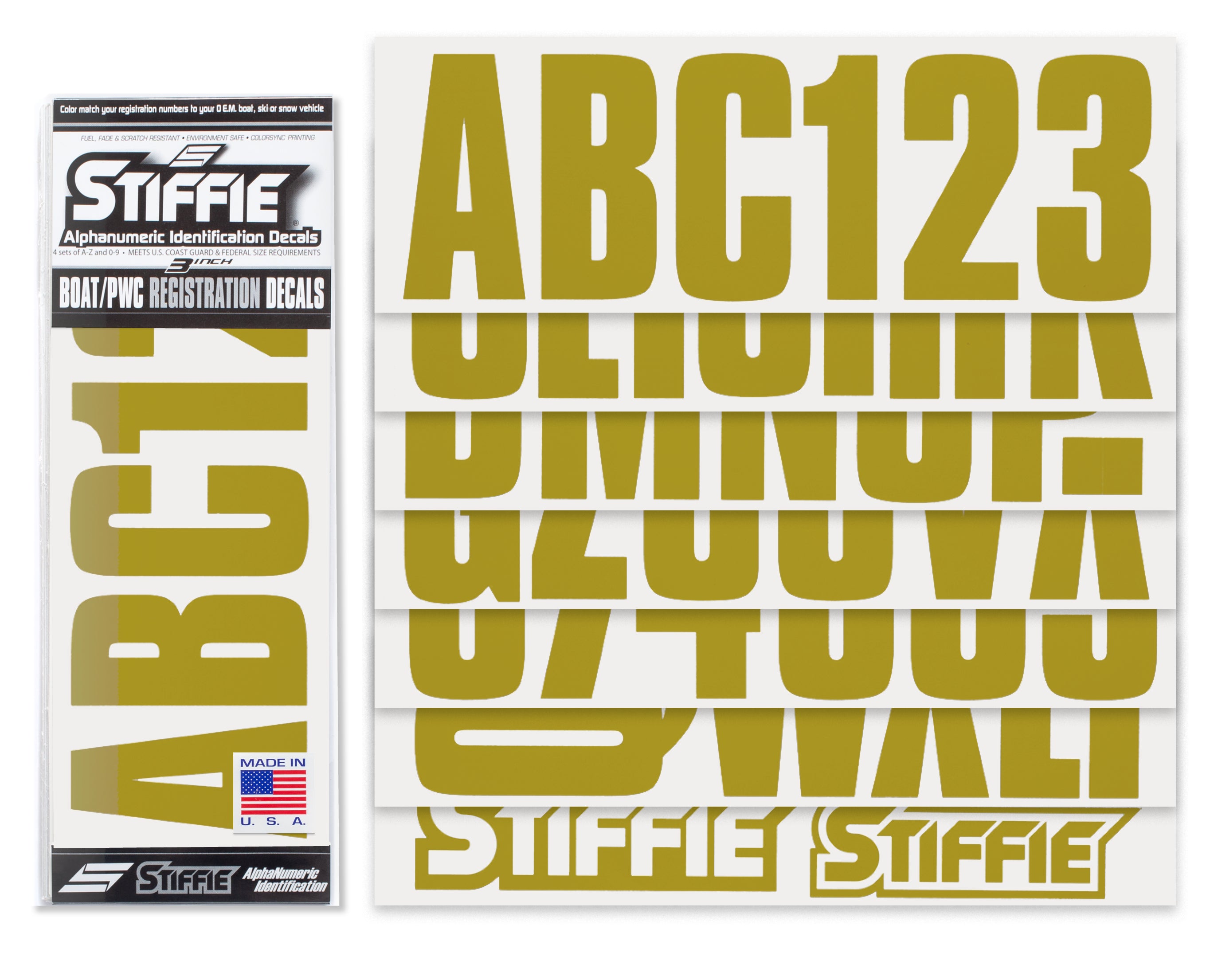 STIFFIE Uniline Metallic Gold 3" ID Kit Alpha-Numeric Registration Identification Numbers Stickers Decals for Boats & Personal Watercraft