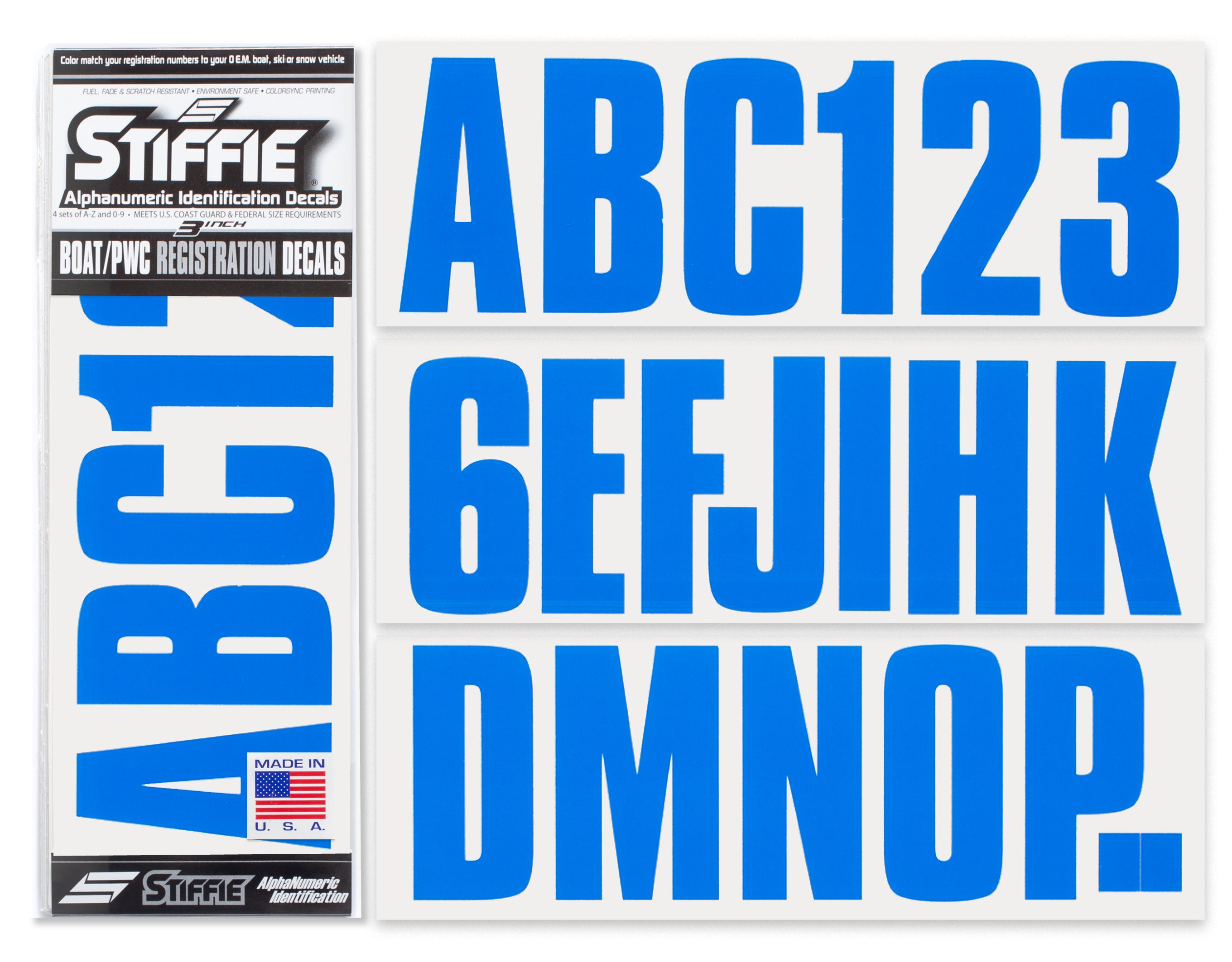 STIFFIE Uniline Octane Blue 3" ID Kit Alpha-Numeric Registration Identification Numbers Stickers Decals for Boats & Personal Watercraft