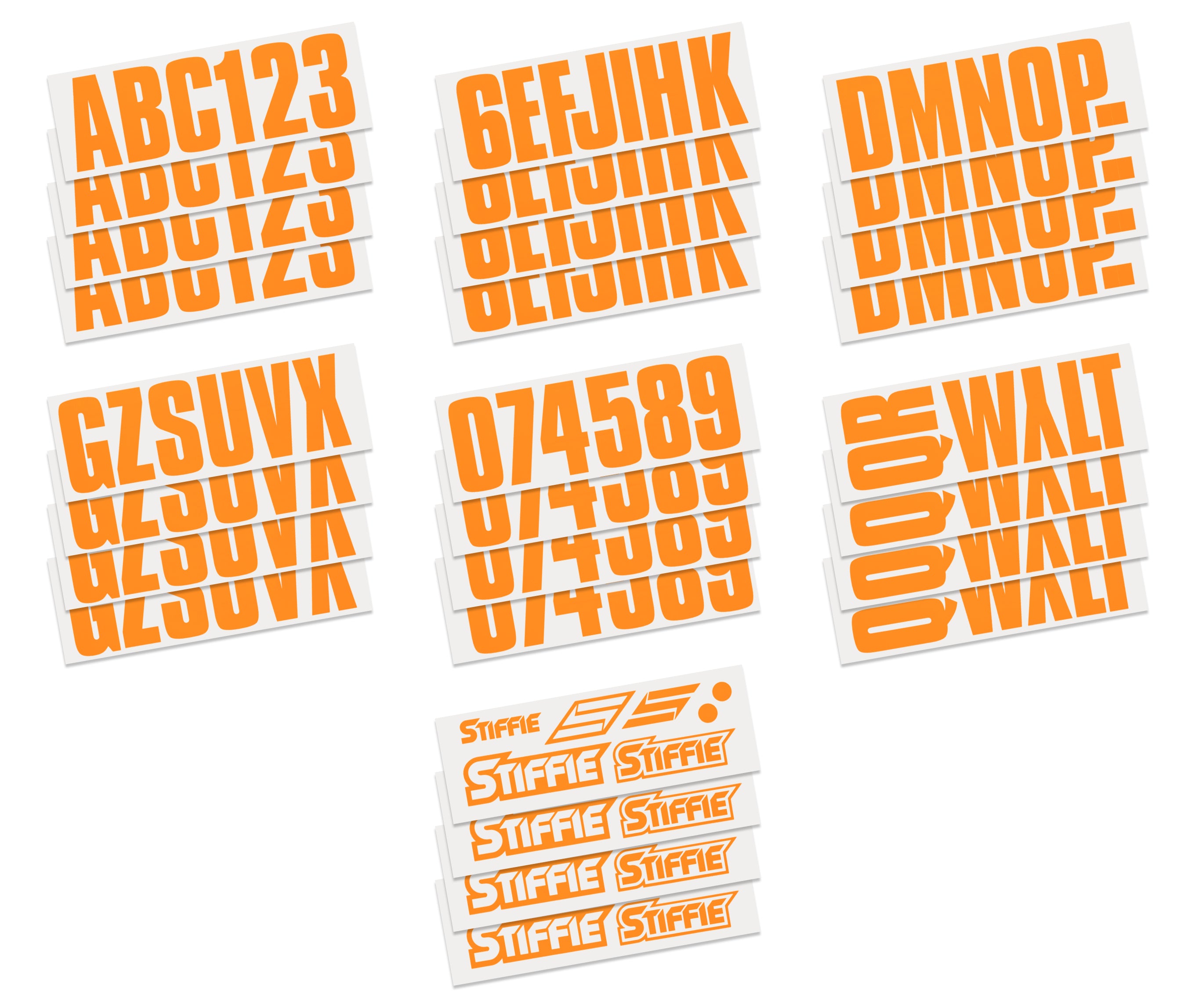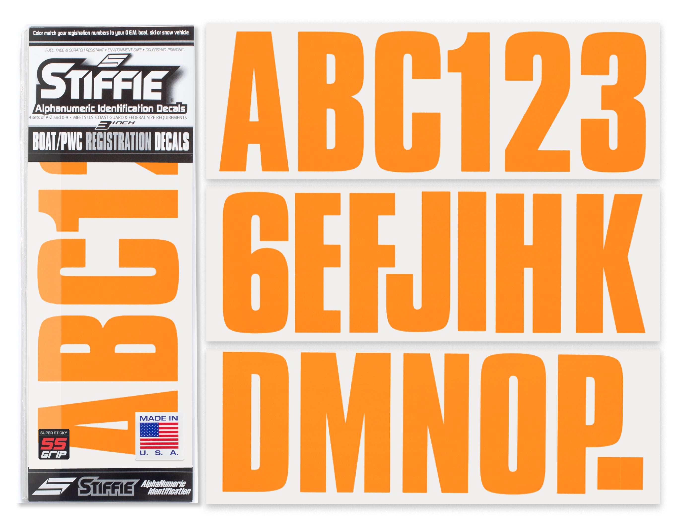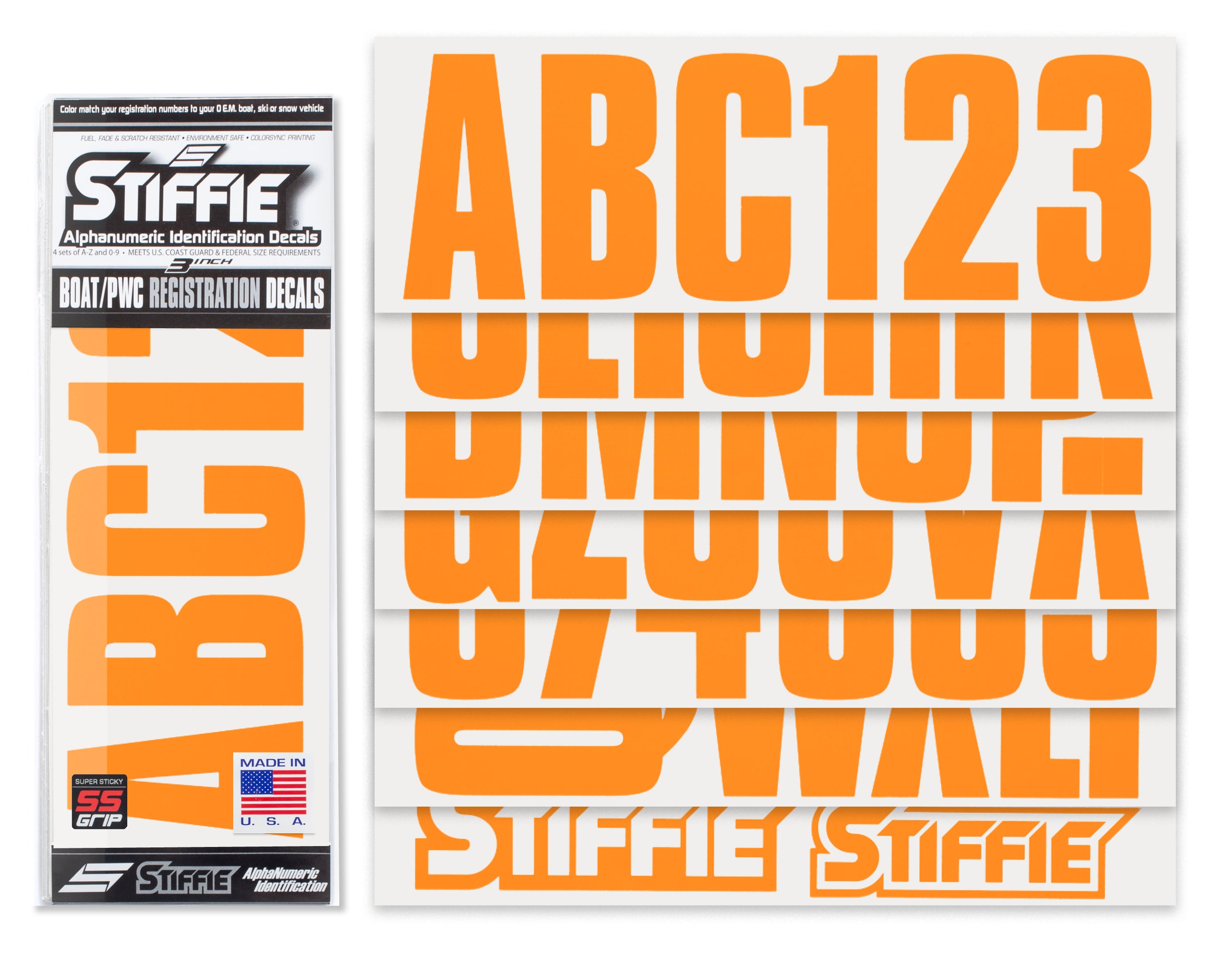 STIFFIE Uniline Orange Crush Super Sticky 3" Alpha Numeric Registration Identification Numbers Stickers Decals for Sea-Doo Spark, Inflatable Boats, Ribs, Hypalon/PVC, PWC and Boats