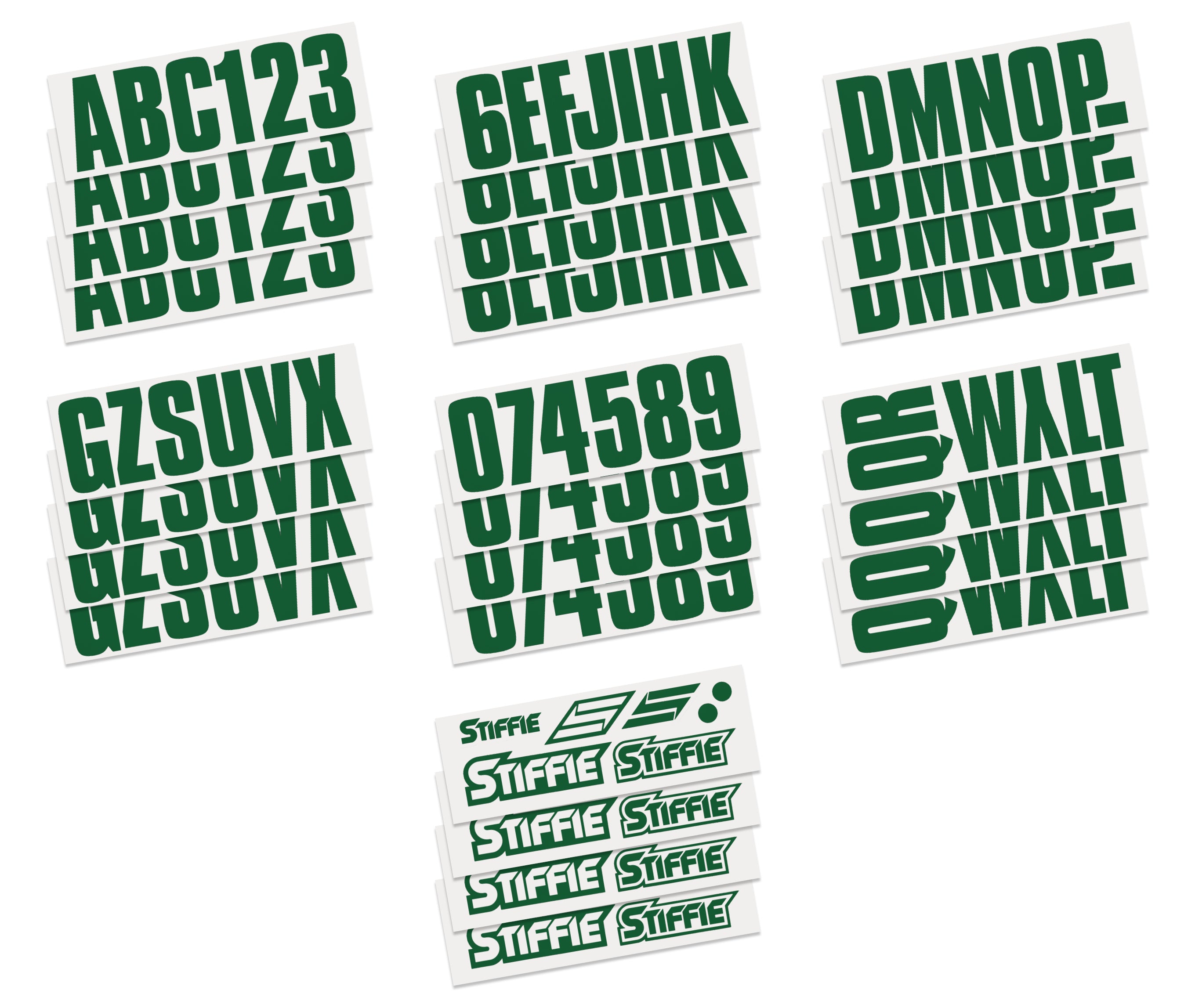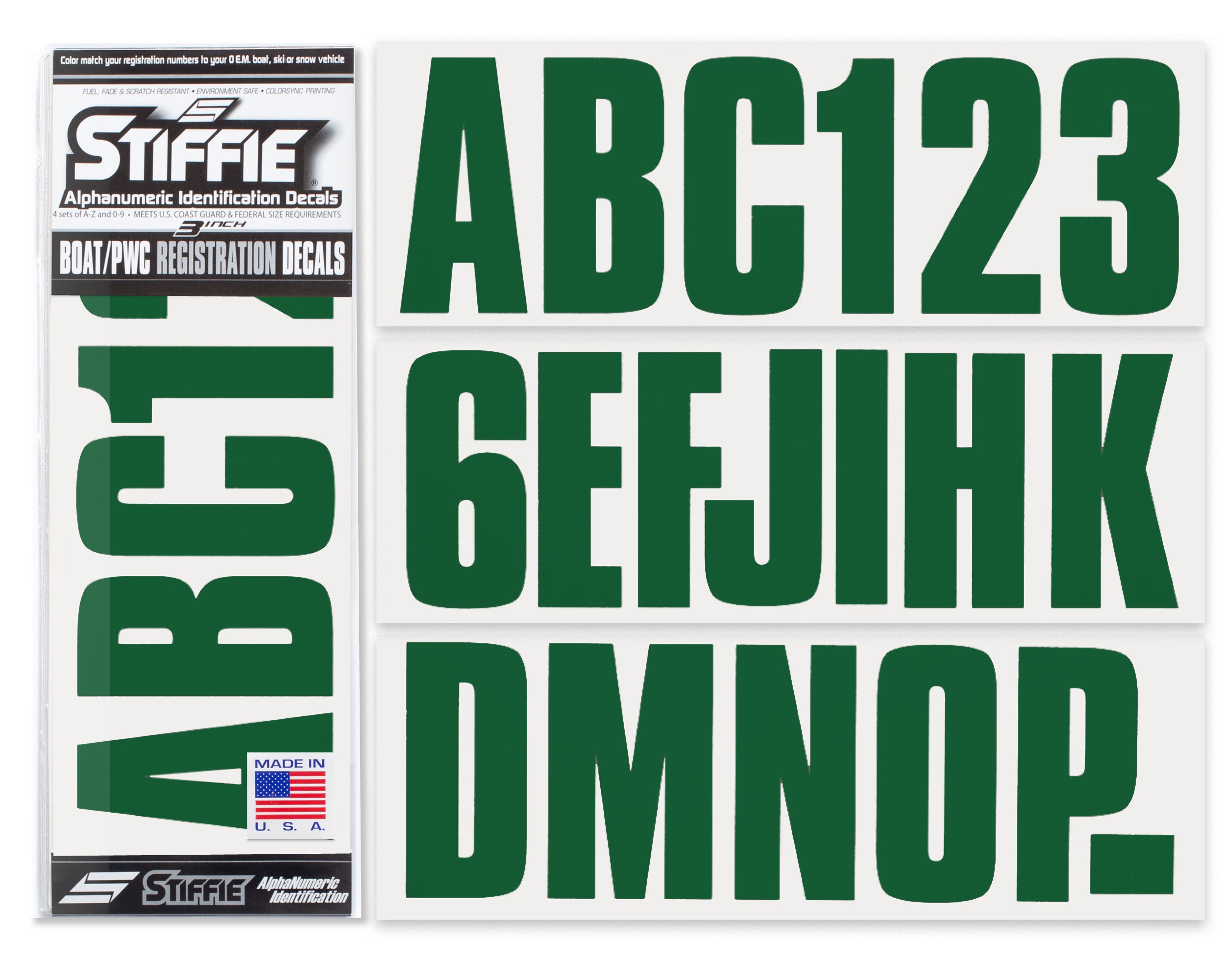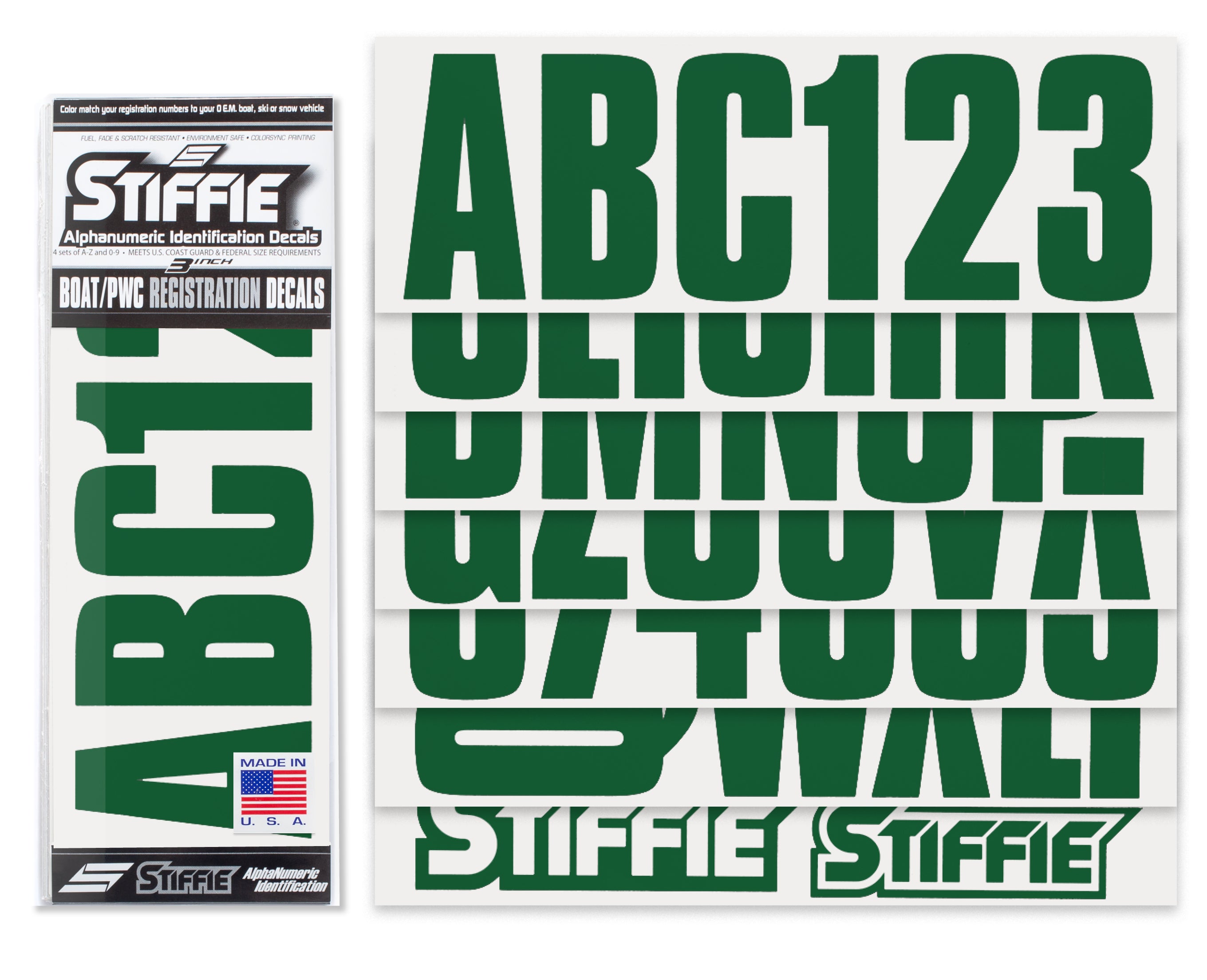 STIFFIE Uniline Racing Green 3" ID Kit Alpha-Numeric Registration Identification Numbers Stickers Decals for Boats & Personal Watercraft