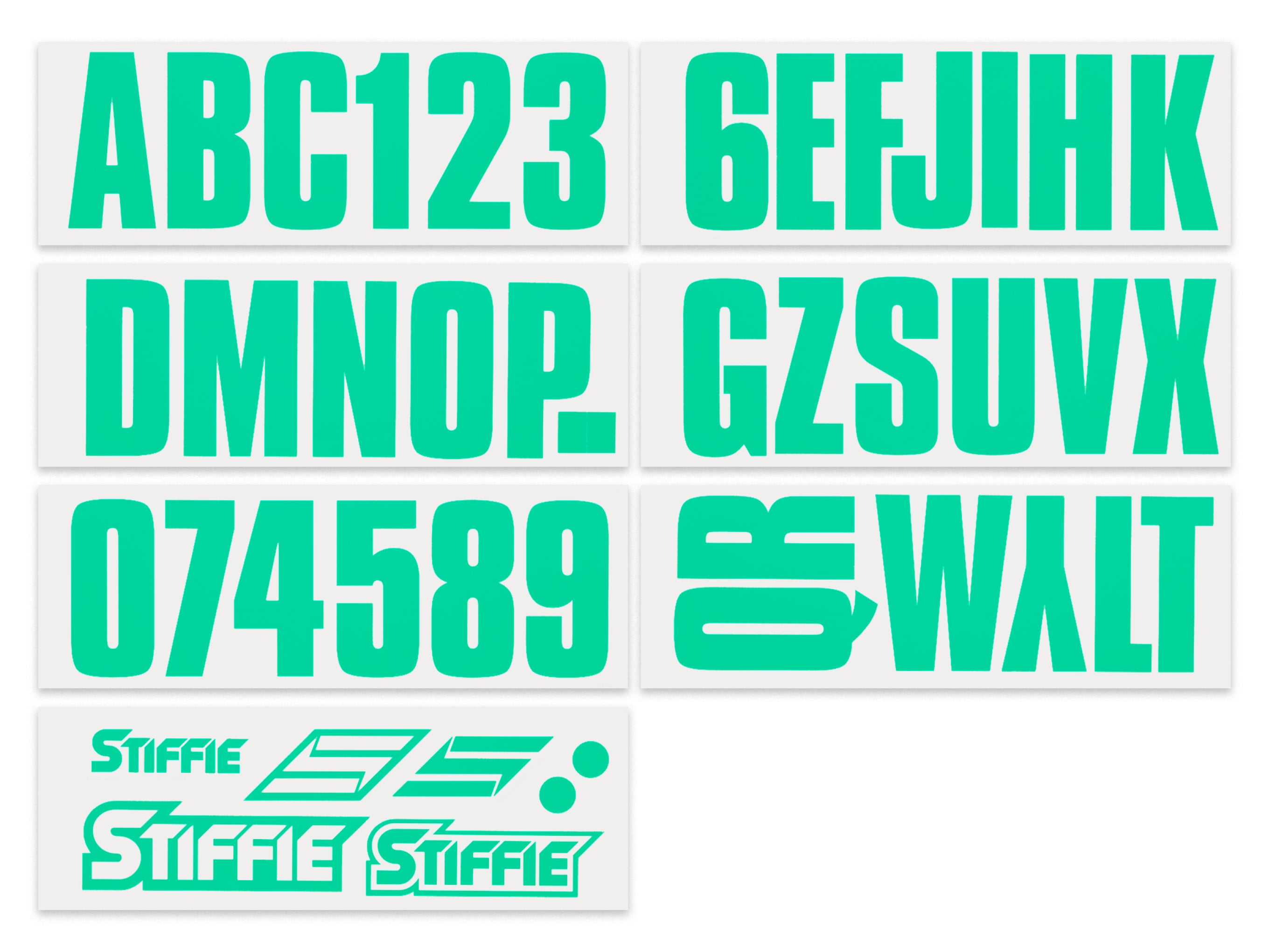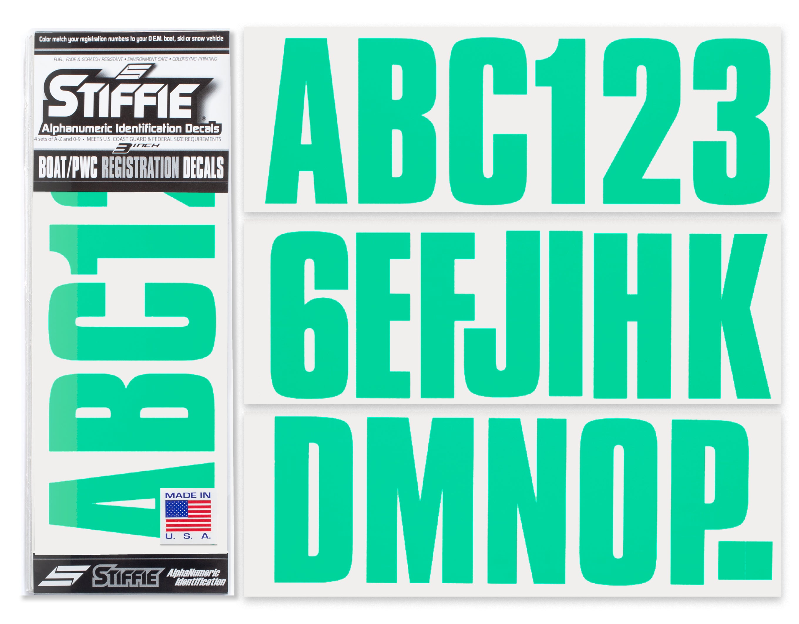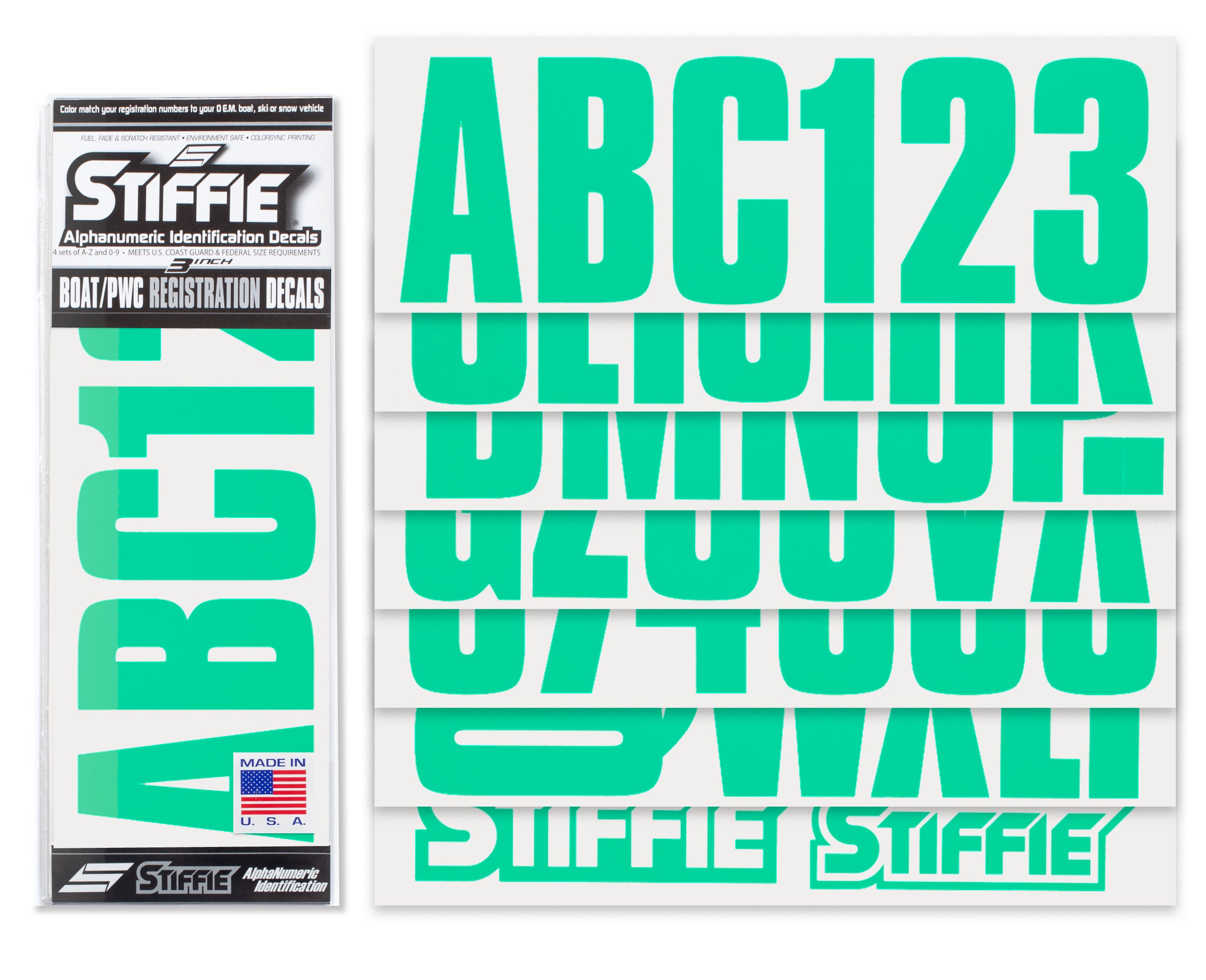 STIFFIE Uniline SeaFoam Green 3" ID Kit Alpha-Numeric Registration Identification Numbers Stickers Decals for Boats & Personal Watercraft