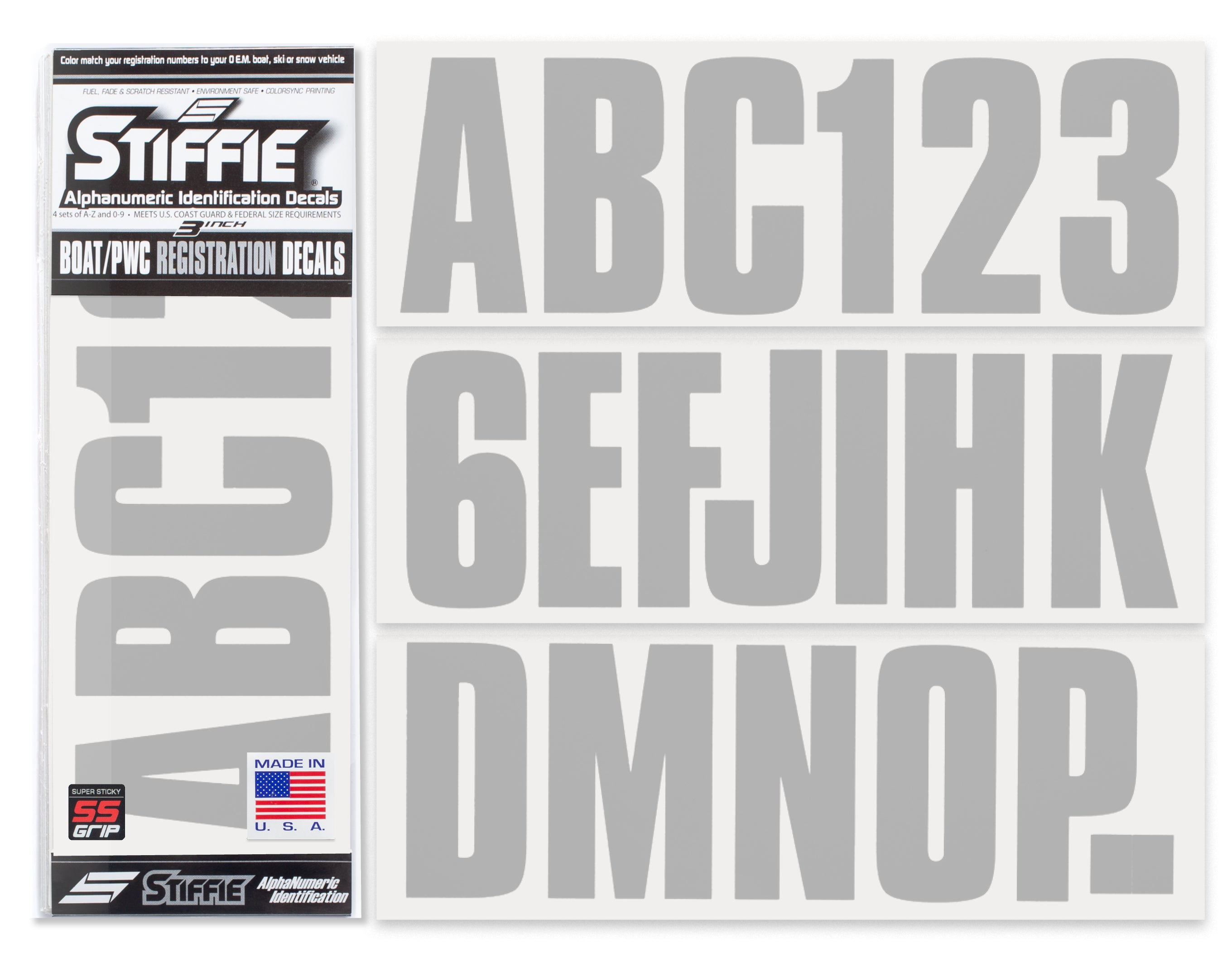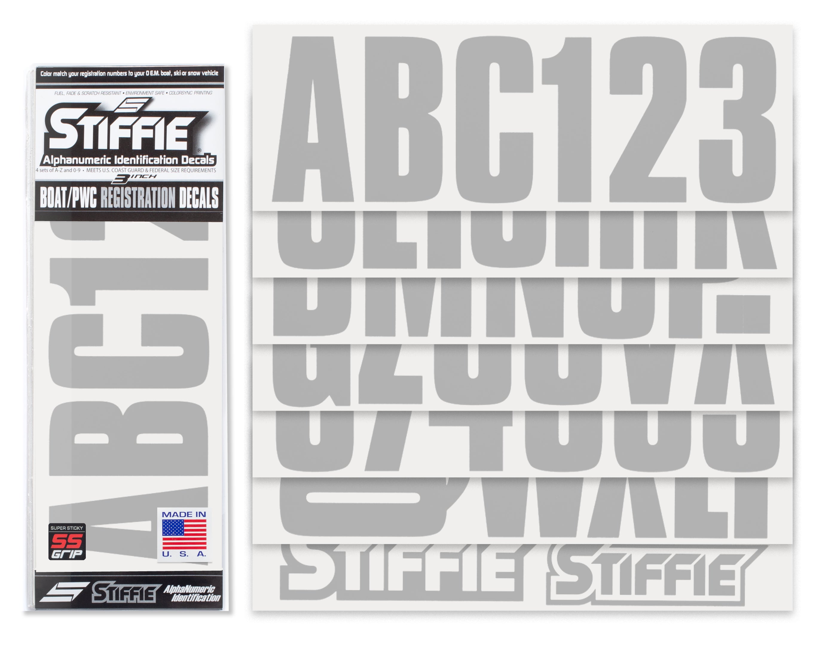 STIFFIE Uniline Silver Super Sticky 3" Alpha Numeric Registration Identification Numbers Stickers Decals for Sea-Doo Spark, Inflatable Boats, Ribs, Hypalon/PVC, PWC and Boats