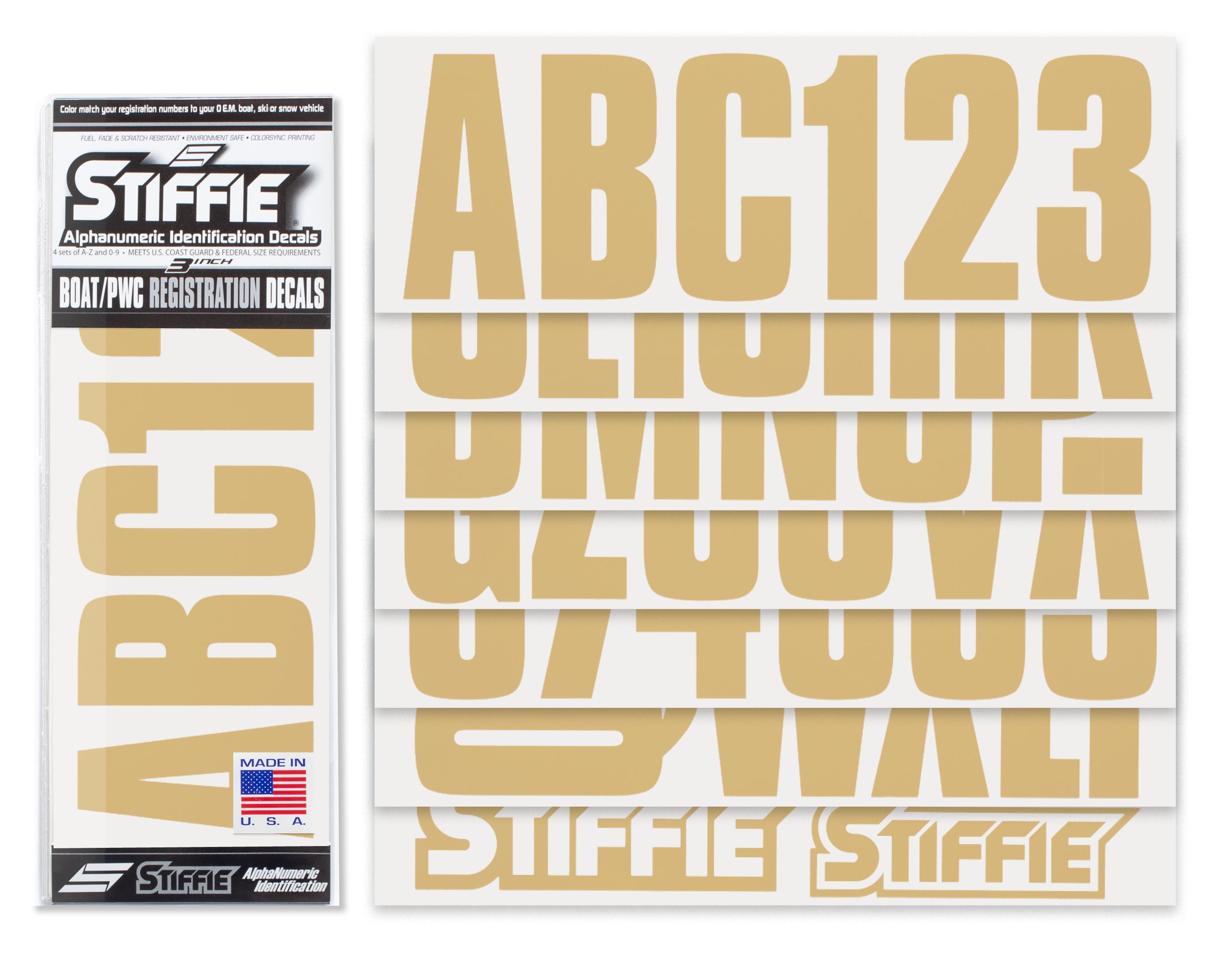 STIFFIE Uniline Tan 3" ID Kit Alpha-Numeric Registration Identification Numbers Stickers Decals for Boats & Personal Watercraft