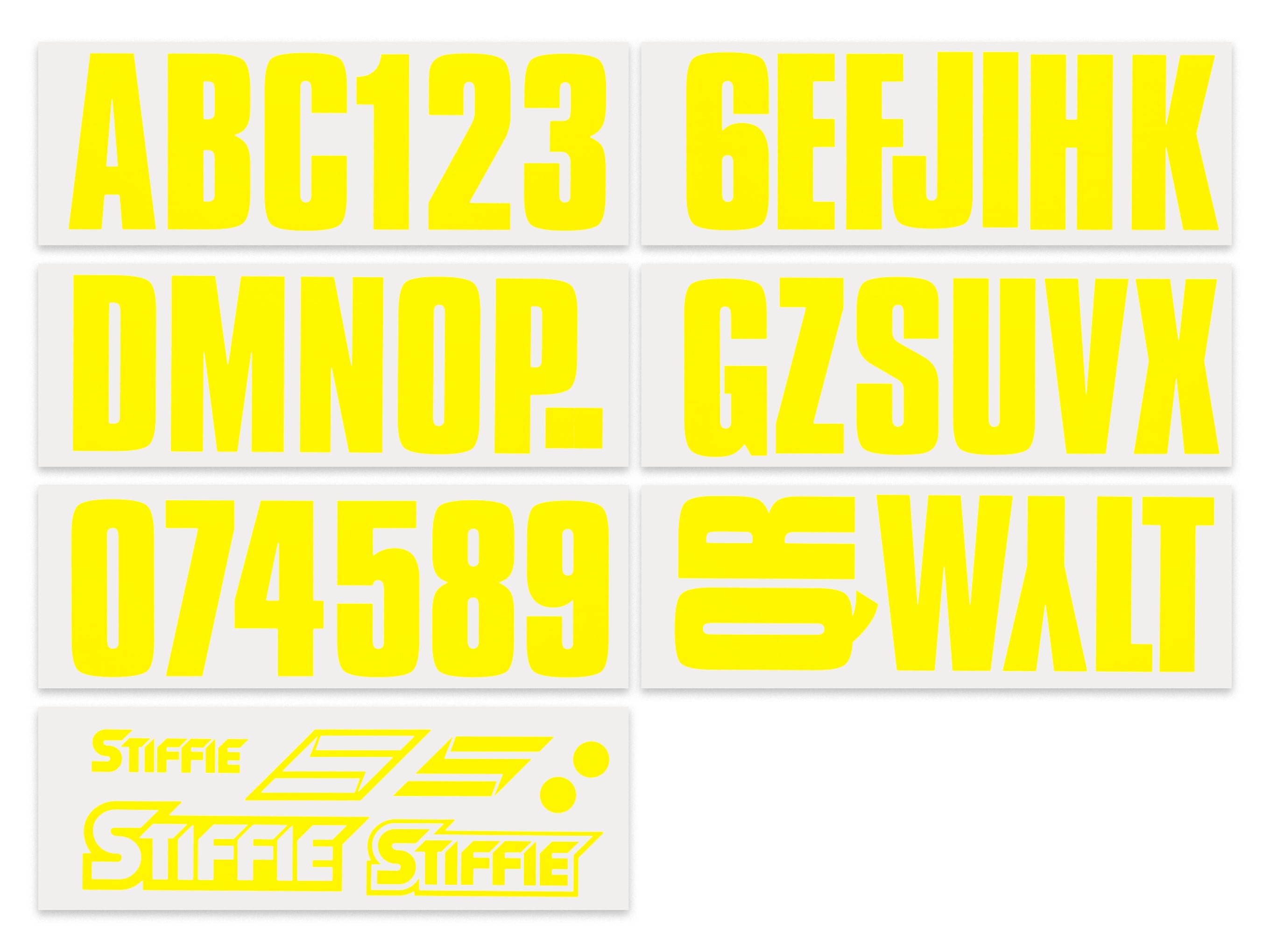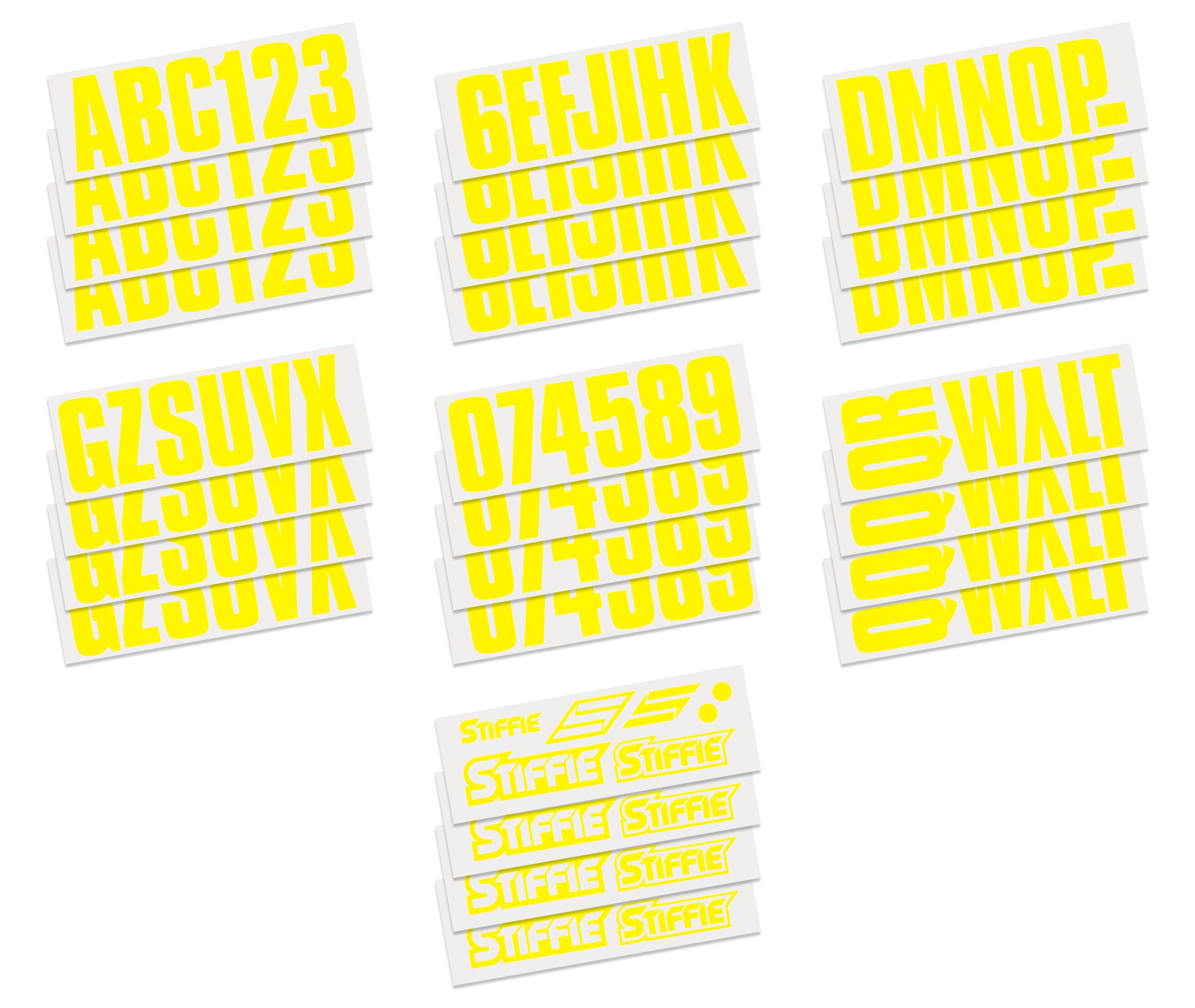 - All STIFFIE kits include 4 each of the letters A-Z and the numbers 0-9 for a total of 146 decals.