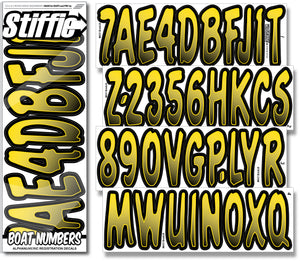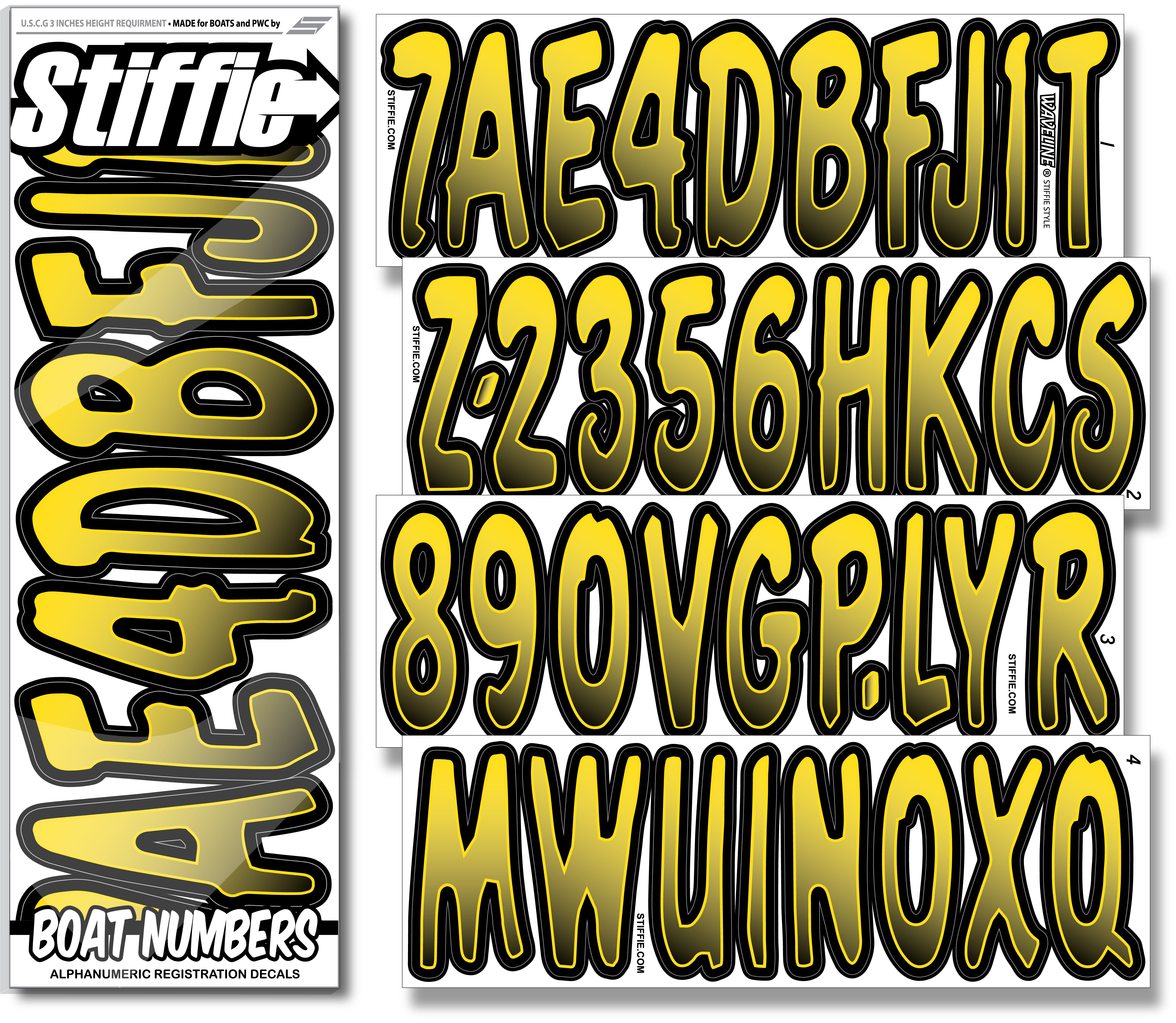 STIFFIE Waveline Yellow/Black 3” Boat & PWC Registration Decals • Numbers Letters Stickers