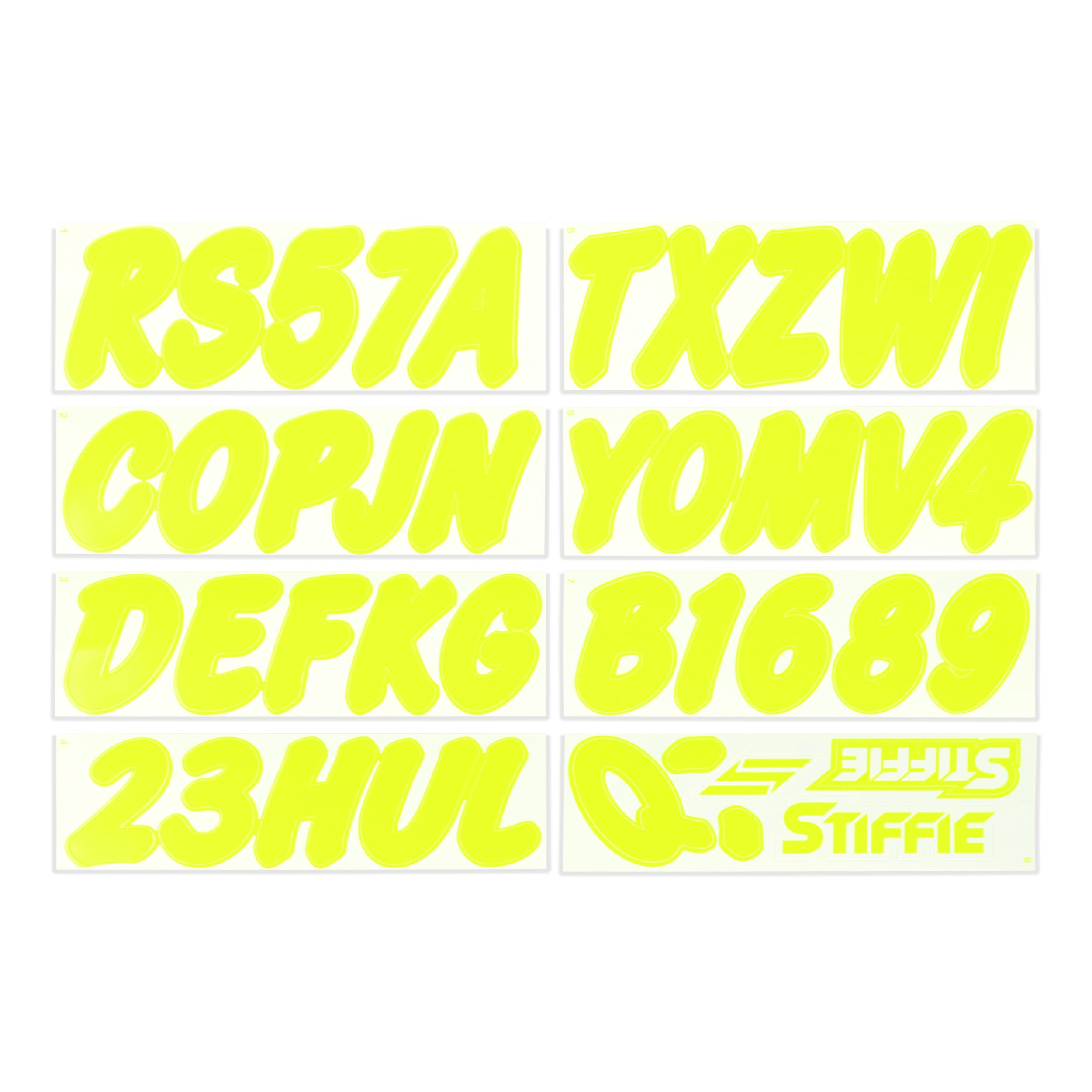 STIFFIE Whip-One Day Glow Yellow 3” Super Sticky Boat & PWC Registration Decals • Numbers Letters Stickers