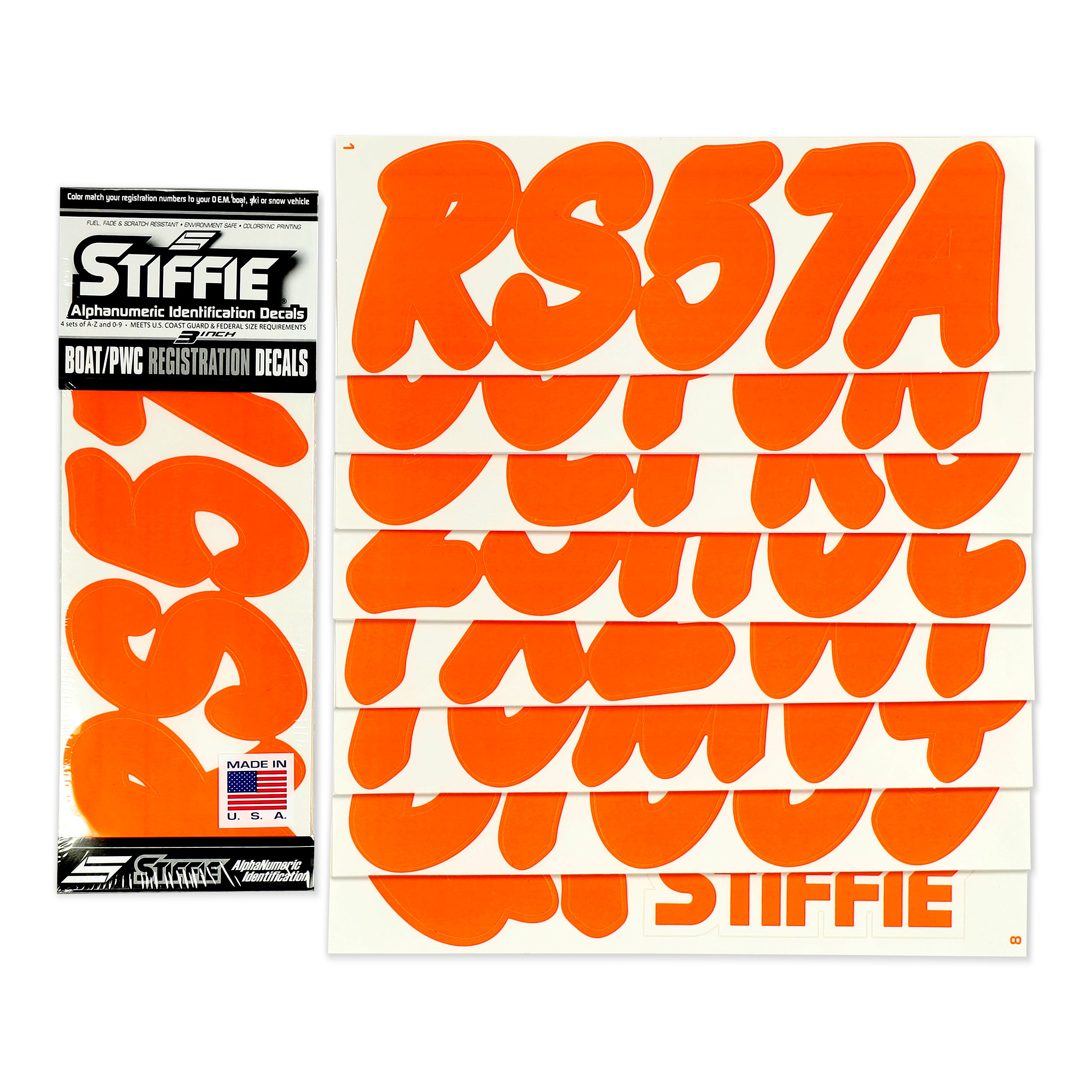 STIFFIE Whip-One Electric Orange 3” Boat & PWC Registration Decals • Numbers Letters Stickers