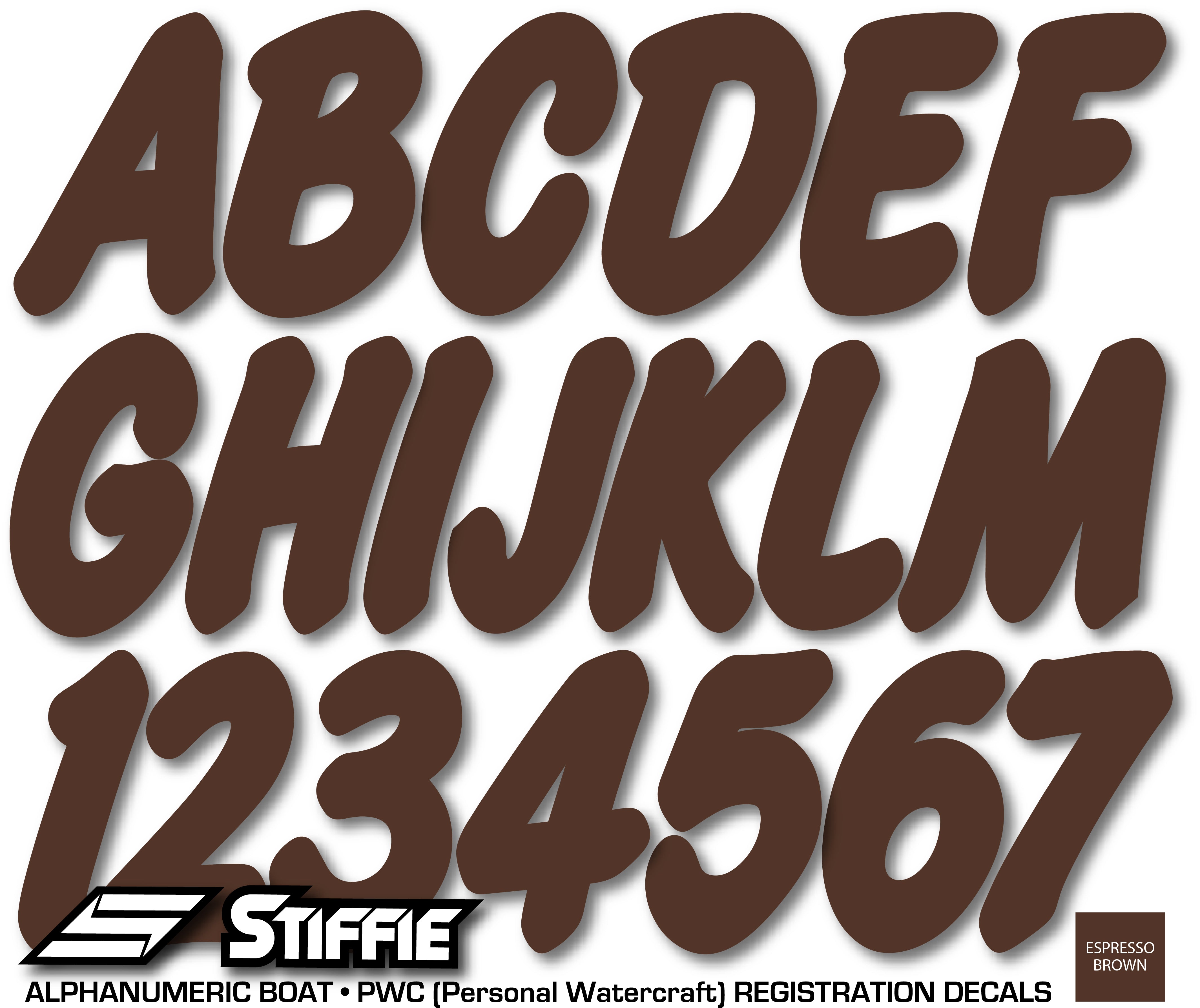 STIFFIE Whip-One Espresso Brown 3” Boat & PWC Registration Decals • Numbers Letters Stickers