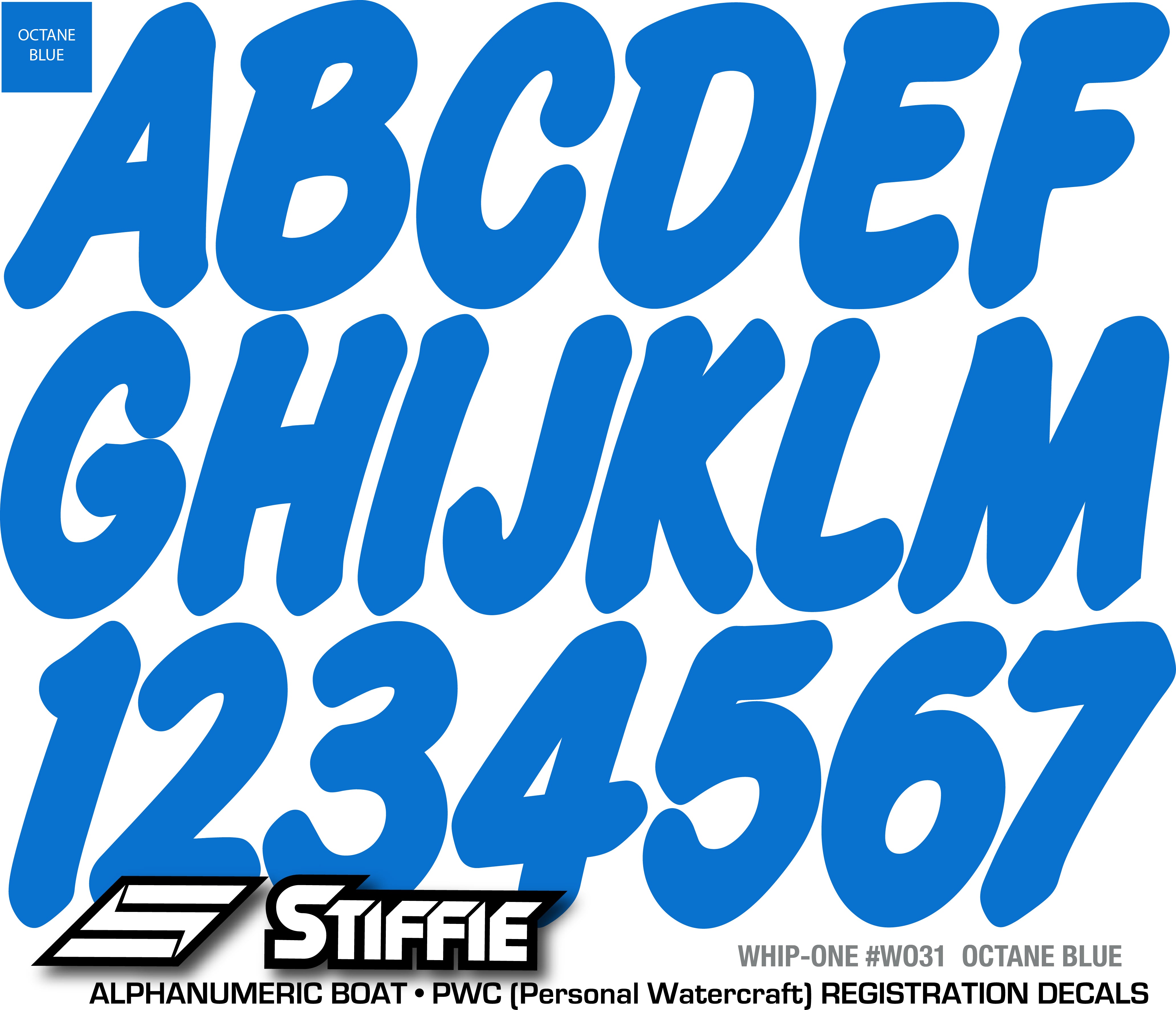 STIFFIE Whip-One Octane Blue 3” Boat & PWC Registration Decals • Numbers Letters Stickers