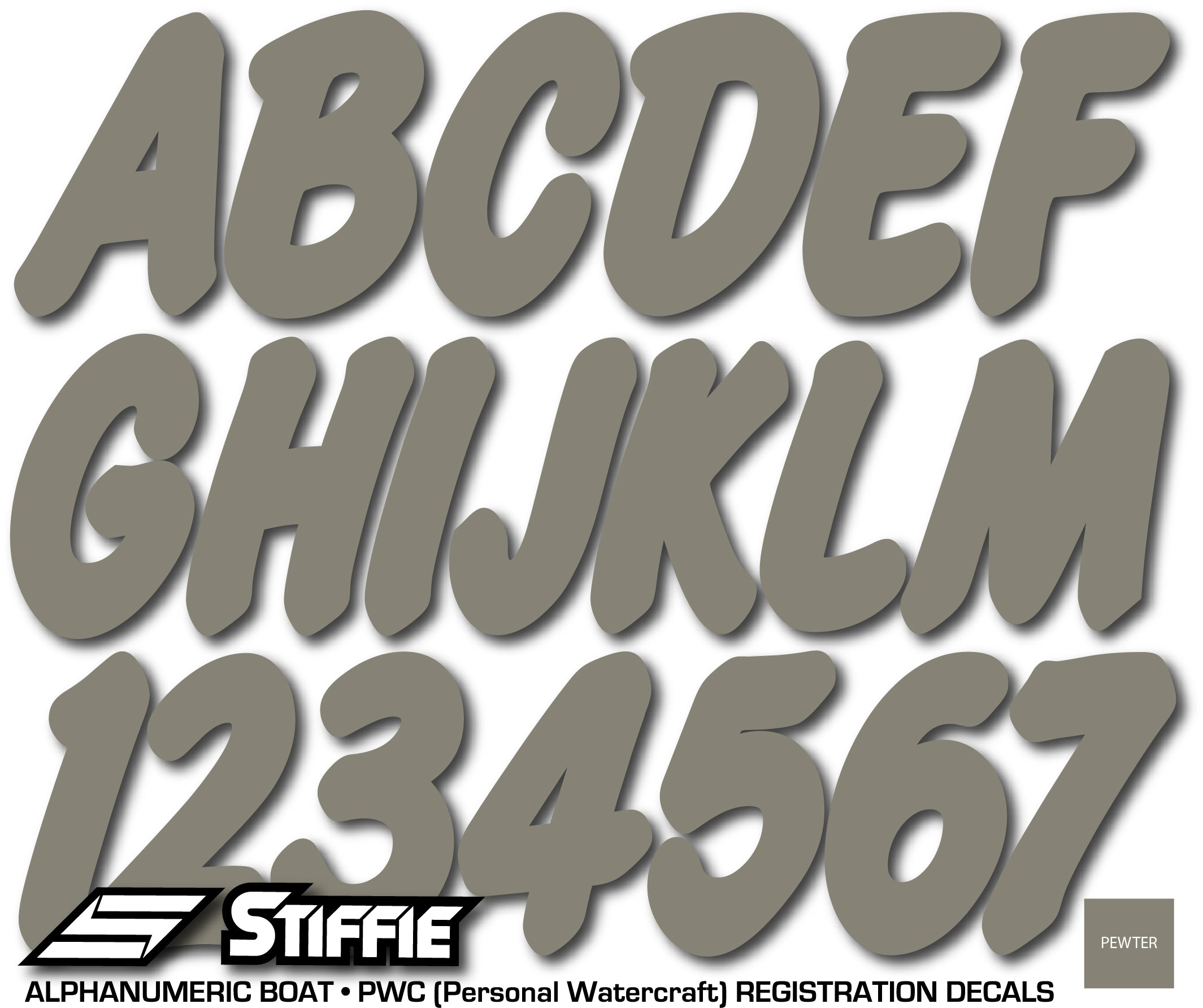 STIFFIE Whip-One Pewter 3” Boat & PWC Registration Decals • Numbers Letters Stickers