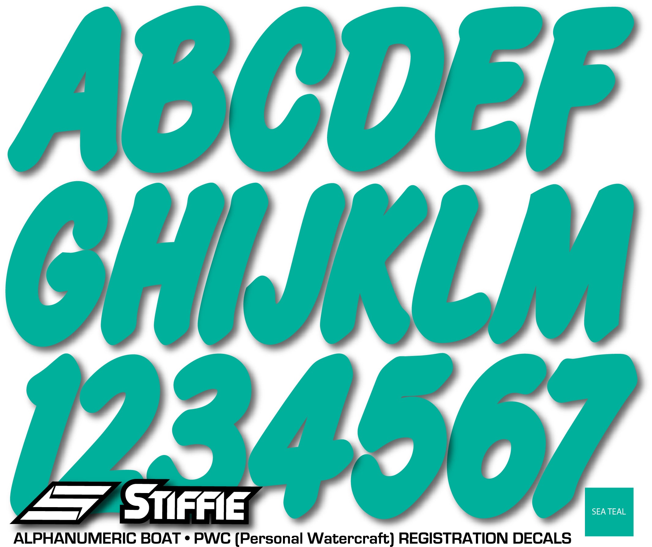 STIFFIE Whip-One Sea Teal 3” Boat & PWC Registration Decals • Numbers Letters Stickers