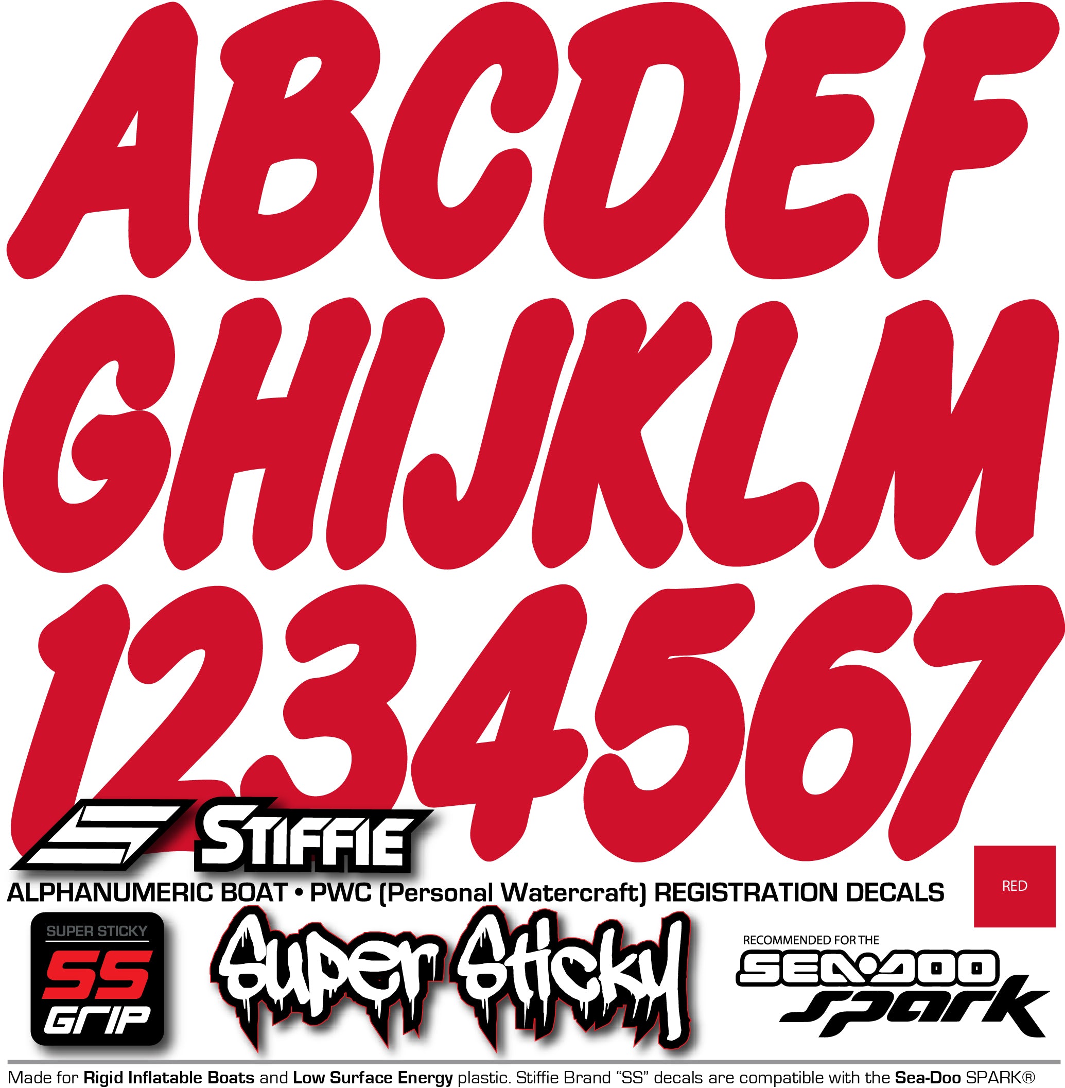 STIFFIE Whip-One Red 3” Super Sticky Boat & PWC Registration Decals • Numbers Letters Stickers